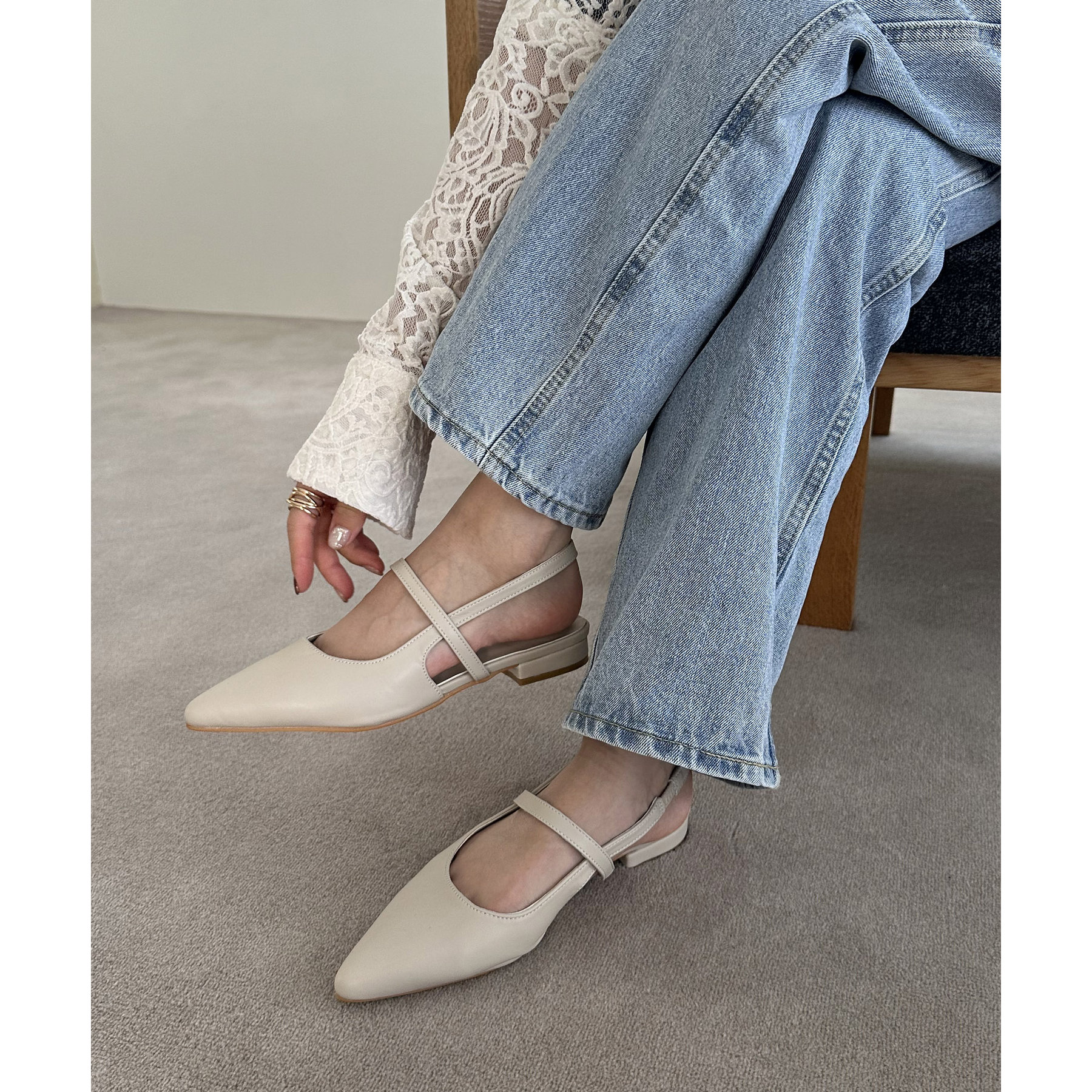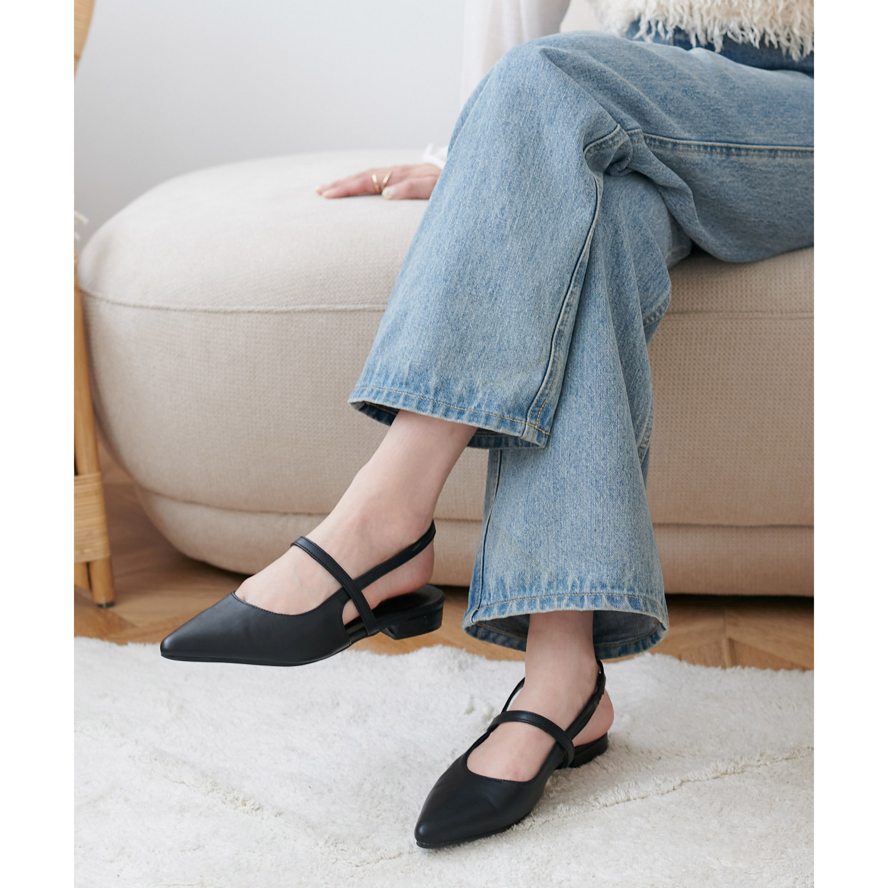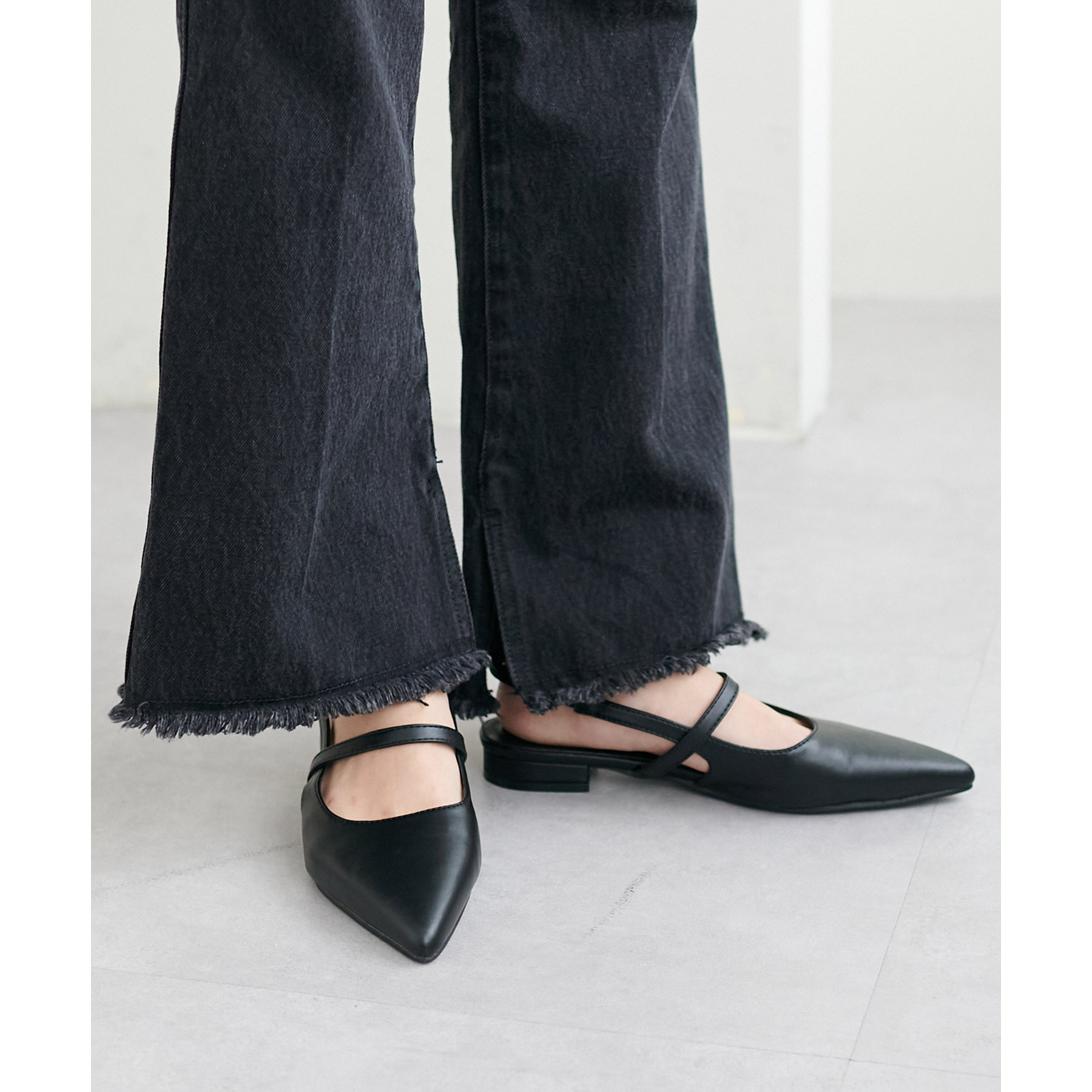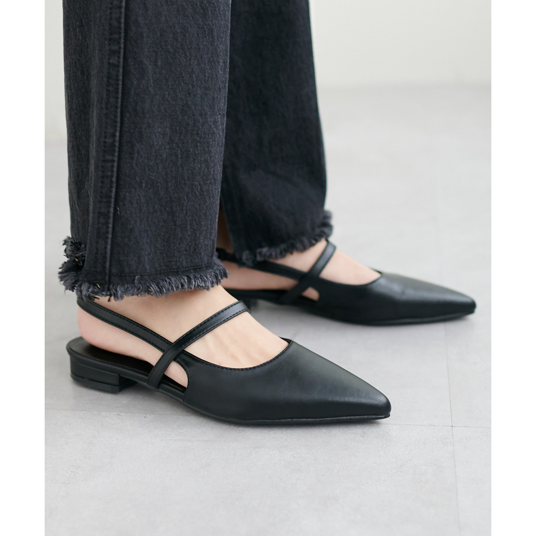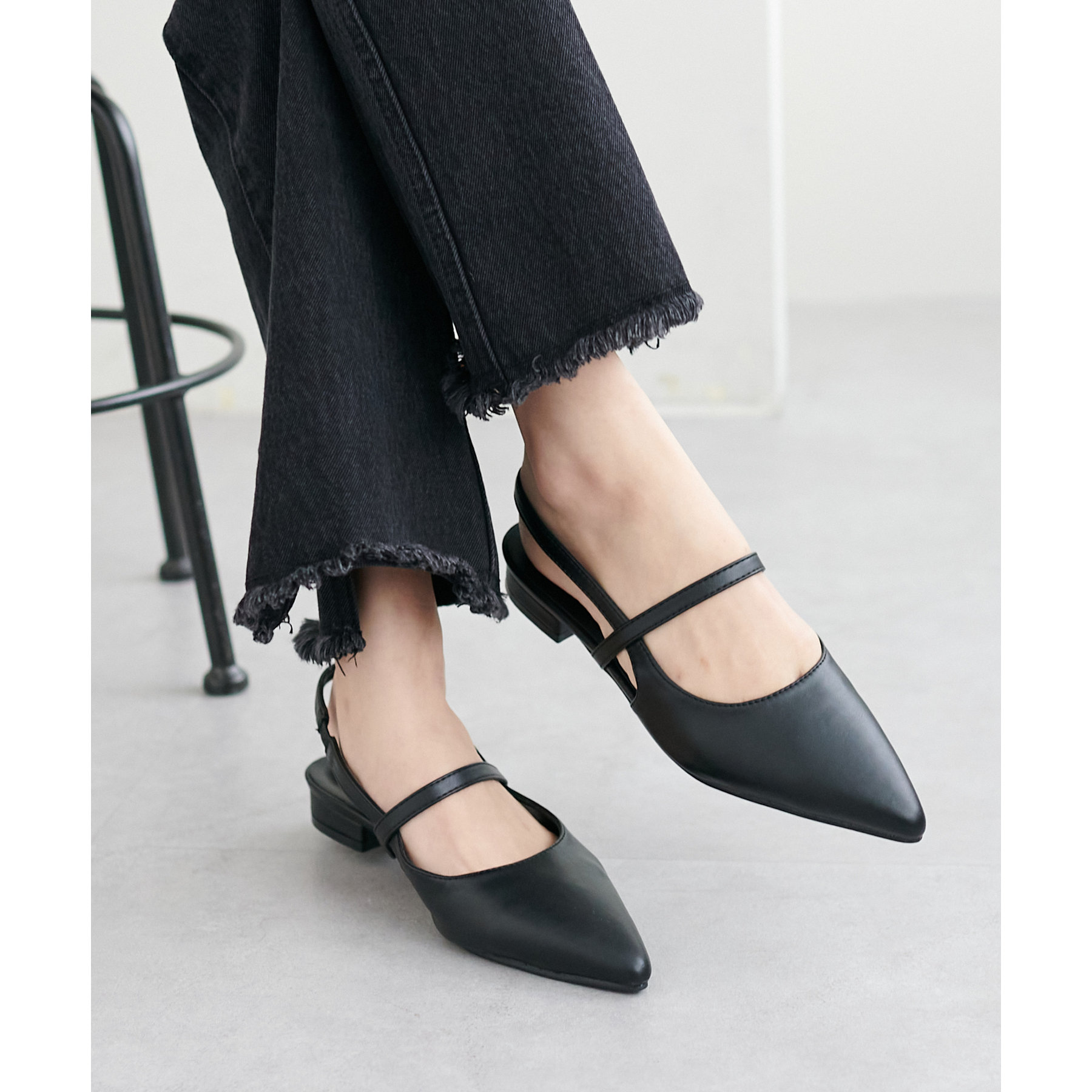 オールシーズン使えて、さらにデイリー使いしやすいデザインのポインテッドストラップシューズ。ストラップ部分が一部ゴム仕様になっていて着脱がとても楽♪また、2.4㎝~2.6㎝とローヒールなので長時間履いても疲れにくく、さり気ないスタイルアップ効果も叶います◎ポインテッドトゥで上品な大人らしさを演出してくれます。