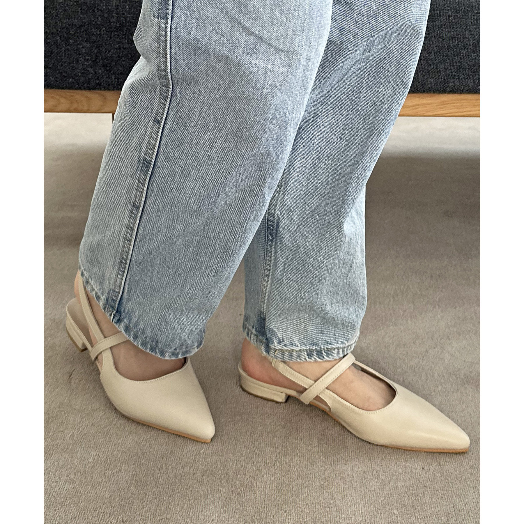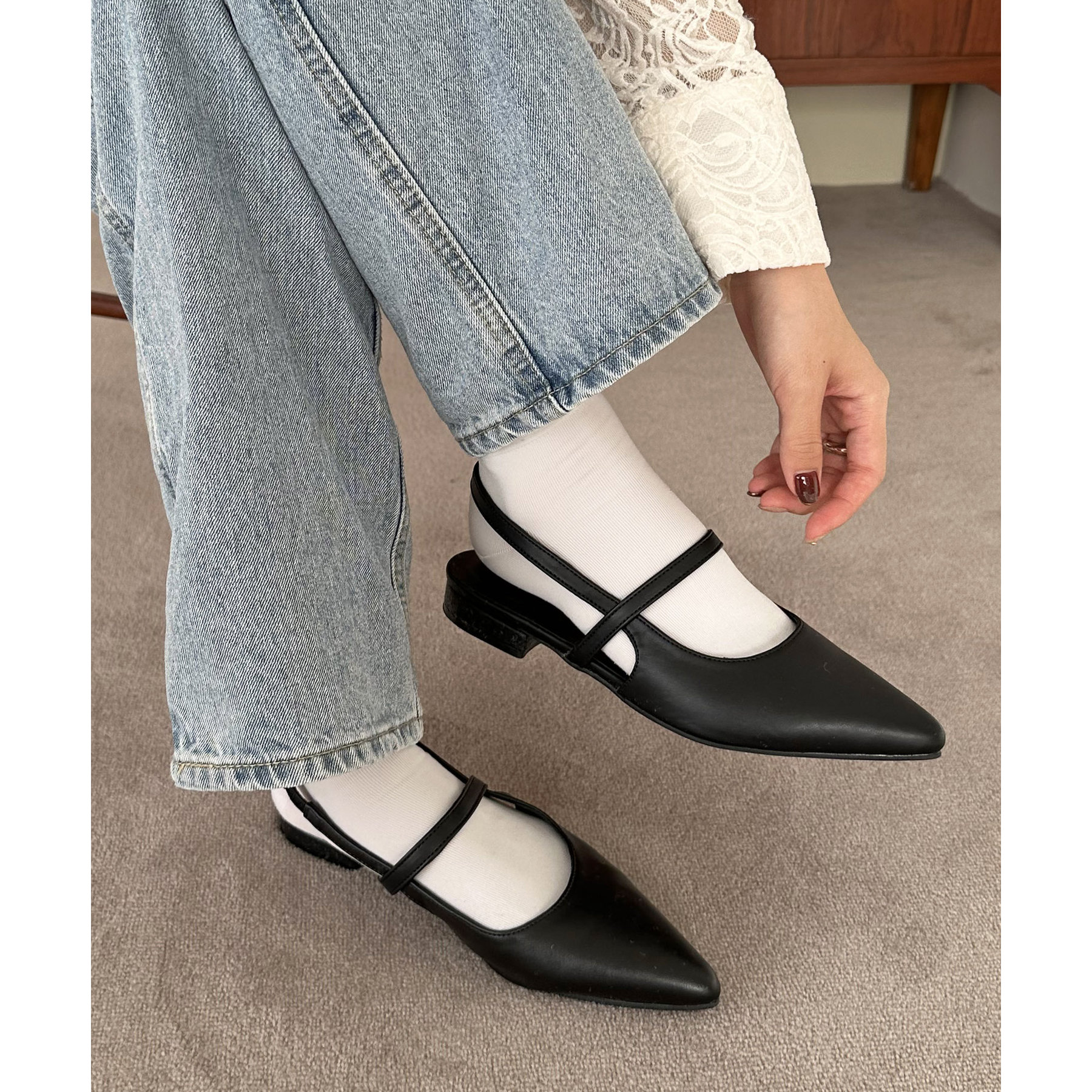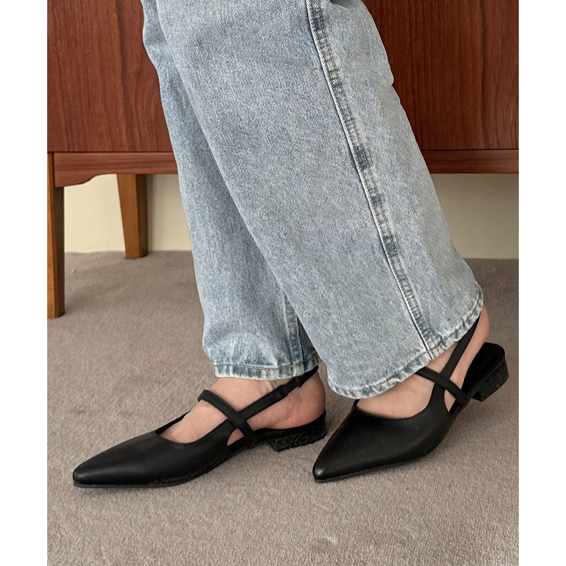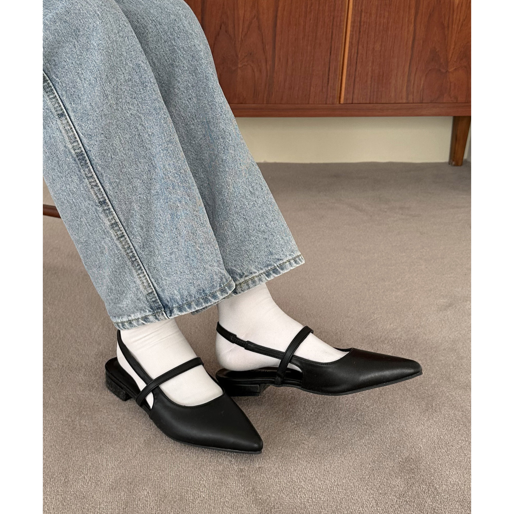 オールシーズン使えて、さらにデイリー使いしやすいデザインのポインテッドストラップシューズ。ストラップ部分が一部ゴム仕様になっていて着脱がとても楽♪また、2.4㎝~2.6㎝とローヒールなので長時間履いても疲れにくく、さり気ないスタイルアップ効果も叶います◎ポインテッドトゥで上品な大人らしさを演出してくれます。