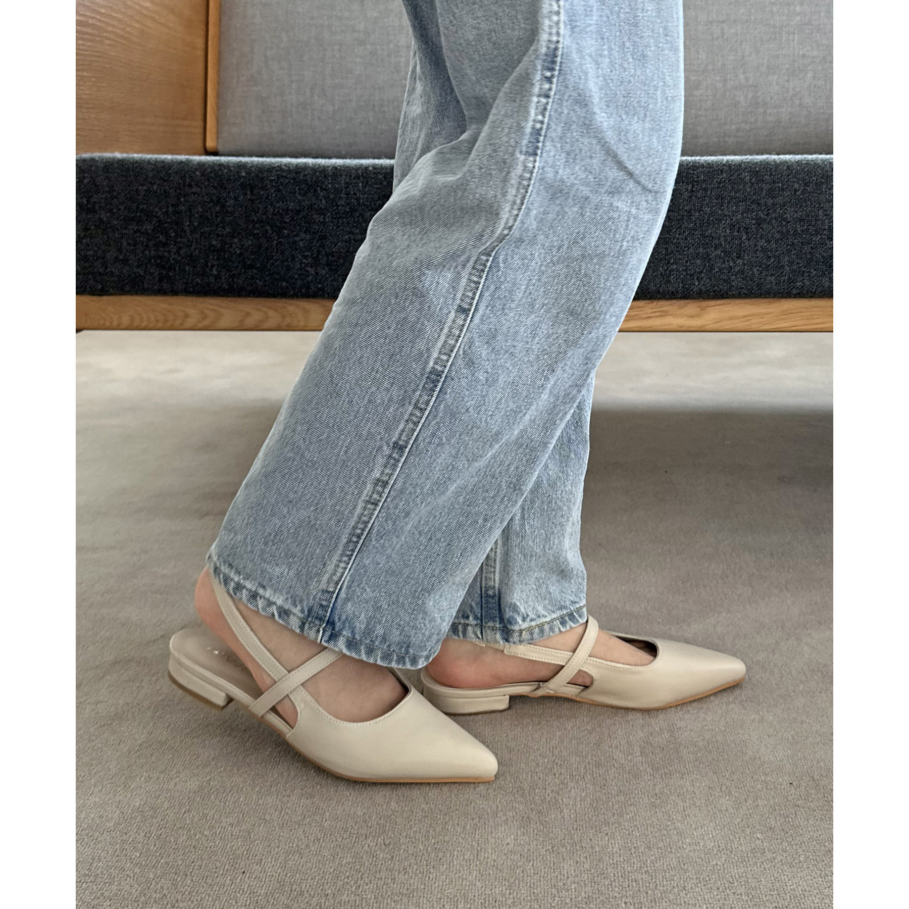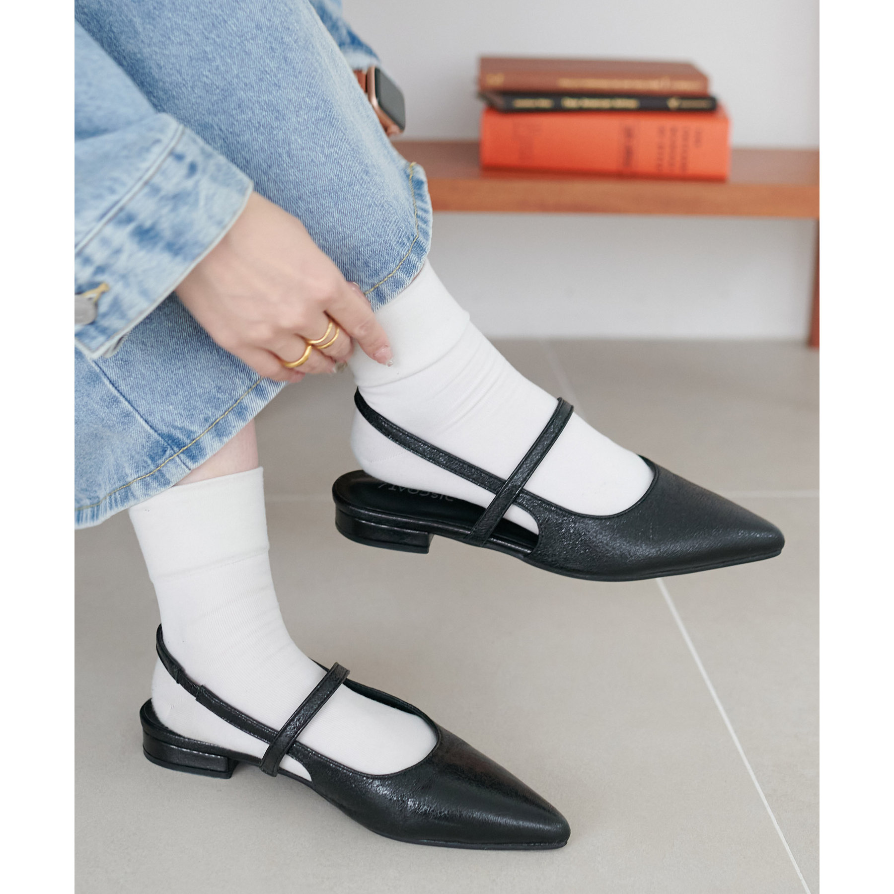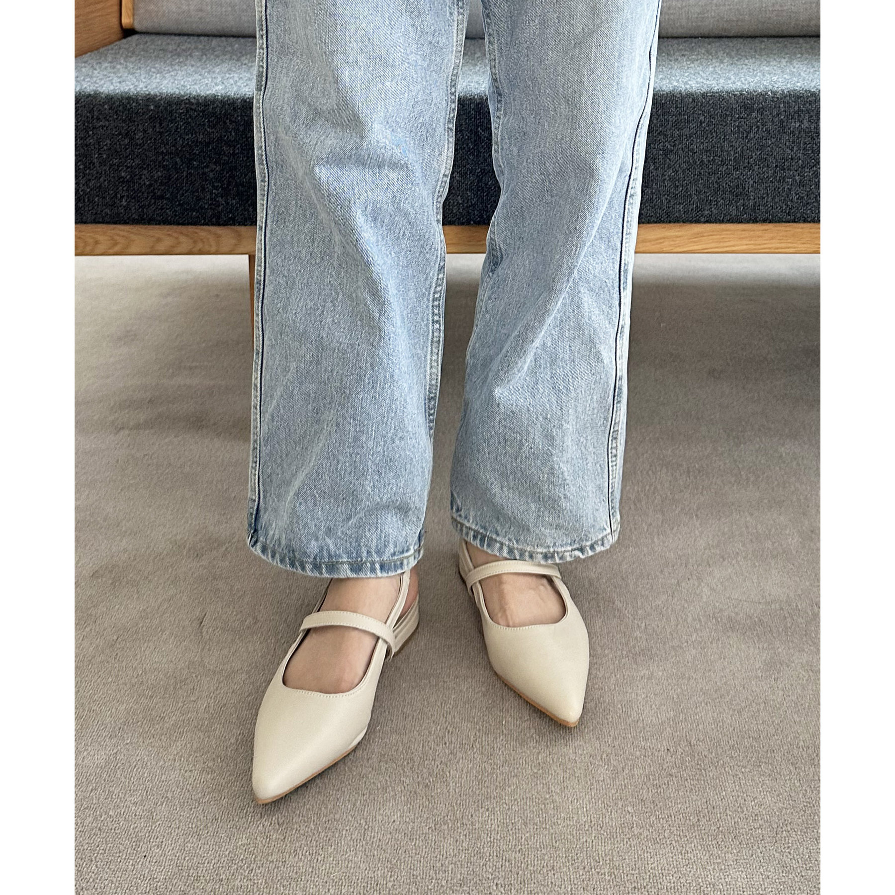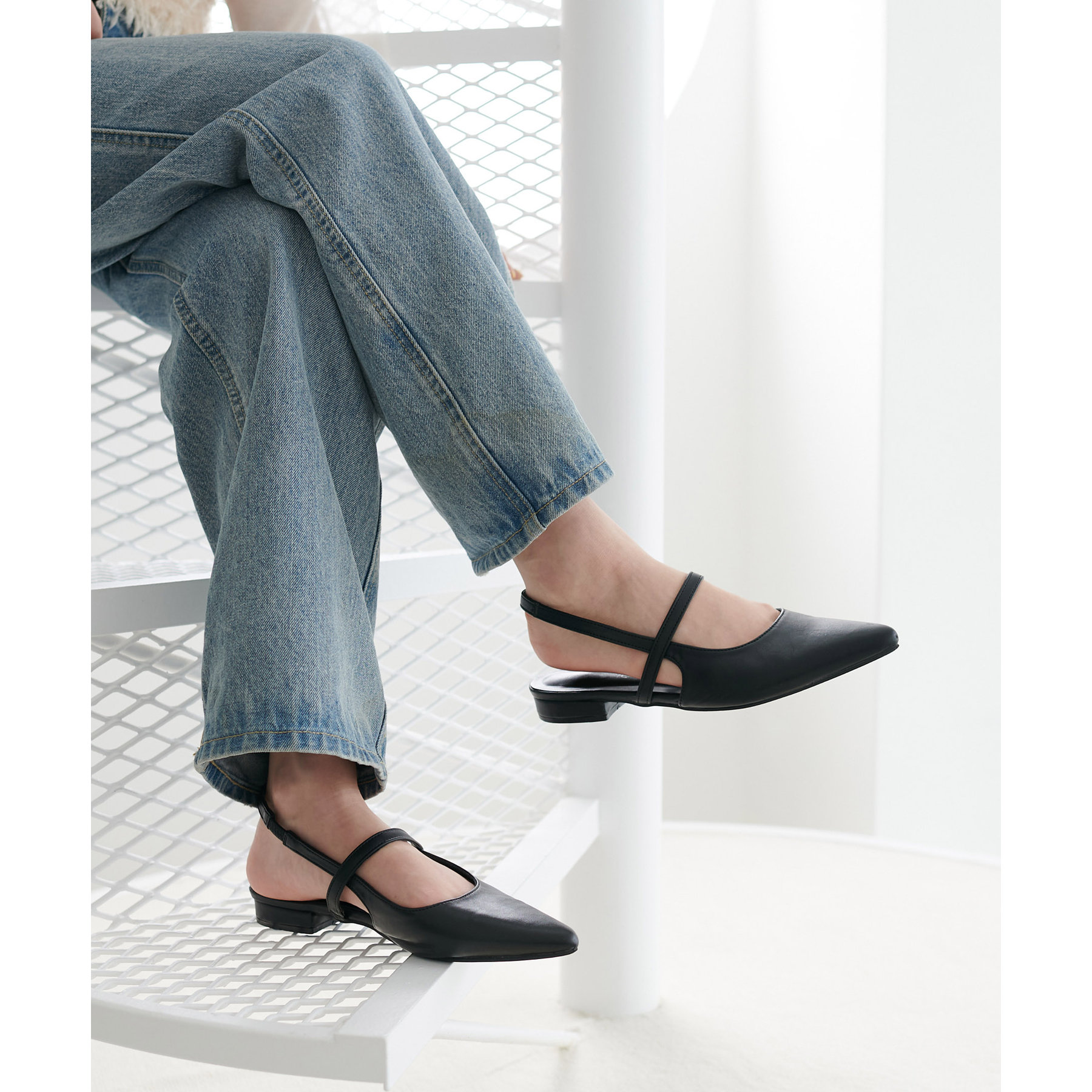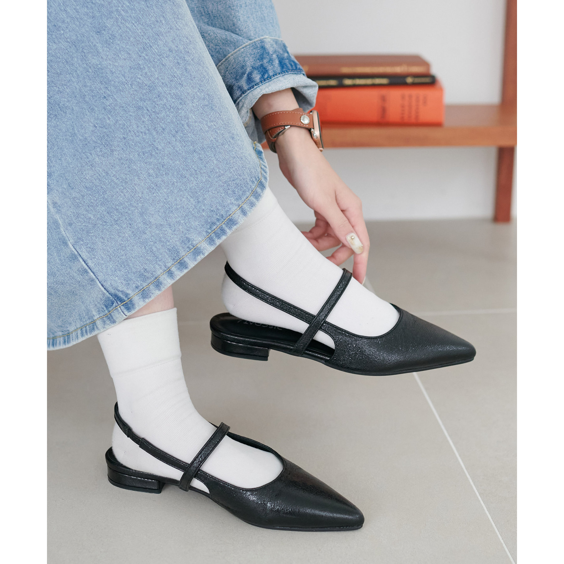 オールシーズン使えて、さらにデイリー使いしやすいデザインのポインテッドストラップシューズ。ストラップ部分が一部ゴム仕様になっていて着脱がとても楽♪また、2.4㎝~2.6㎝とローヒールなので長時間履いても疲れにくく、さり気ないスタイルアップ効果も叶います◎ポインテッドトゥで上品な大人らしさを演出してくれます。