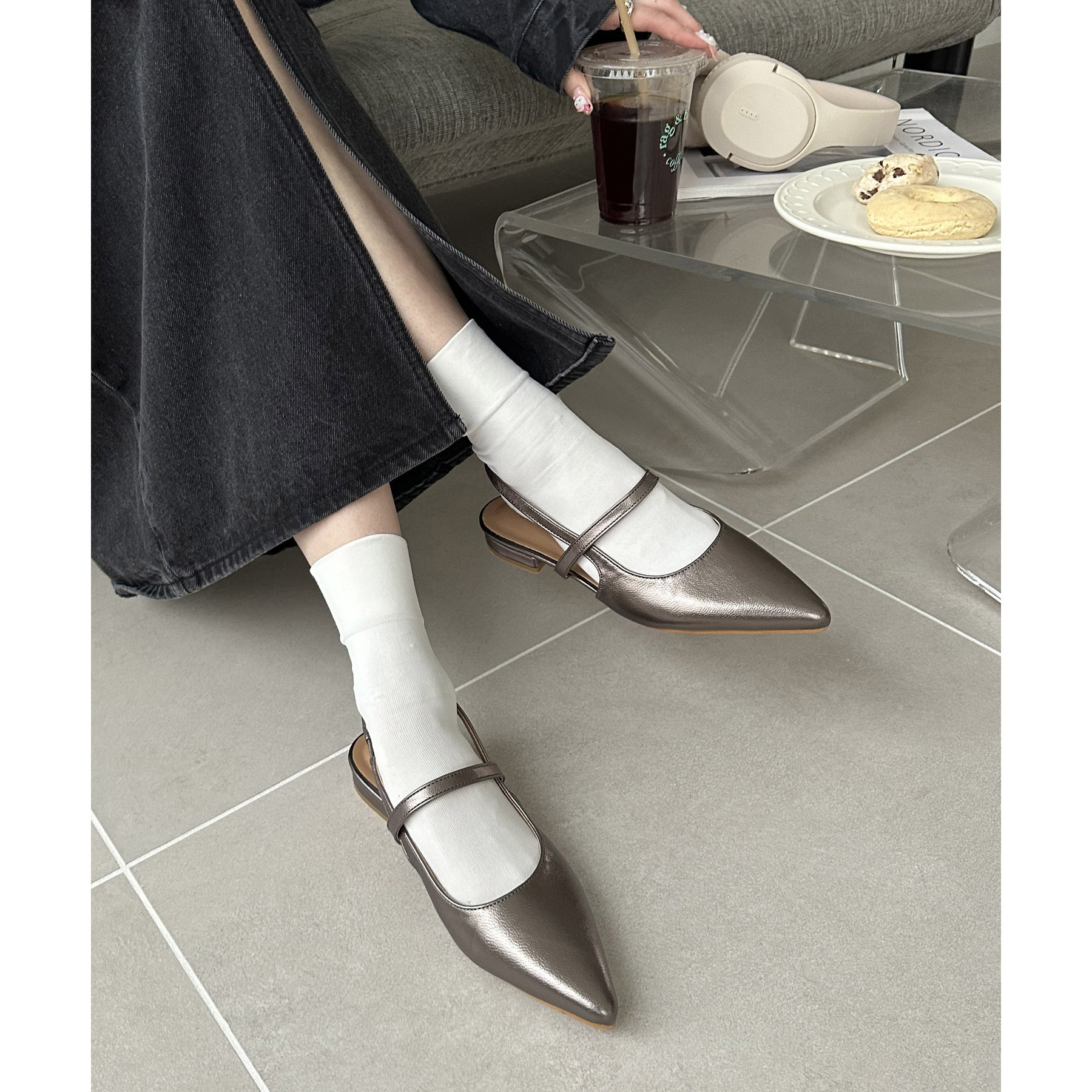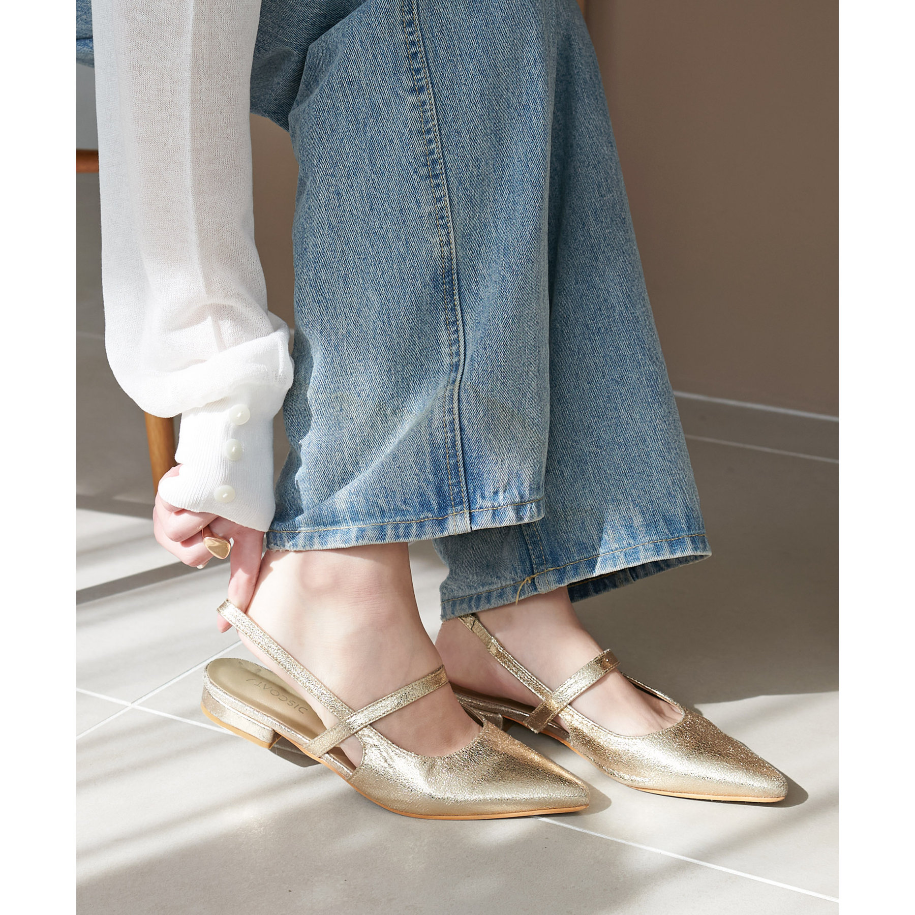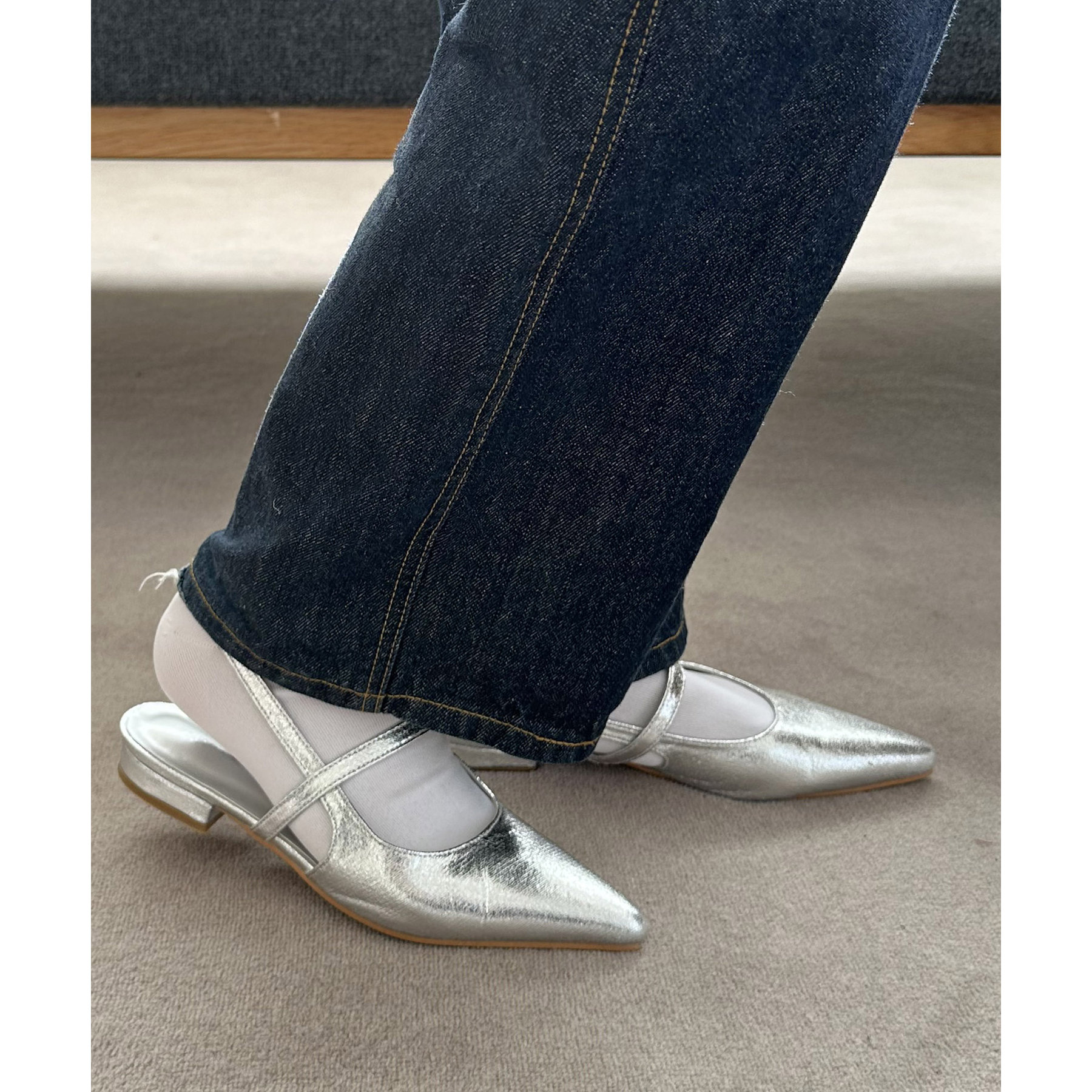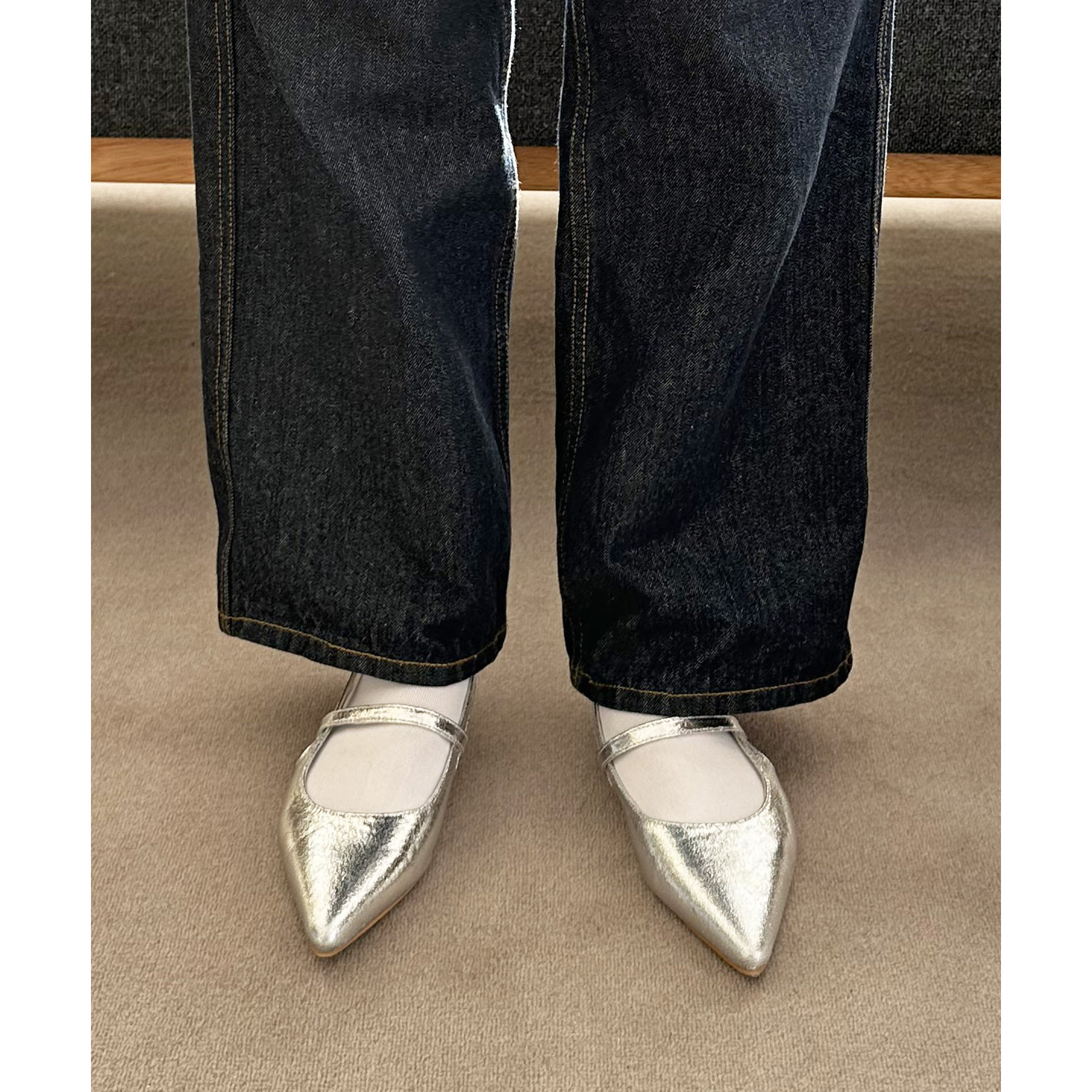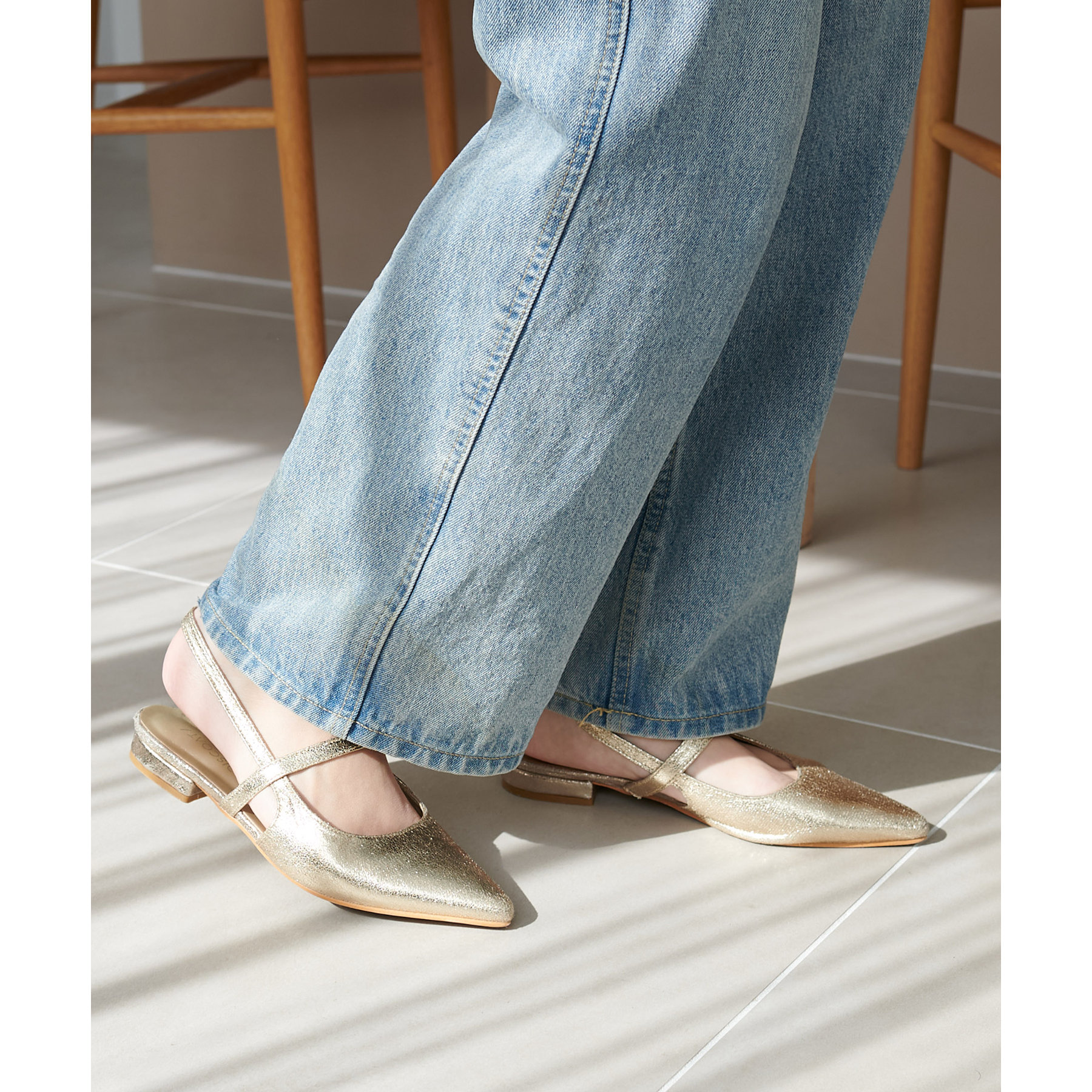 オールシーズン使えて、さらにデイリー使いしやすいデザインのポインテッドストラップシューズ。ストラップ部分が一部ゴム仕様になっていて着脱がとても楽♪また、2.4㎝~2.6㎝とローヒールなので長時間履いても疲れにくく、さり気ないスタイルアップ効果も叶います◎ポインテッドトゥで上品な大人らしさを演出してくれます。