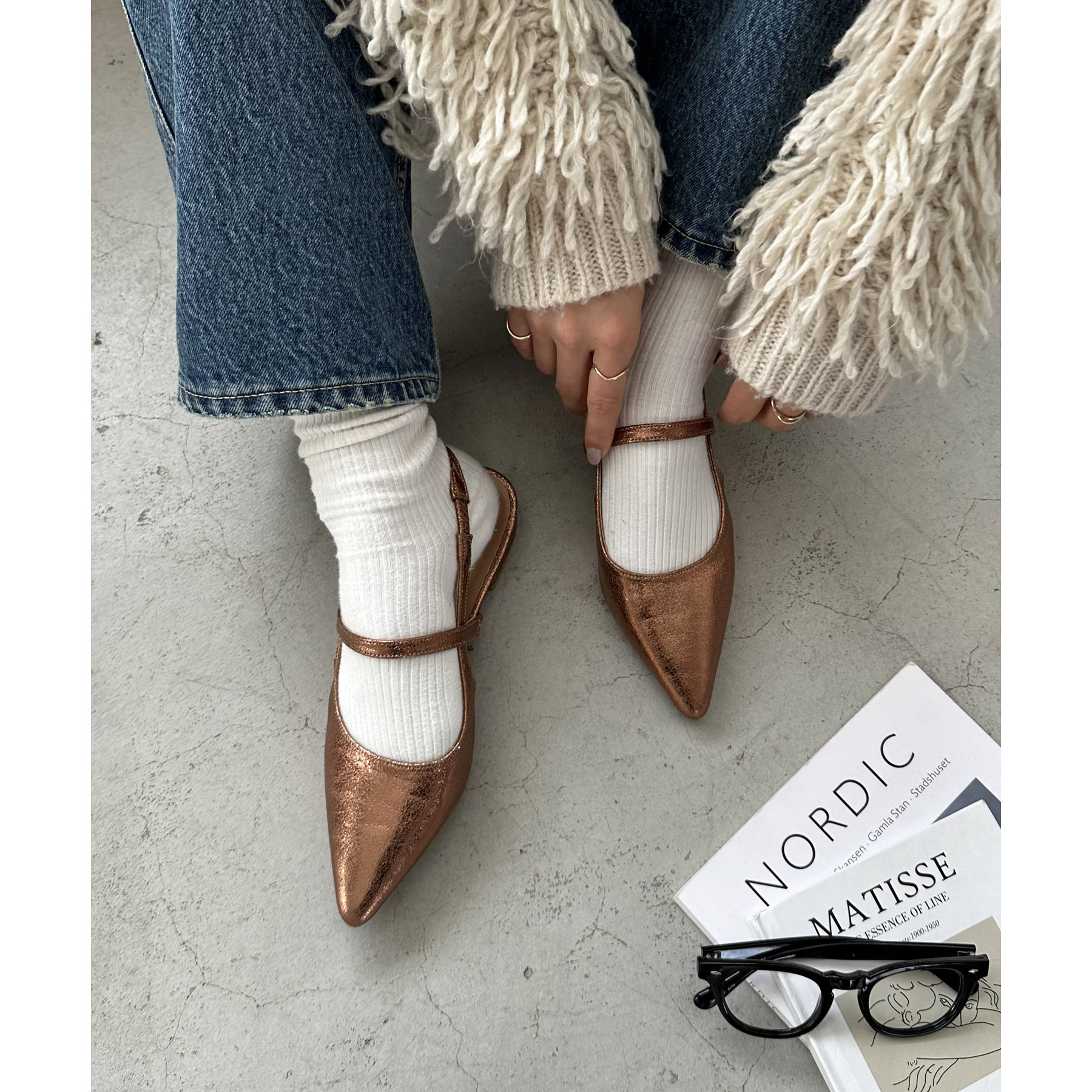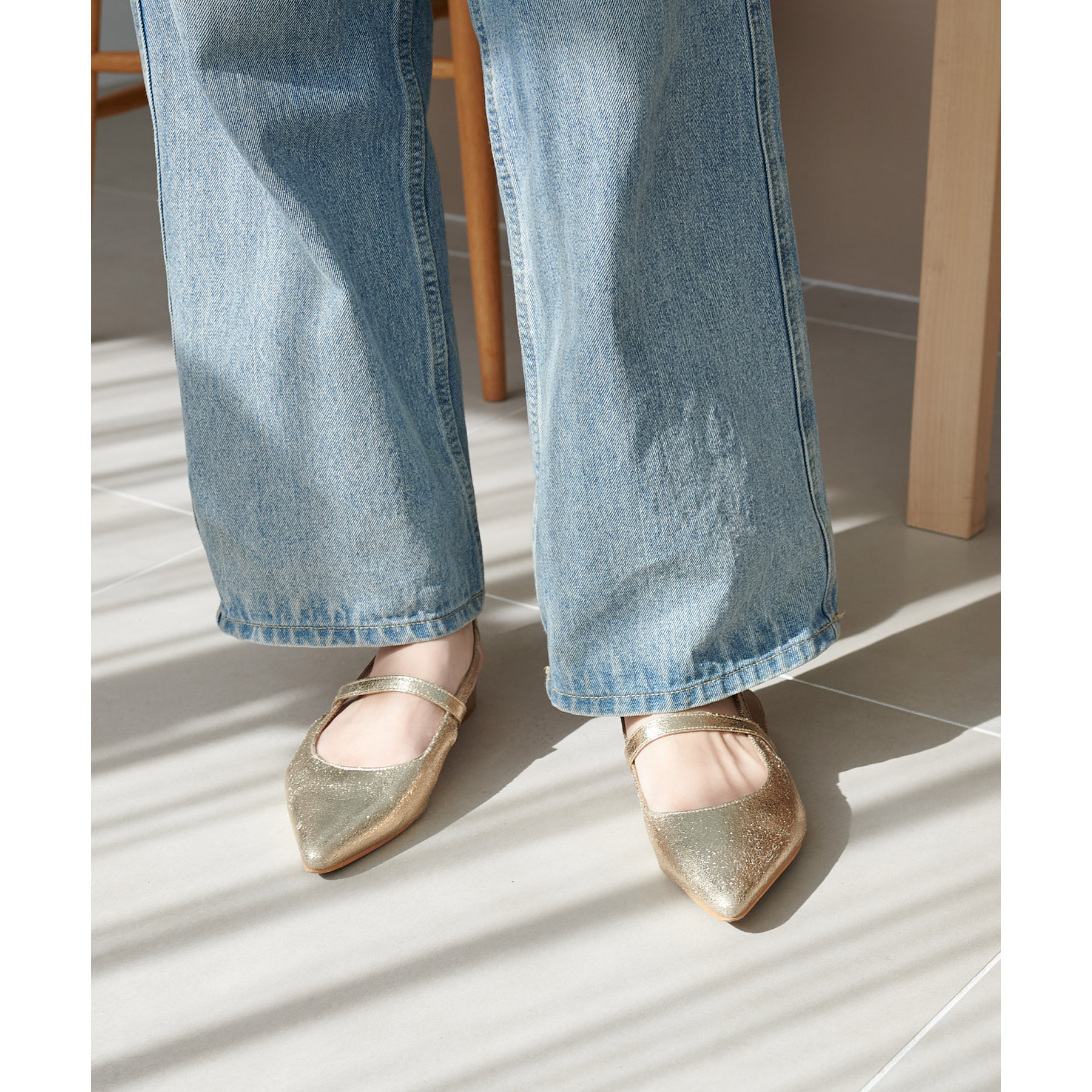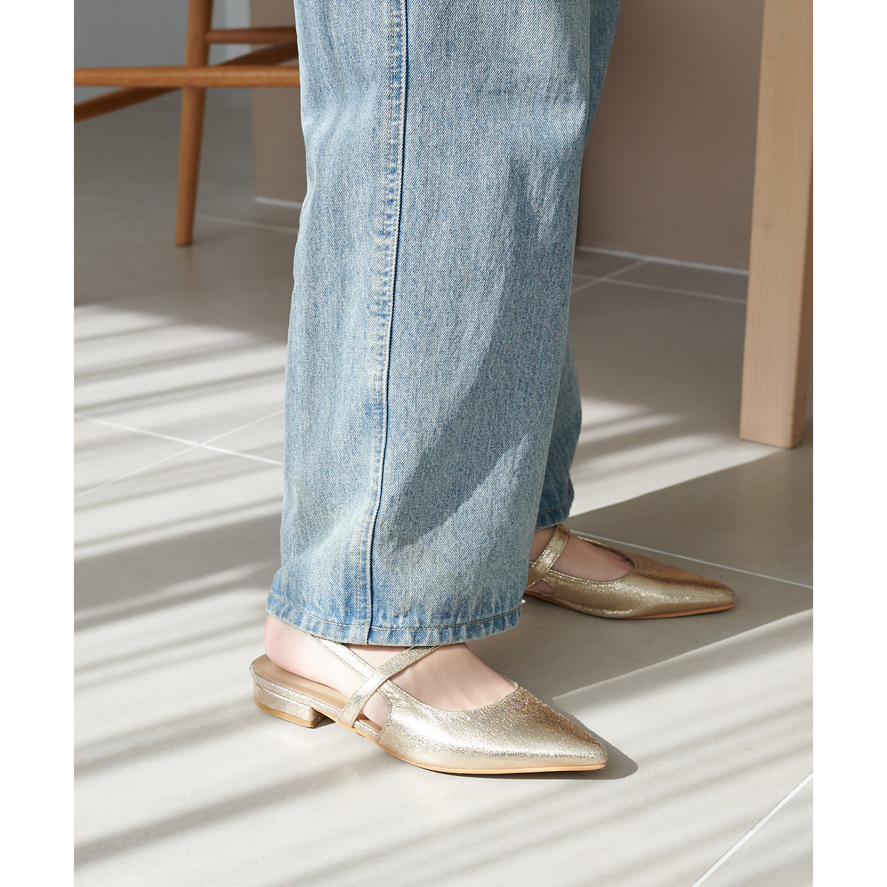 サッとお出かけにピッタリなポインテッドストラップシューズ。