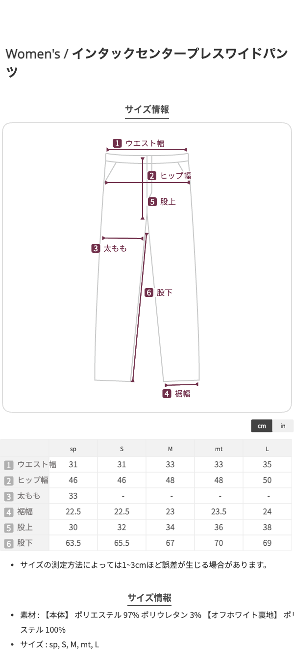 インタックセンタープレスワイドパンツ