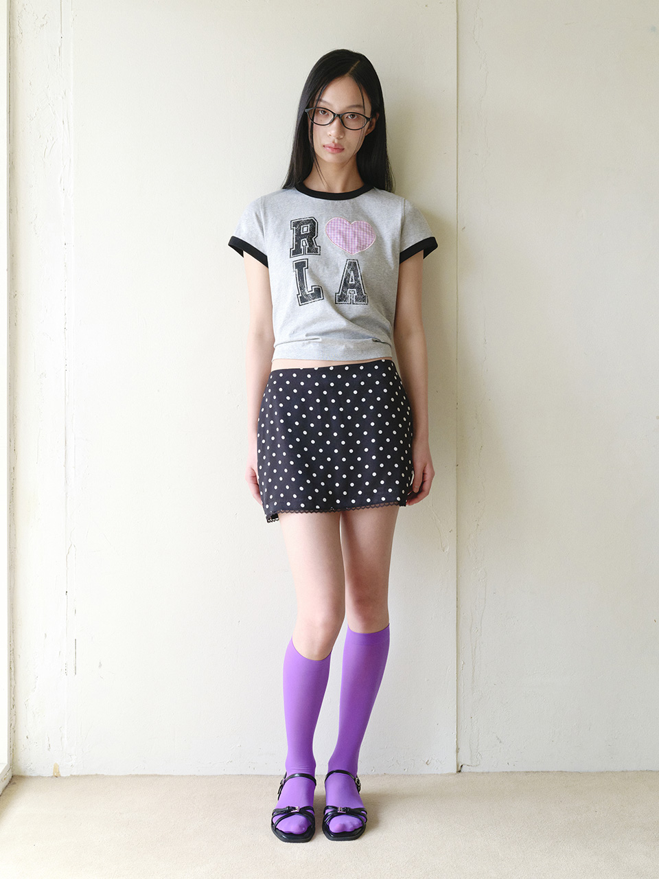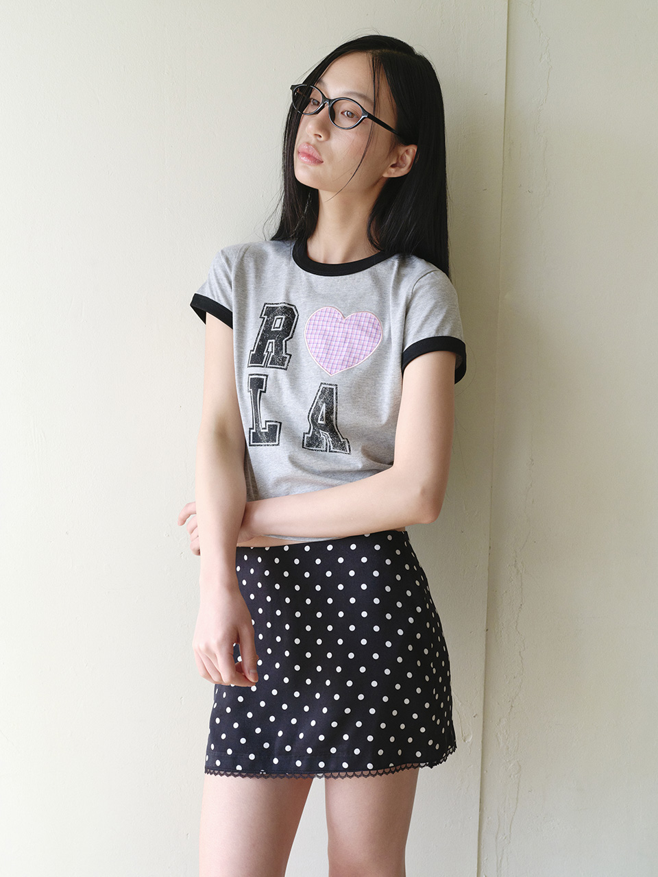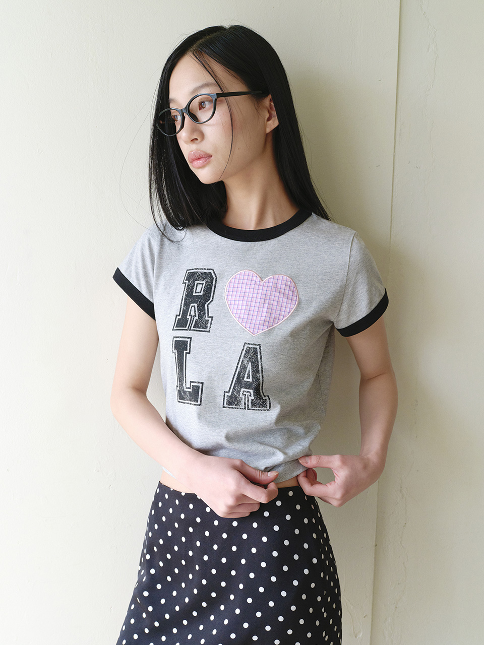 I LOVE ROLA PATCHWORK RINGER T-SHIRT GRAY