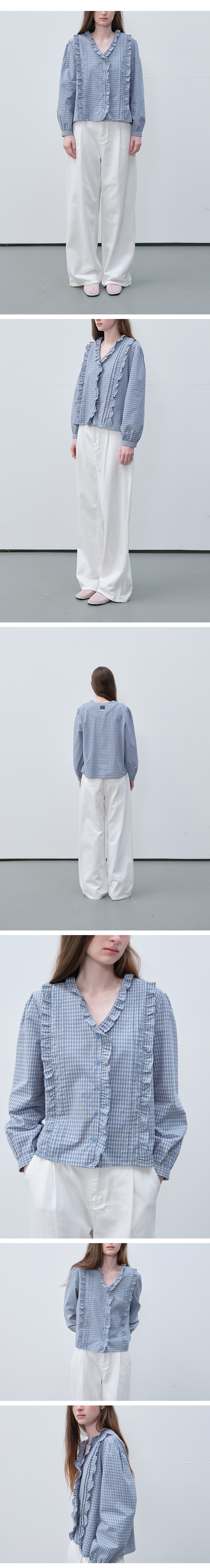 Check pintuck ruffle blouse [FRSP06BL09]_Sky blue