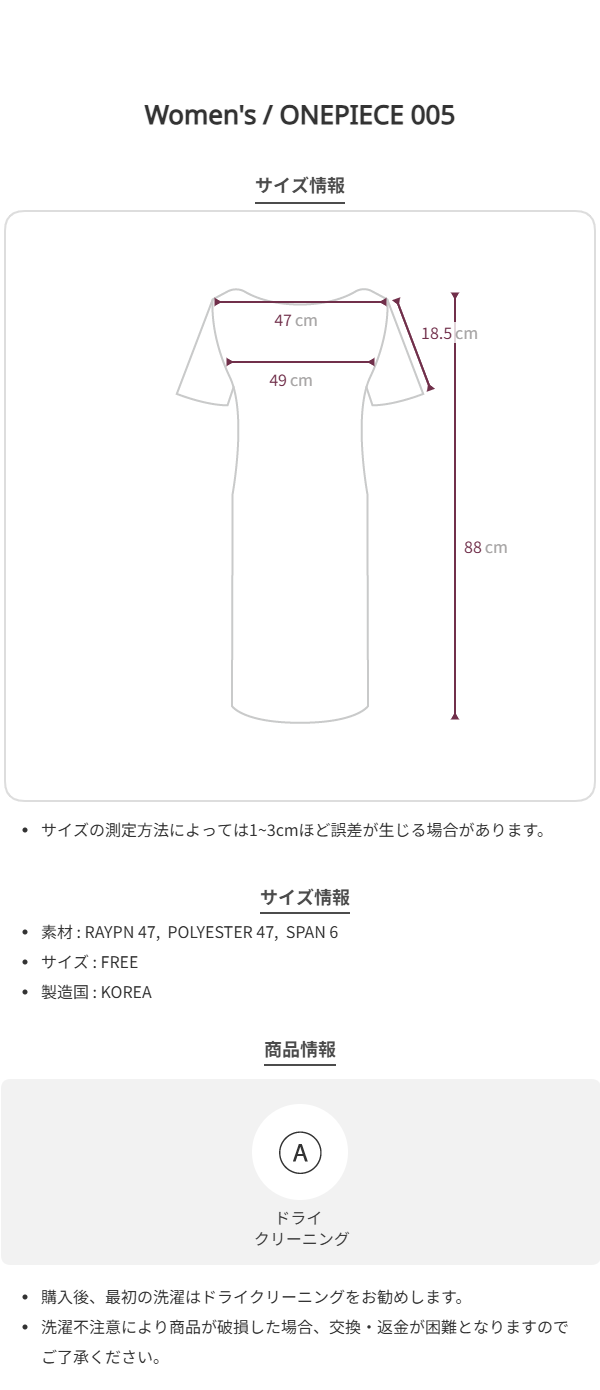 -RAYPN 47 POLYESTER 47 SPAN6 ドライクリーニング推奨