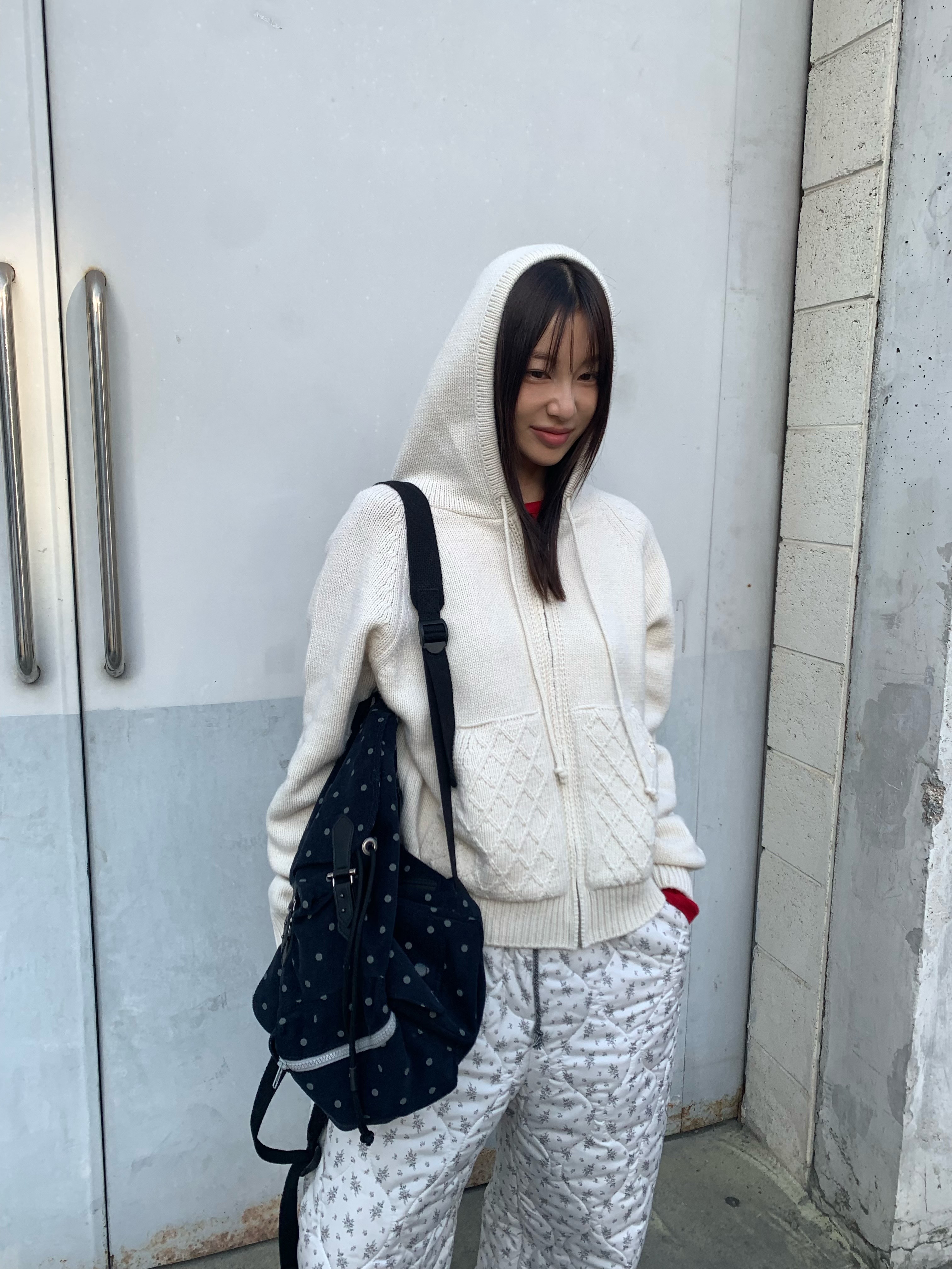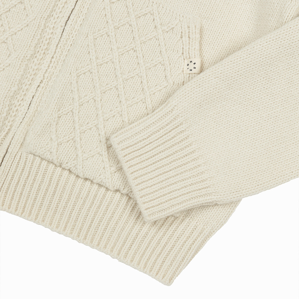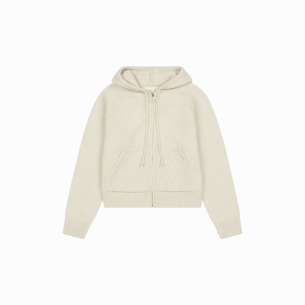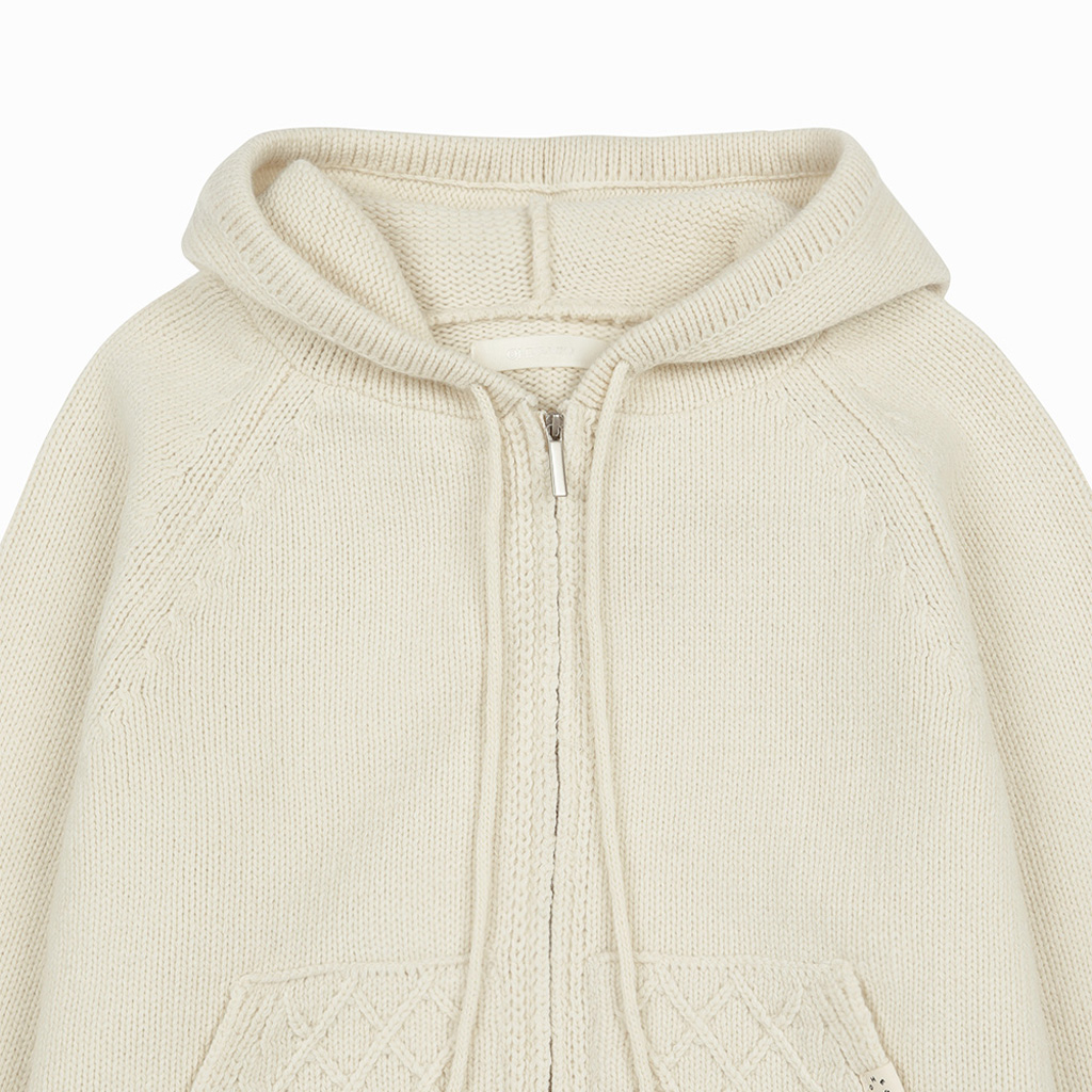 [Influencer pick] cable knit hooded zip-up, ivory
