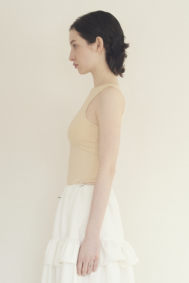 洗練されたミニマルデザイン。シンプルながらも女性らしさを引き立てるアメリカンスリーブトップス。