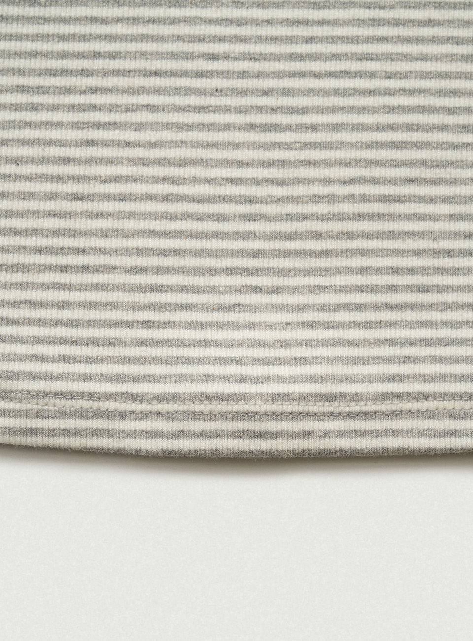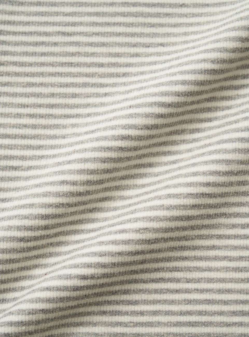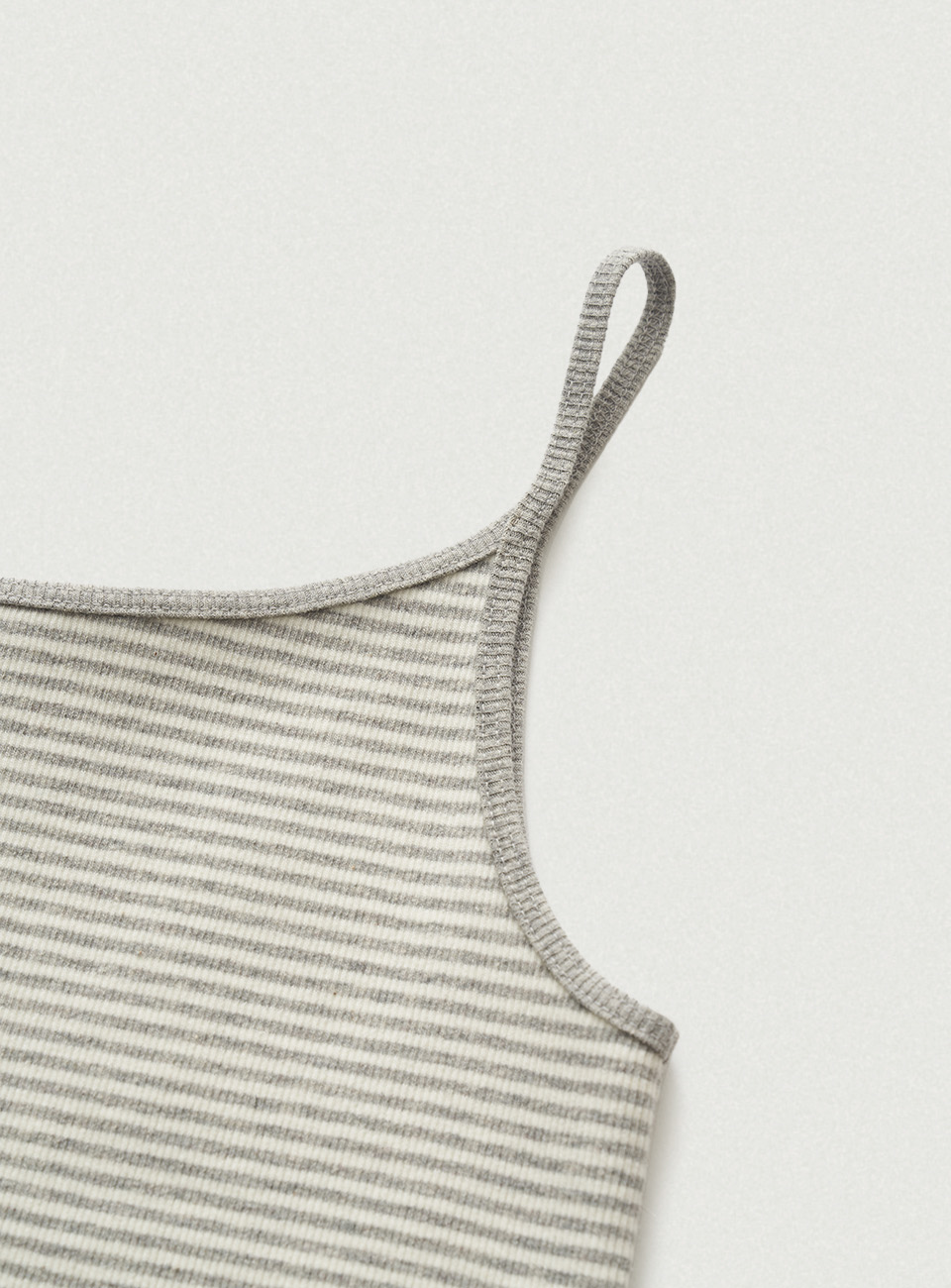 グレー、ネイビーカラーストライプパターンのスリーブレス与えながらスリットなフィット演出