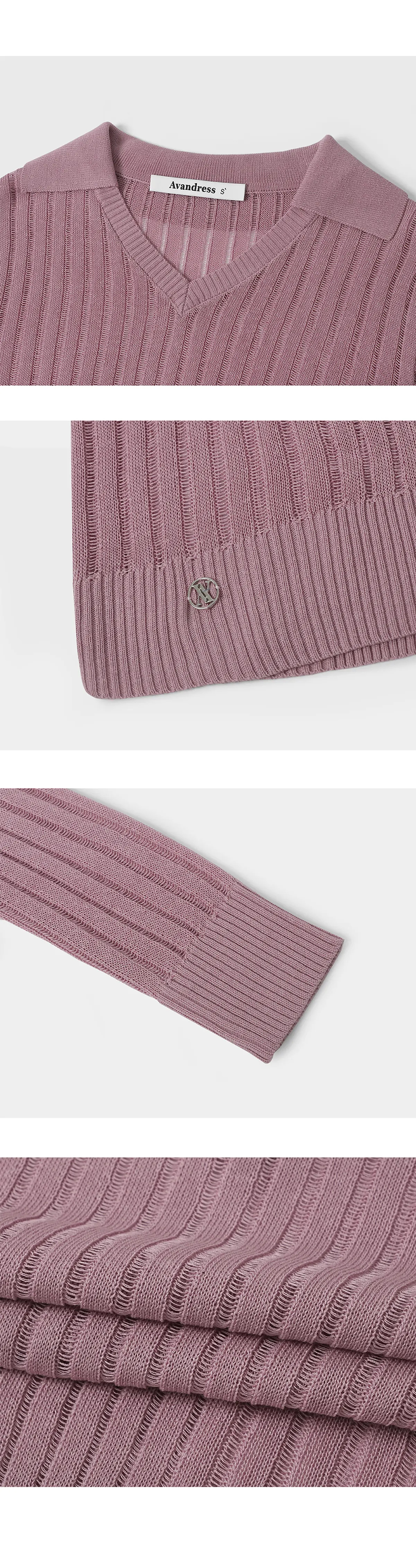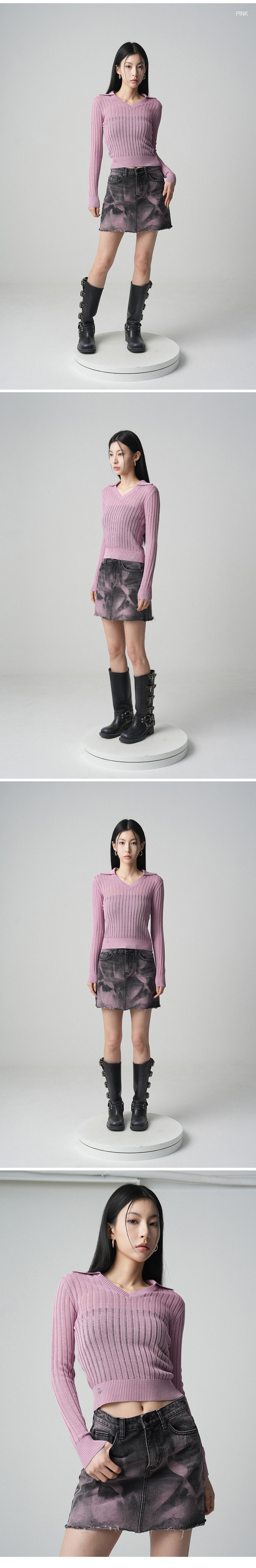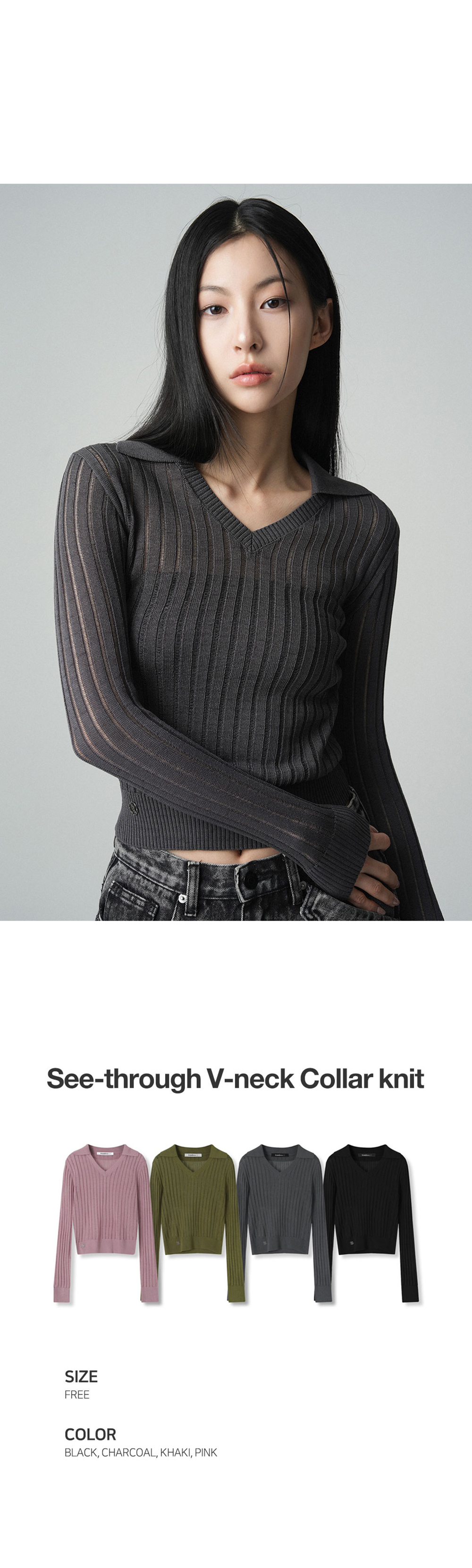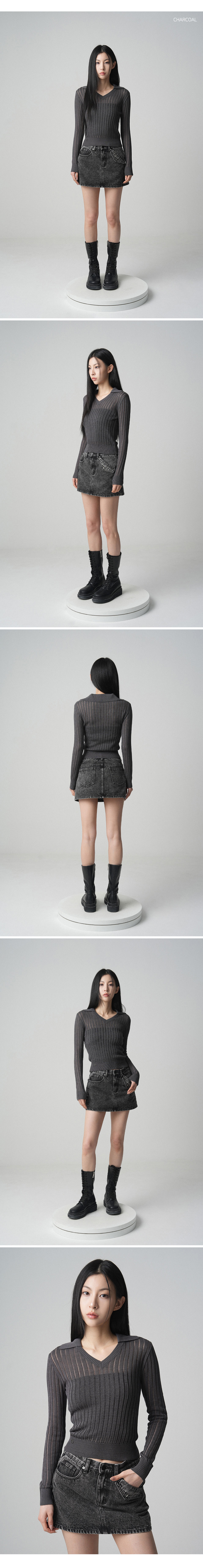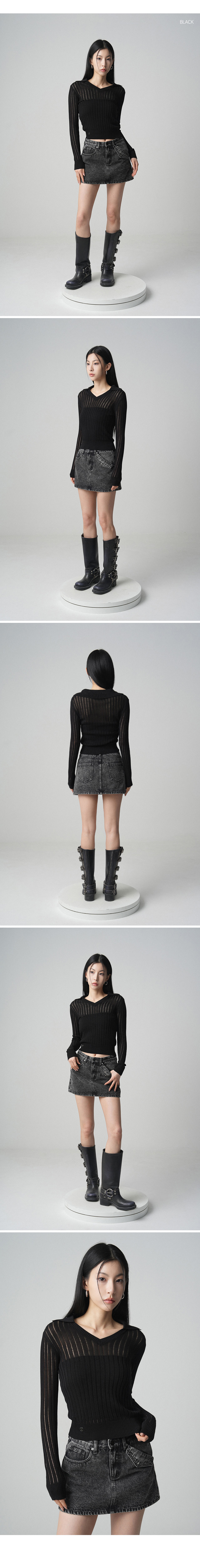 See-through V-neck Collar knit - 4COL