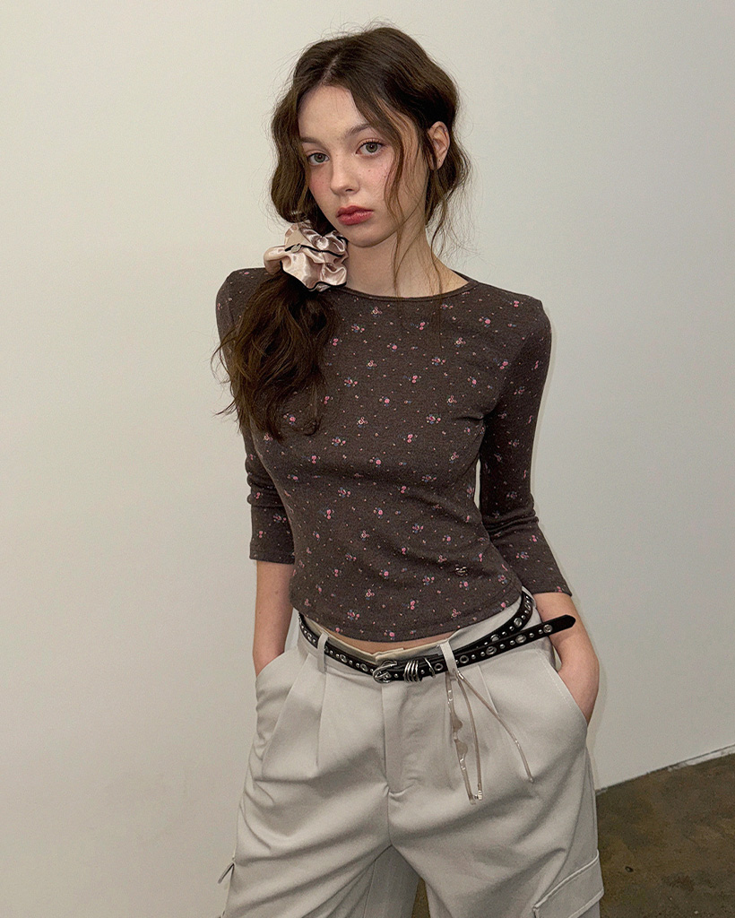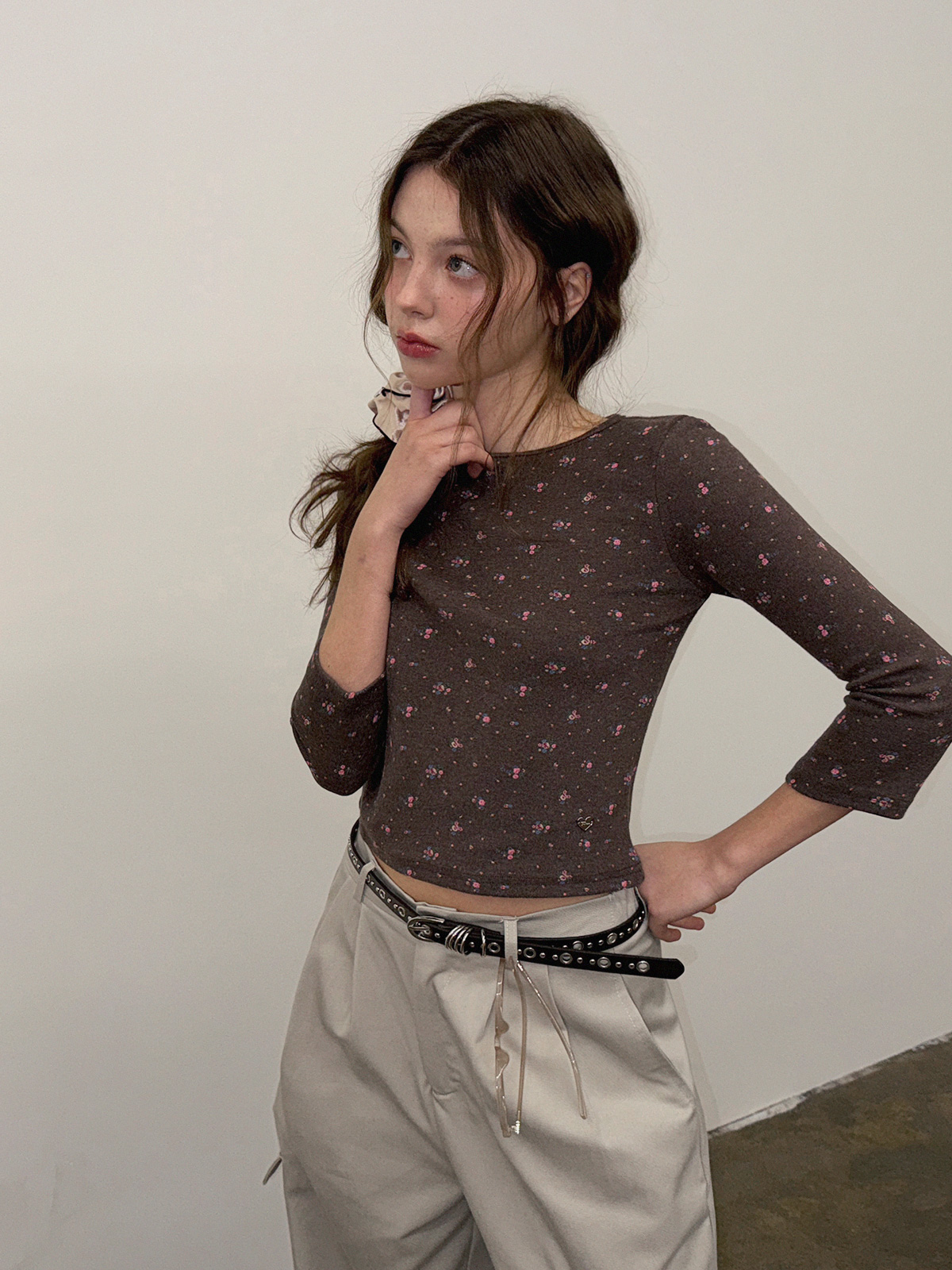 Fredi Floral Boat-Neck 3/4 Sleeve T-Shirt