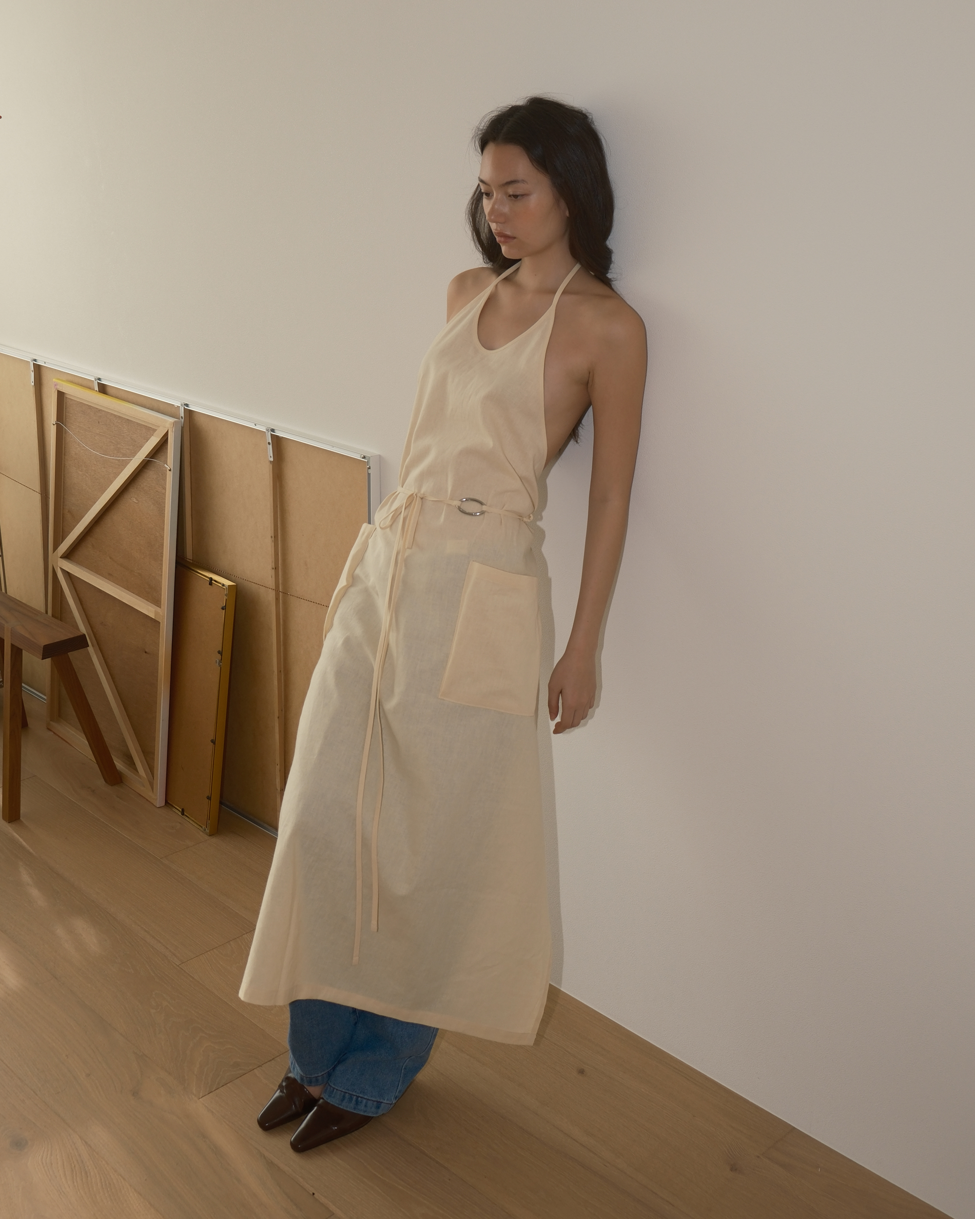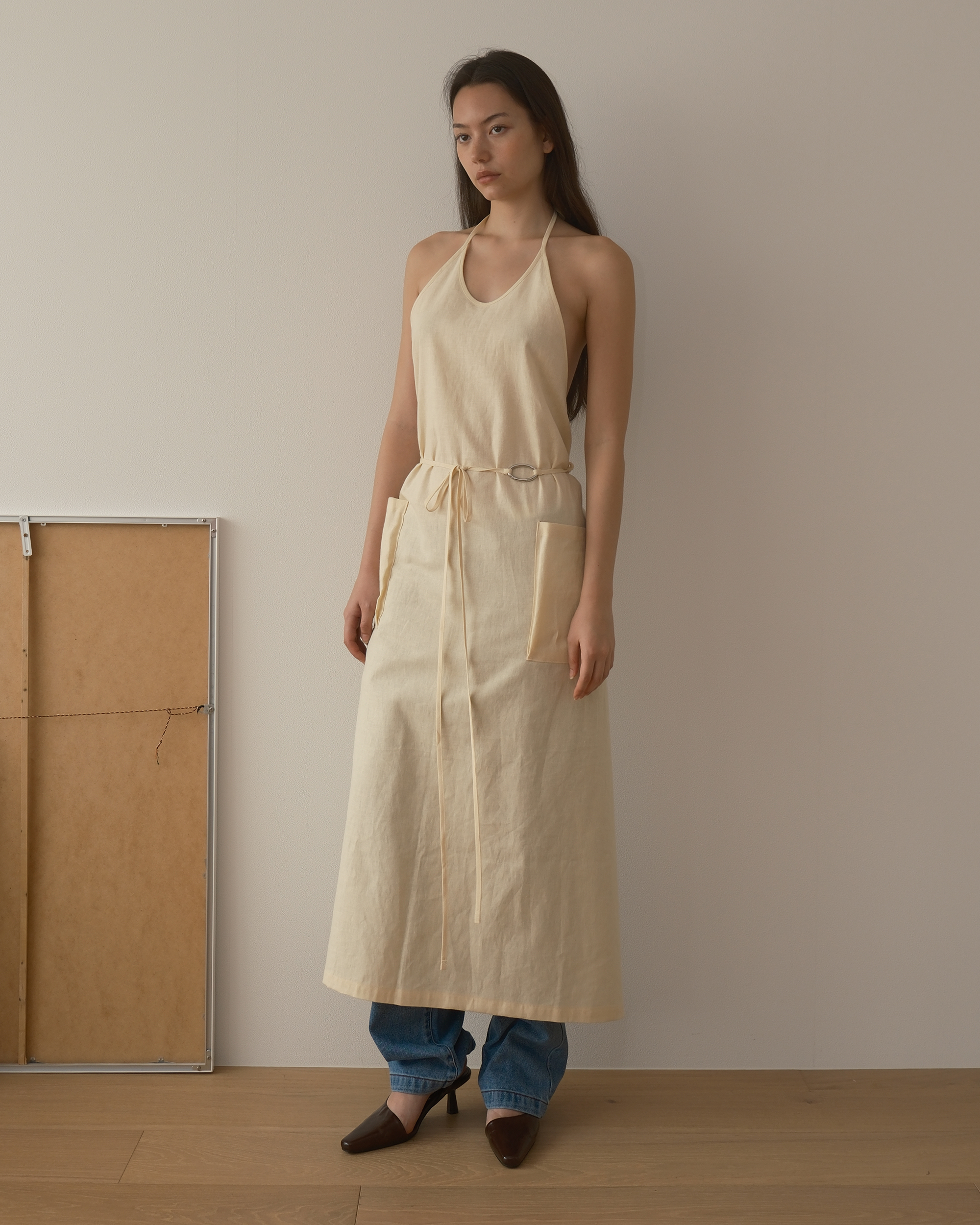 LINEN MAXI APRON (BUTTER)