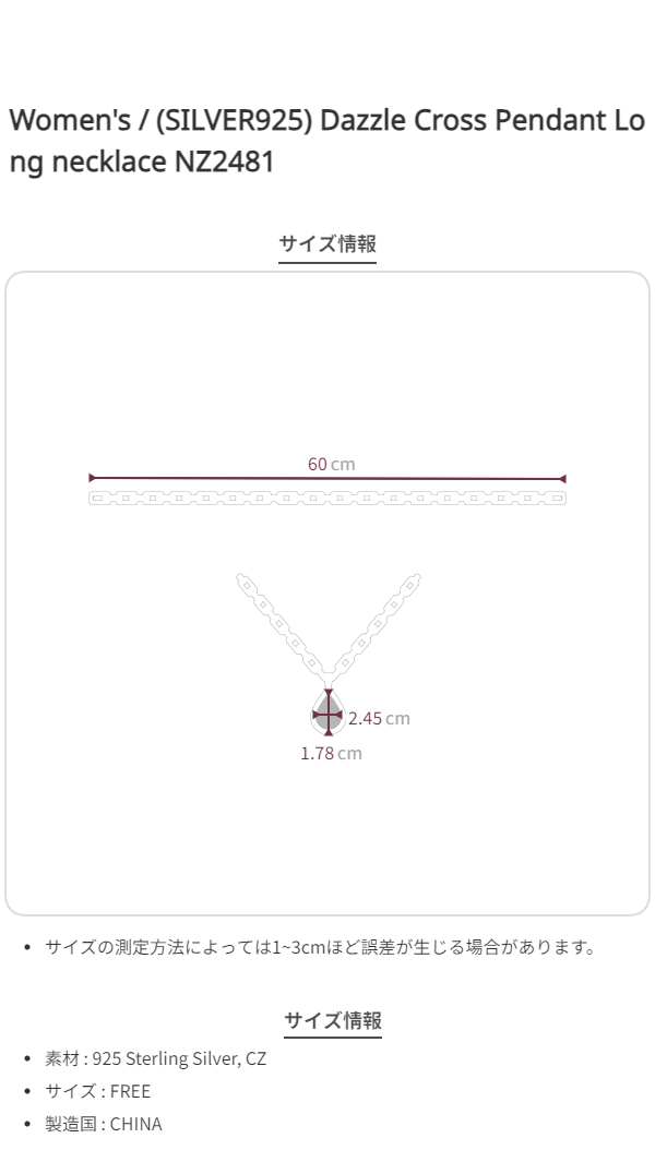 (シルバー925) ダズル クロス ペンダント ロングネックレス NZ2481
