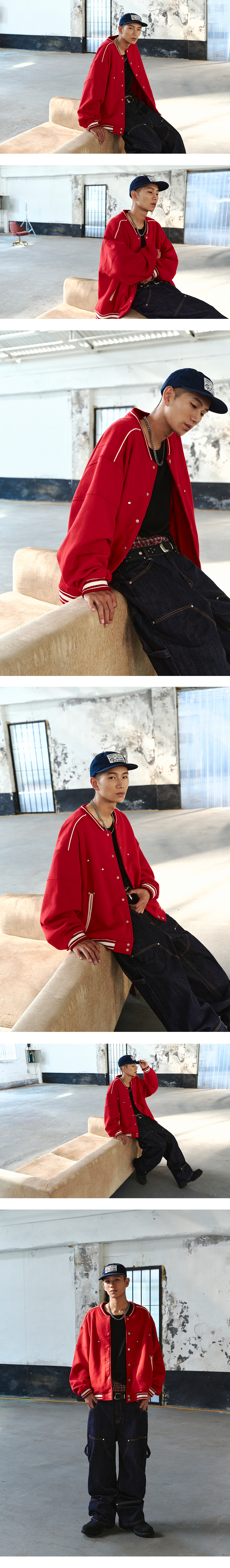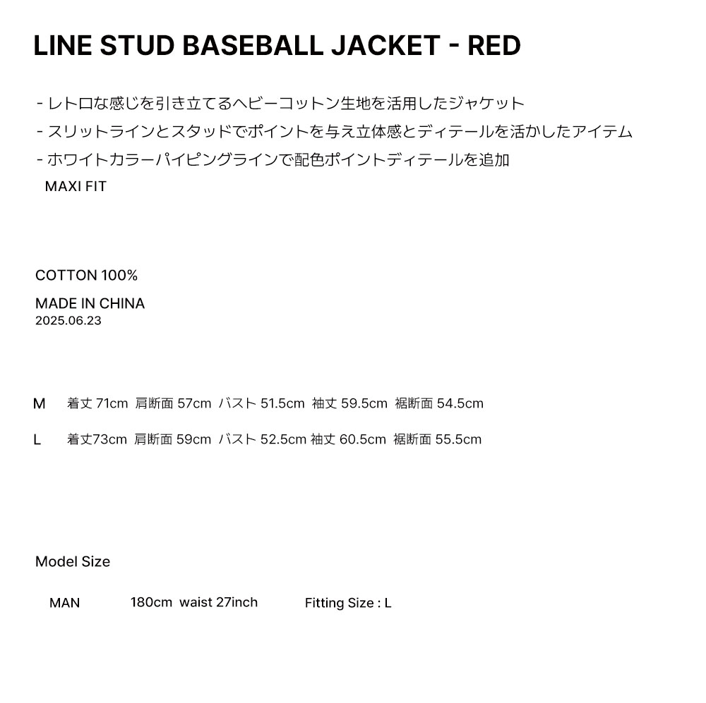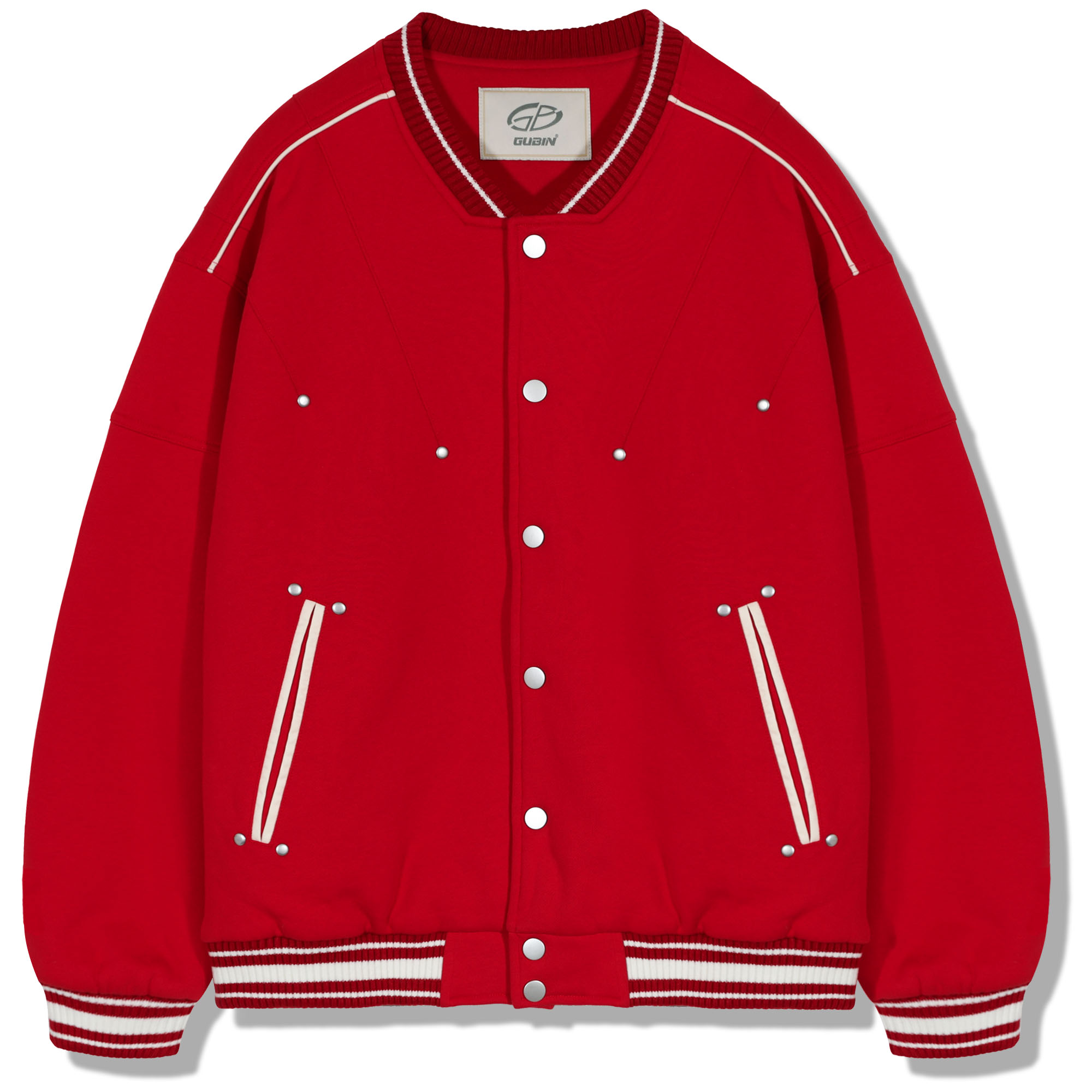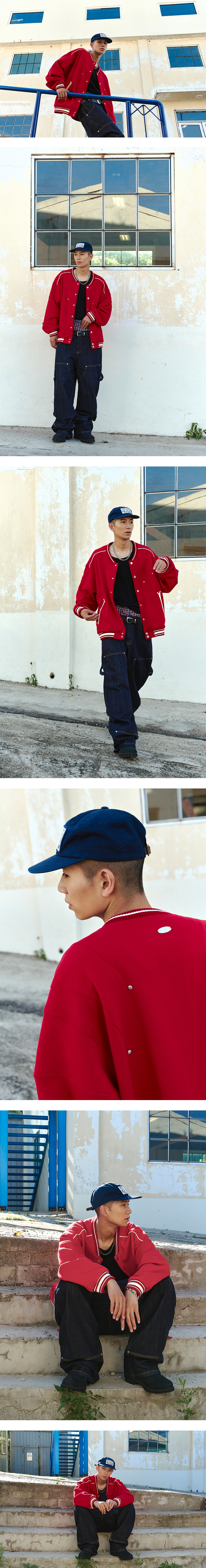Line Stud Baseball Jacket - RED