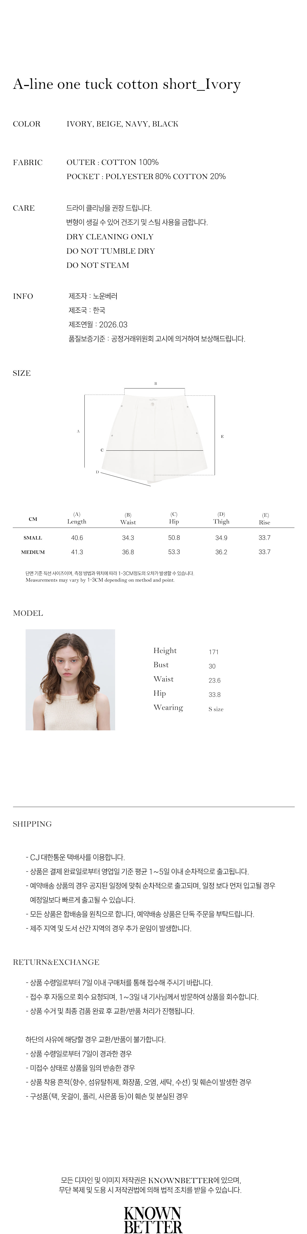 A-line one tuck cotton short [KNSS07PT01]_Ivory