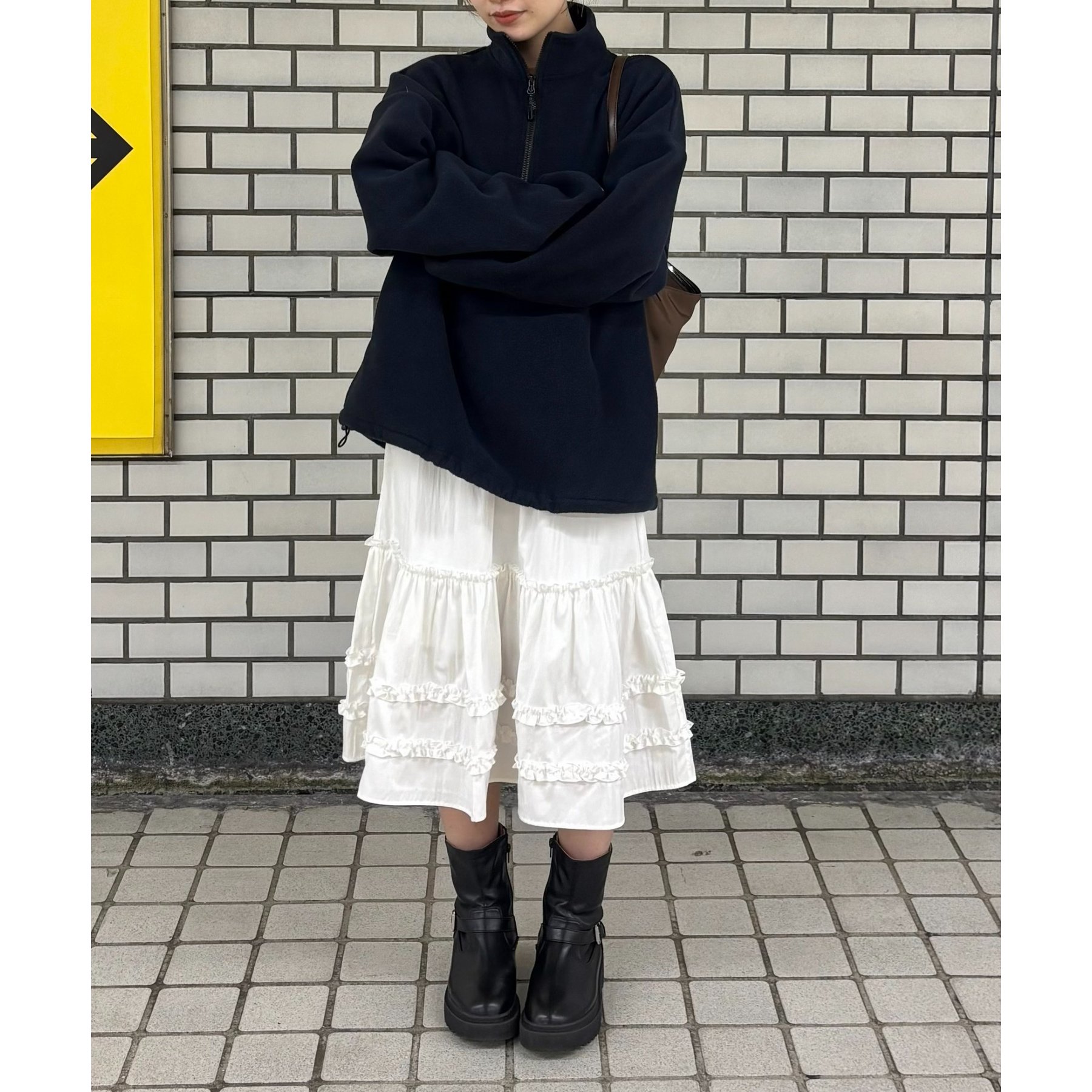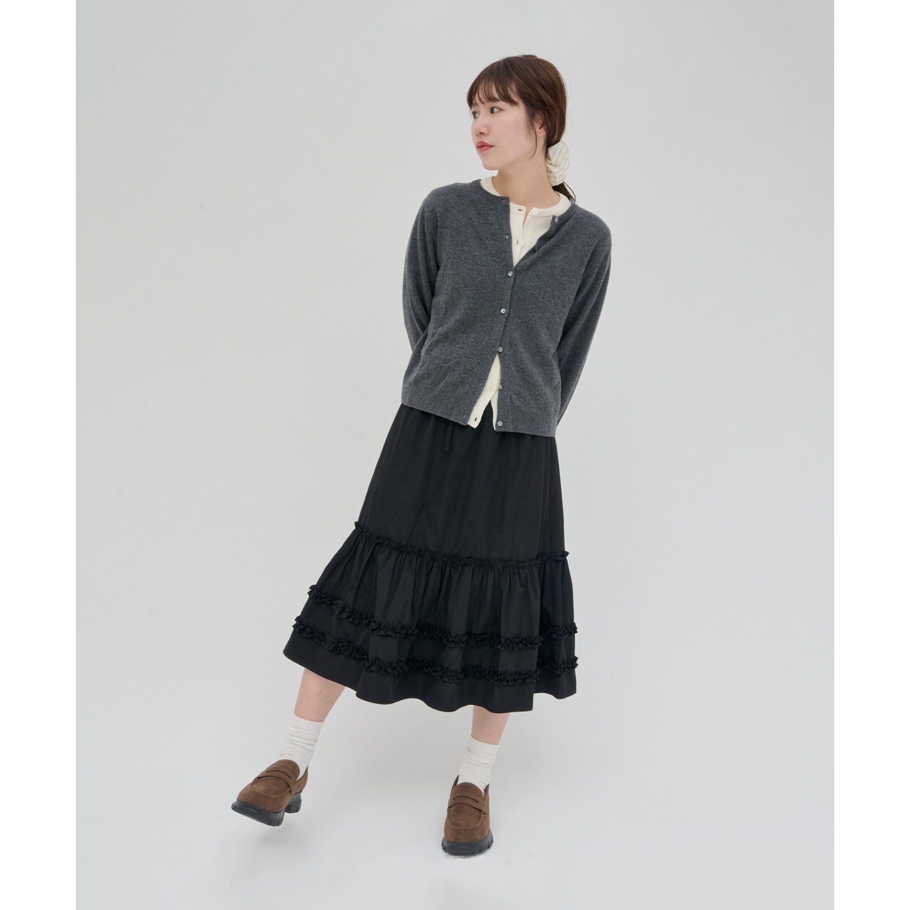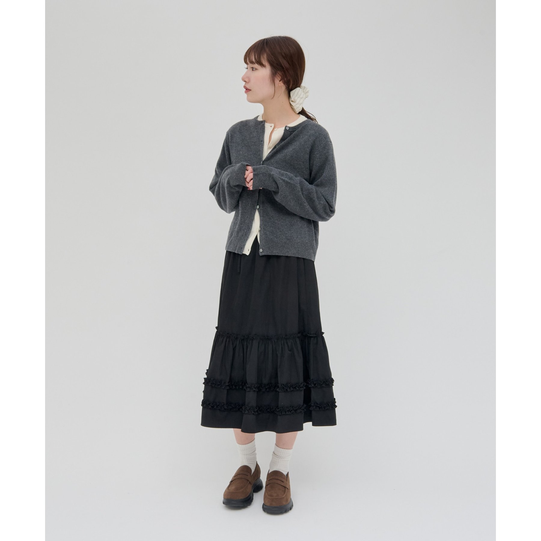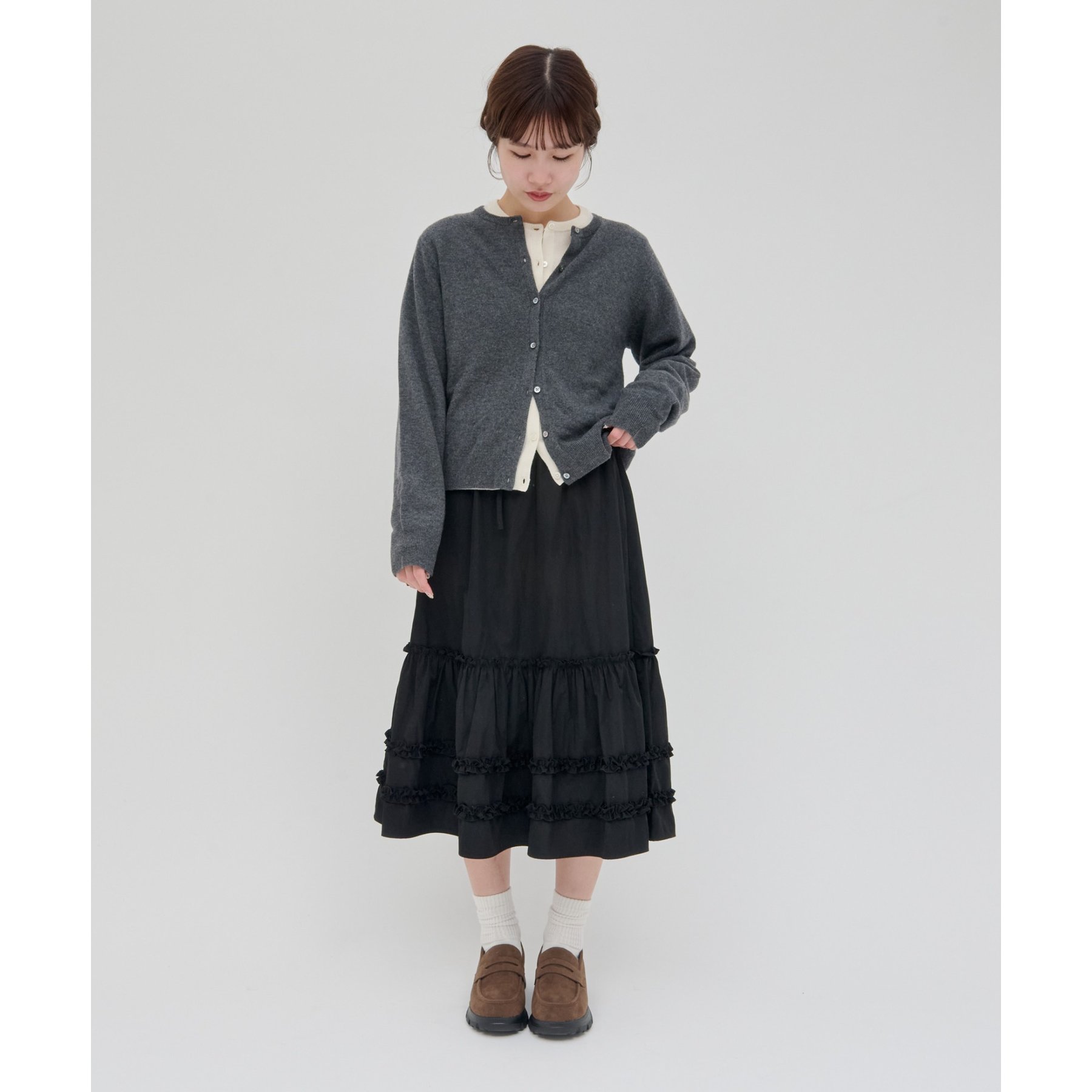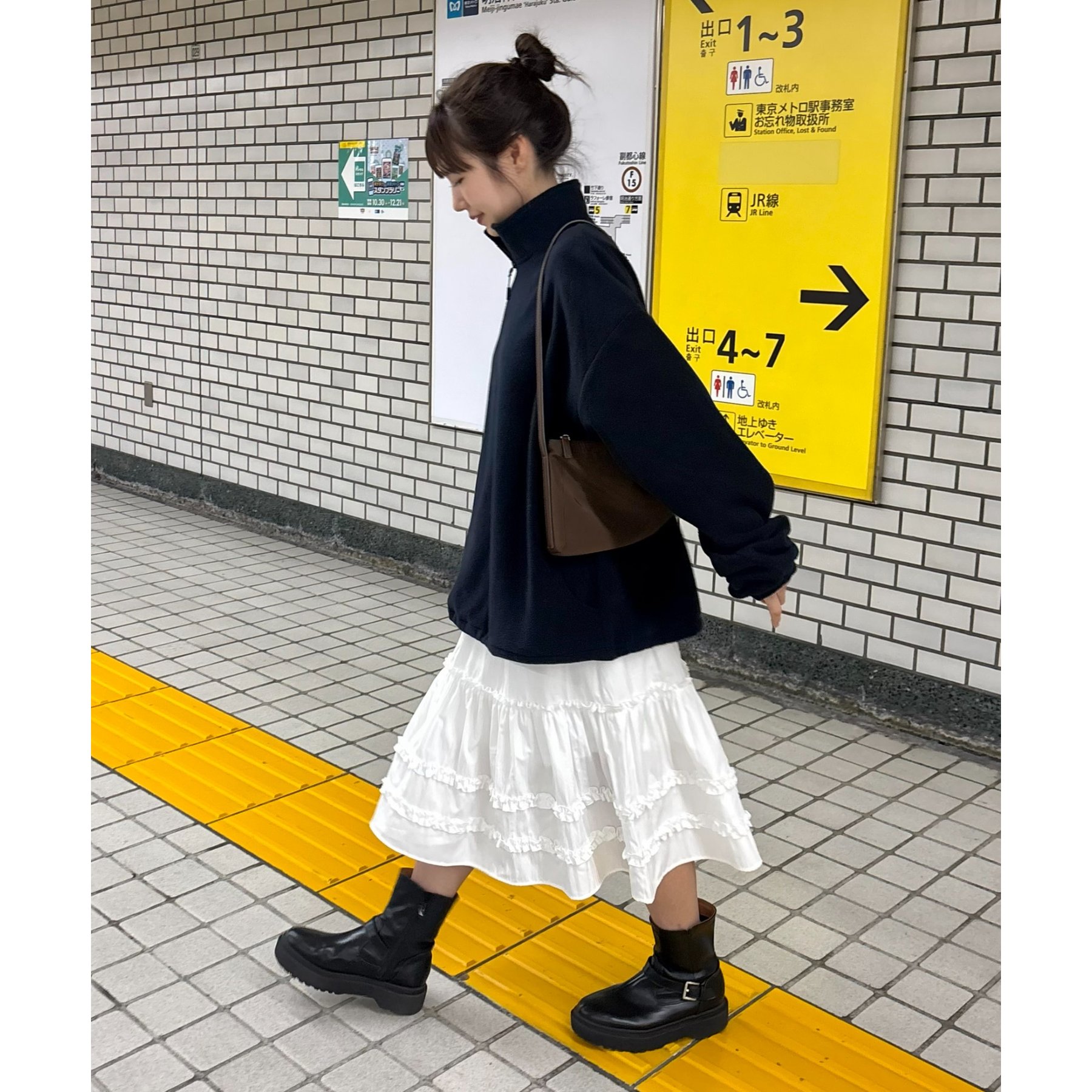 157cmスタッフ:ふくらはぎが半分くらい隠れるミドル丈で、普段使いしやすい長さ。動くたびにふんわり揺れるシルエットがかわいいです♡