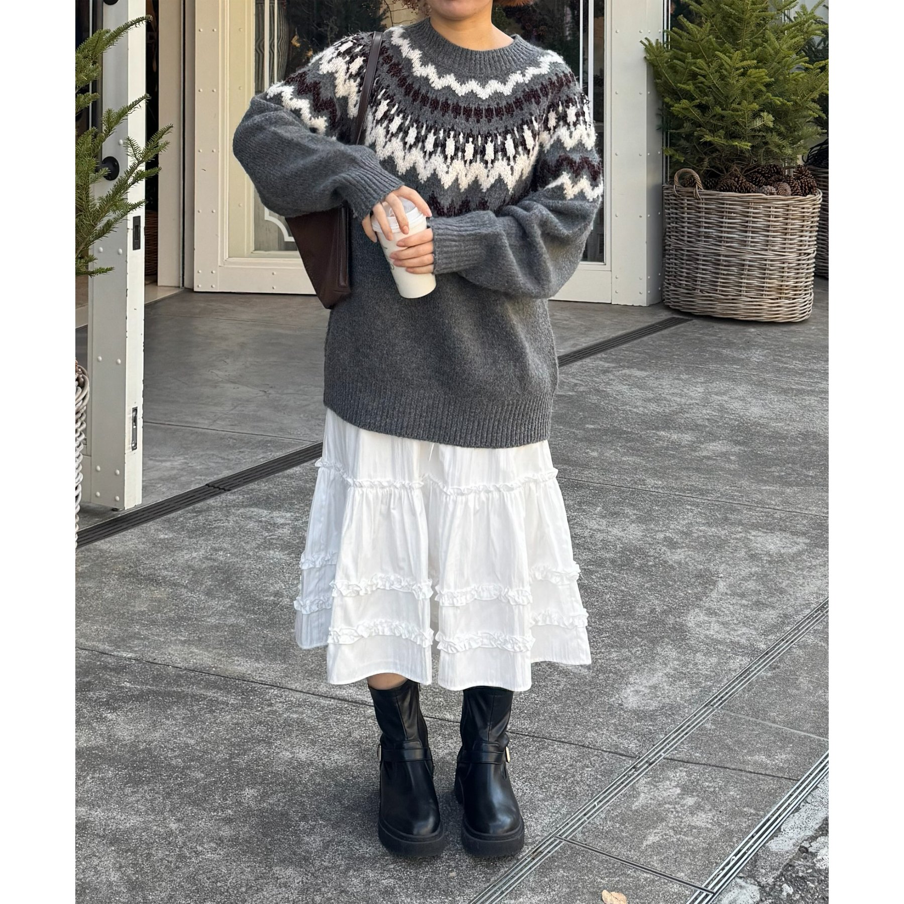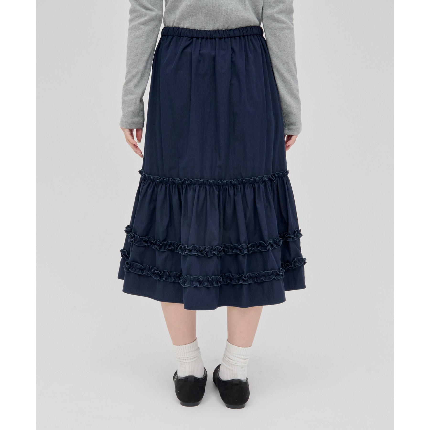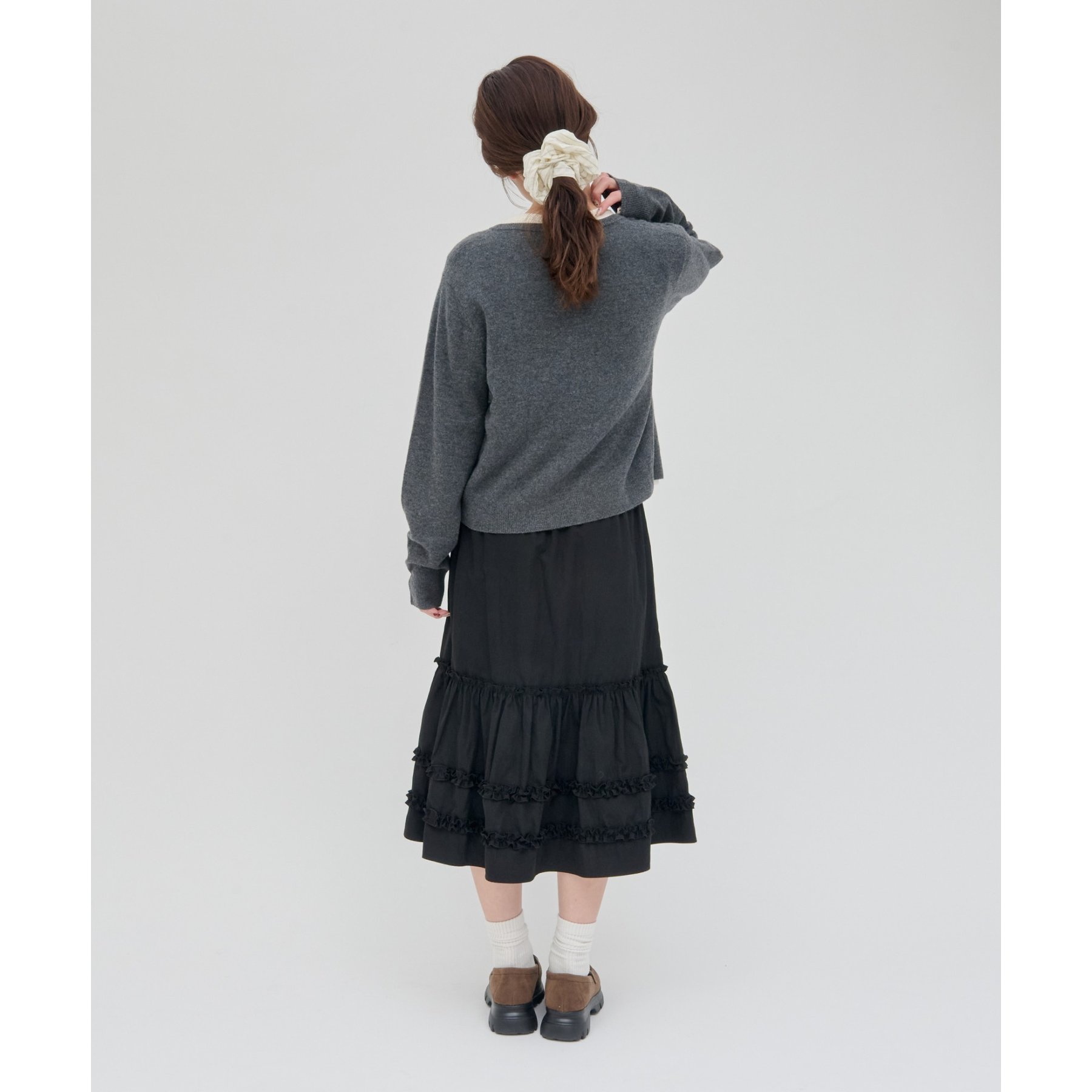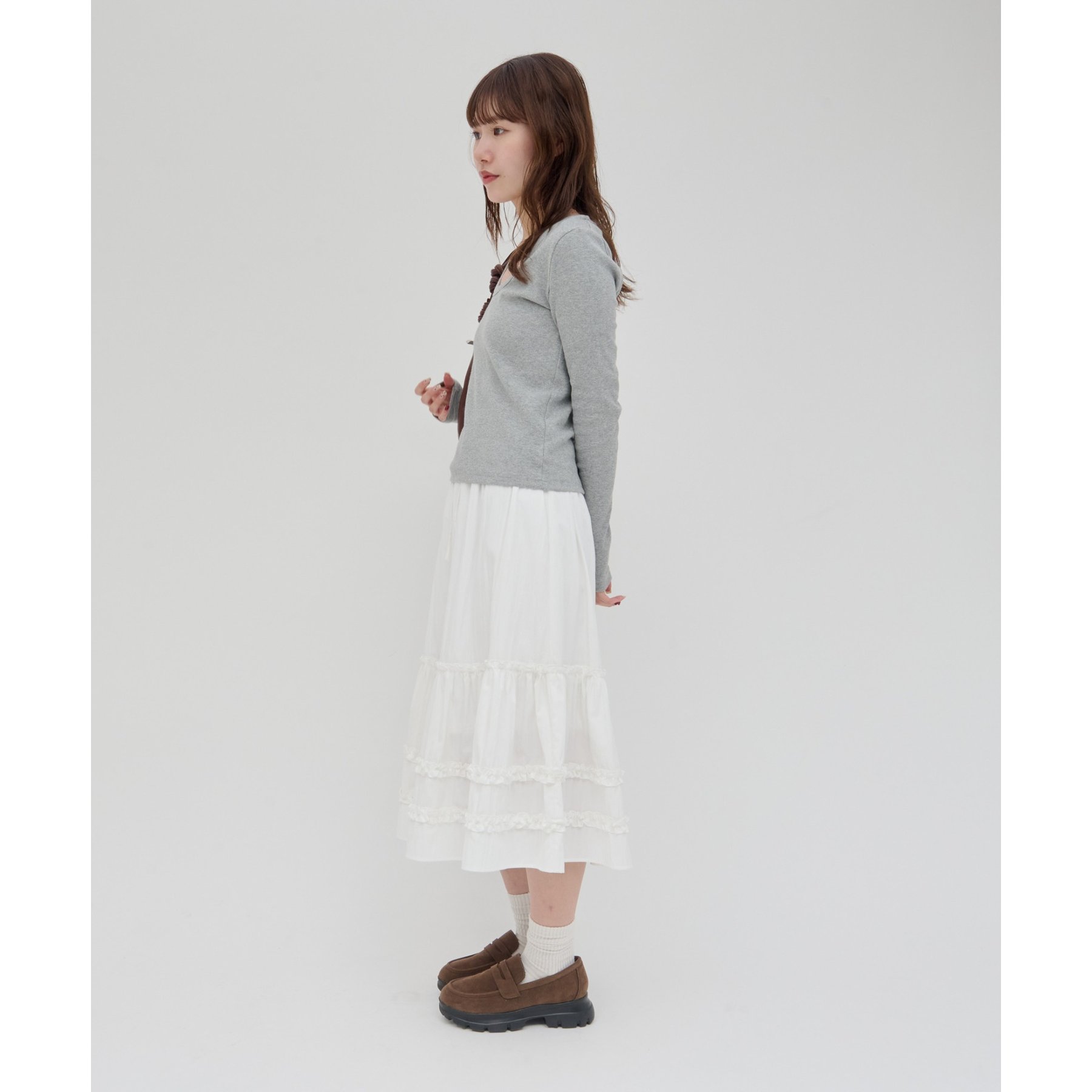 157cmスタッフ:ふくらはぎが半分くらい隠れるミドル丈で、普段使いしやすい長さ。動くたびにふんわり揺れるシルエットがかわいいです♡