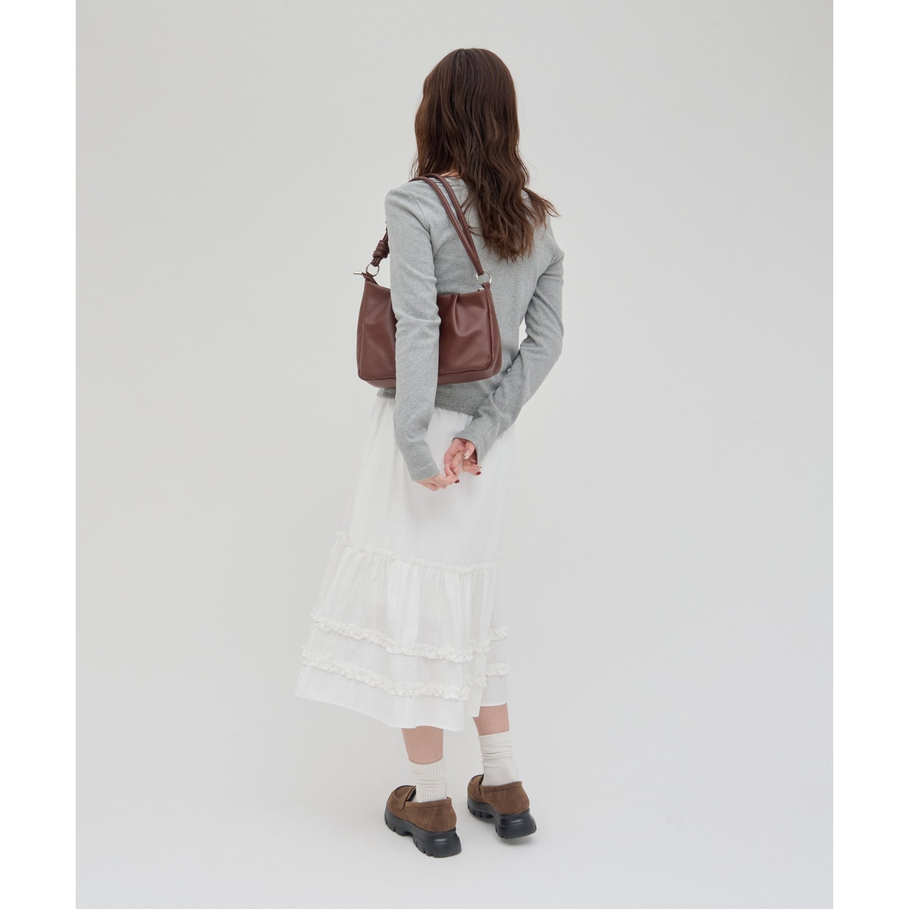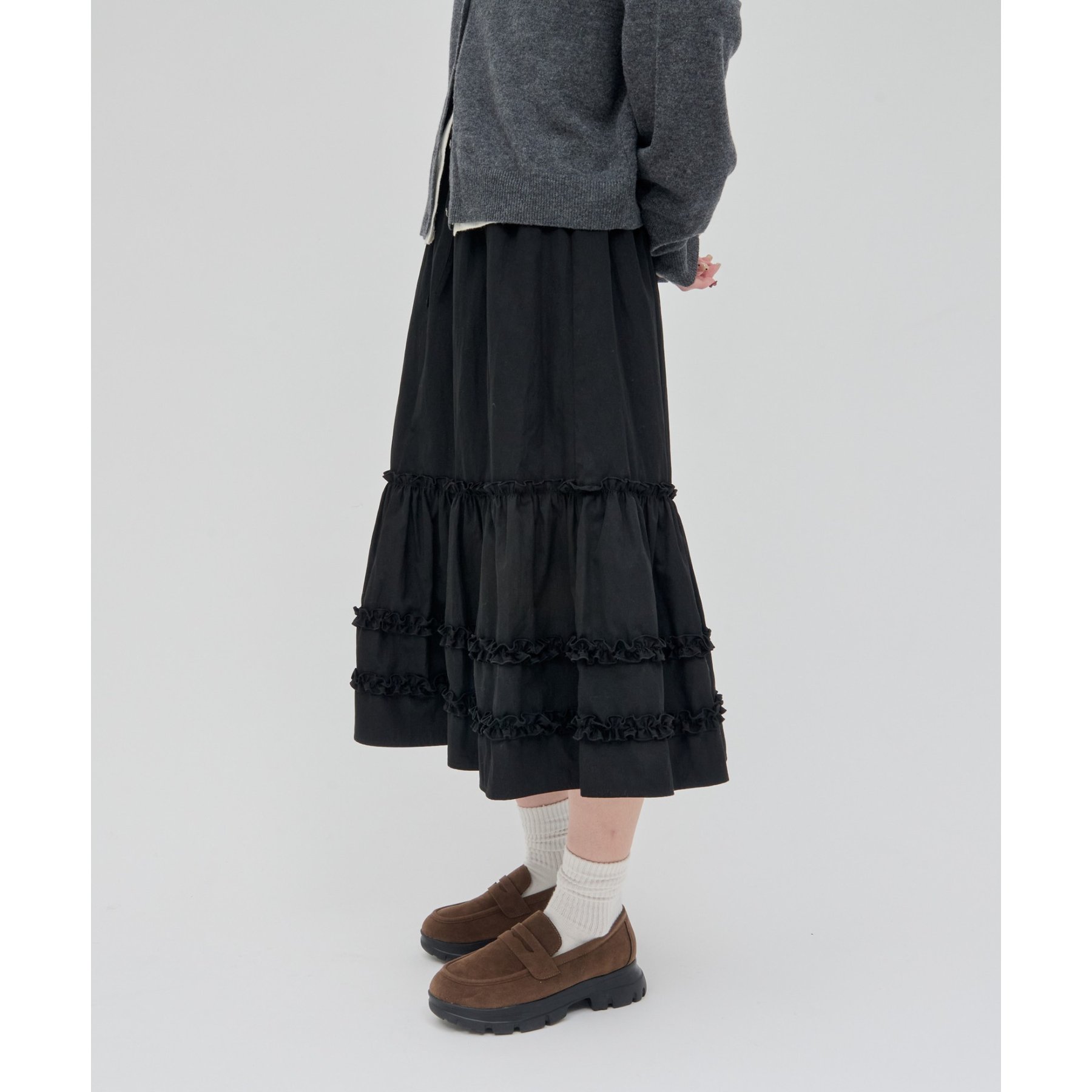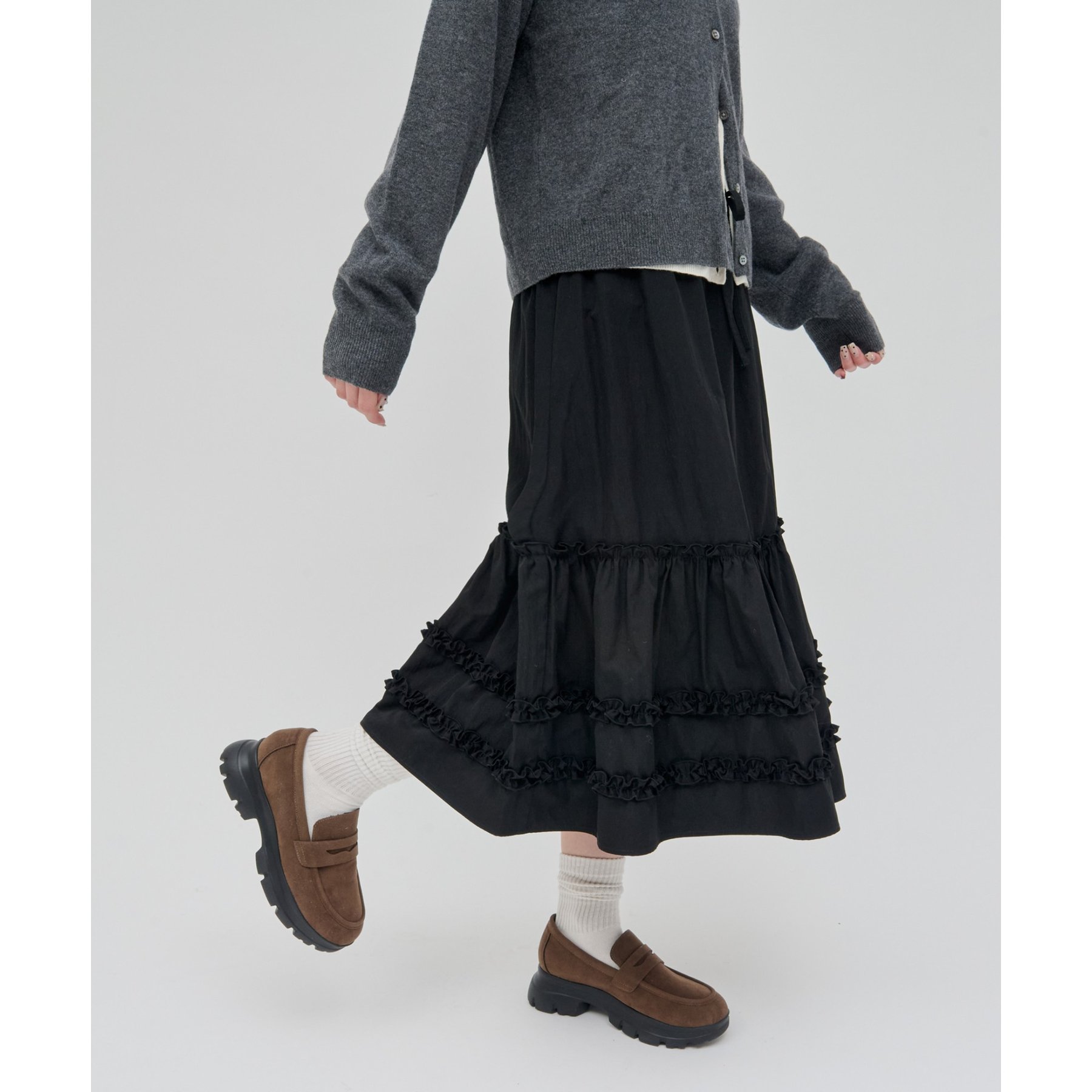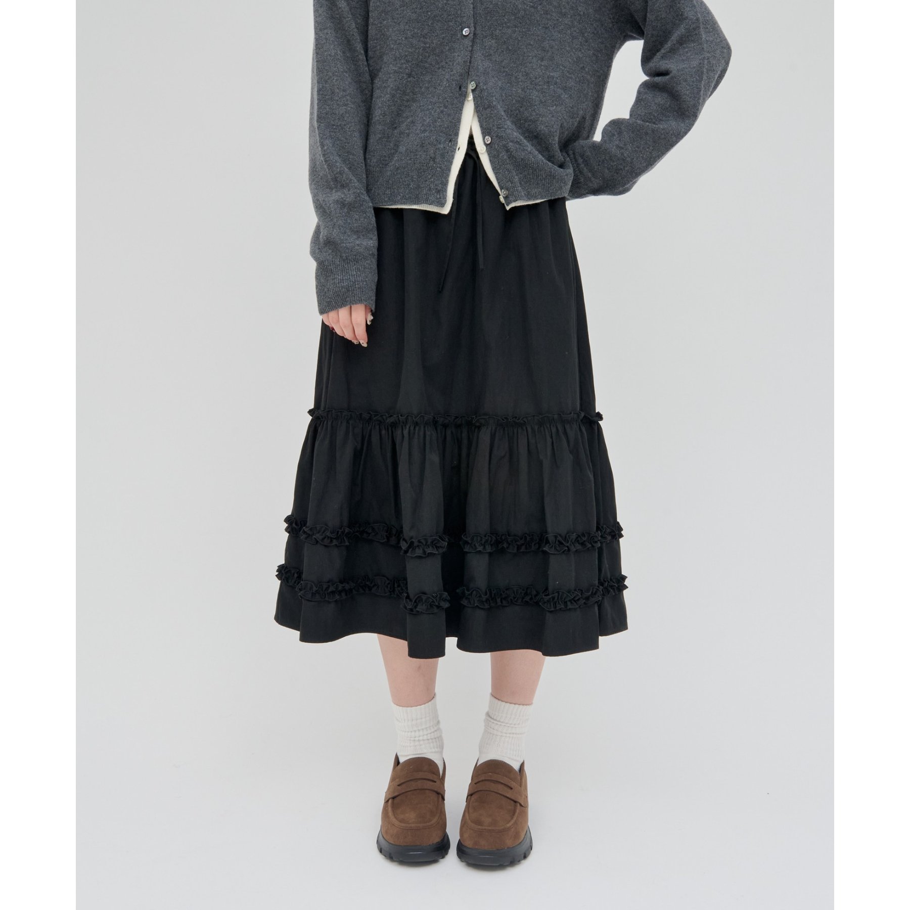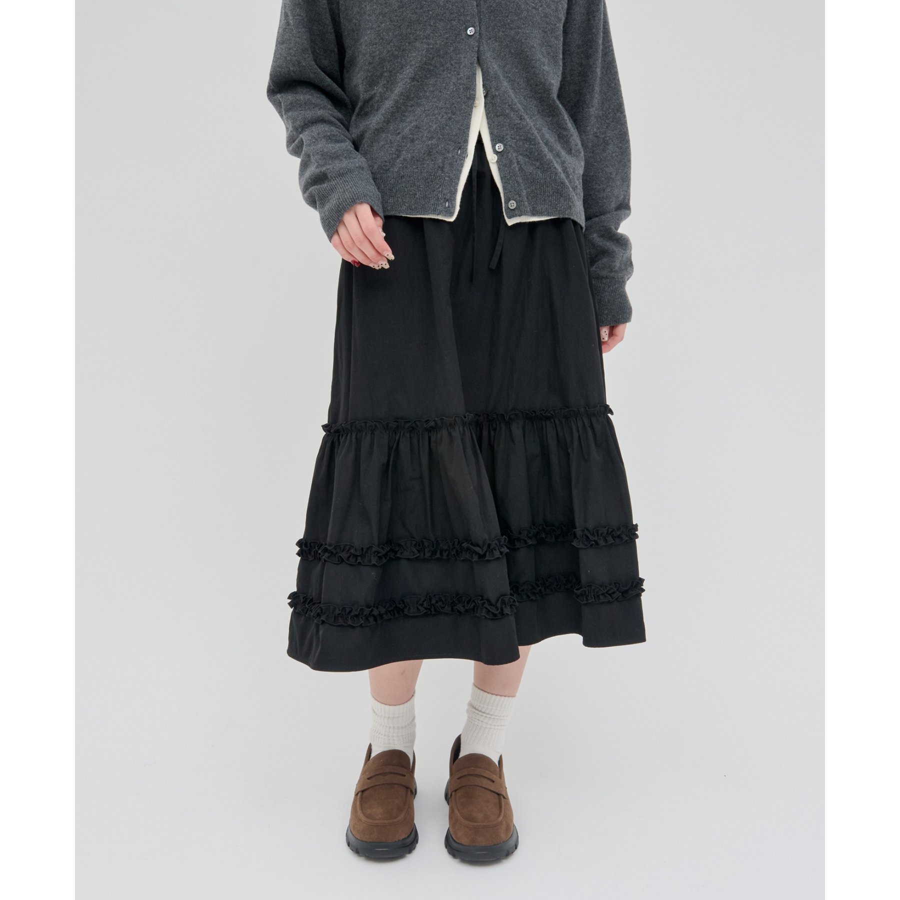 157cmスタッフ:ふくらはぎが半分くらい隠れるミドル丈で、普段使いしやすい長さ。動くたびにふんわり揺れるシルエットがかわいいです♡