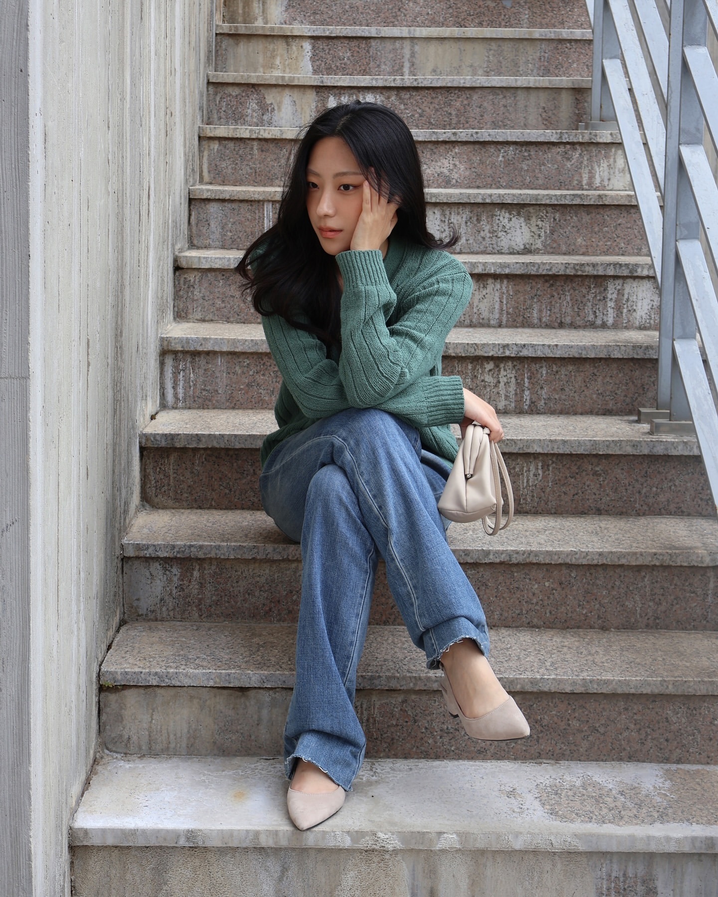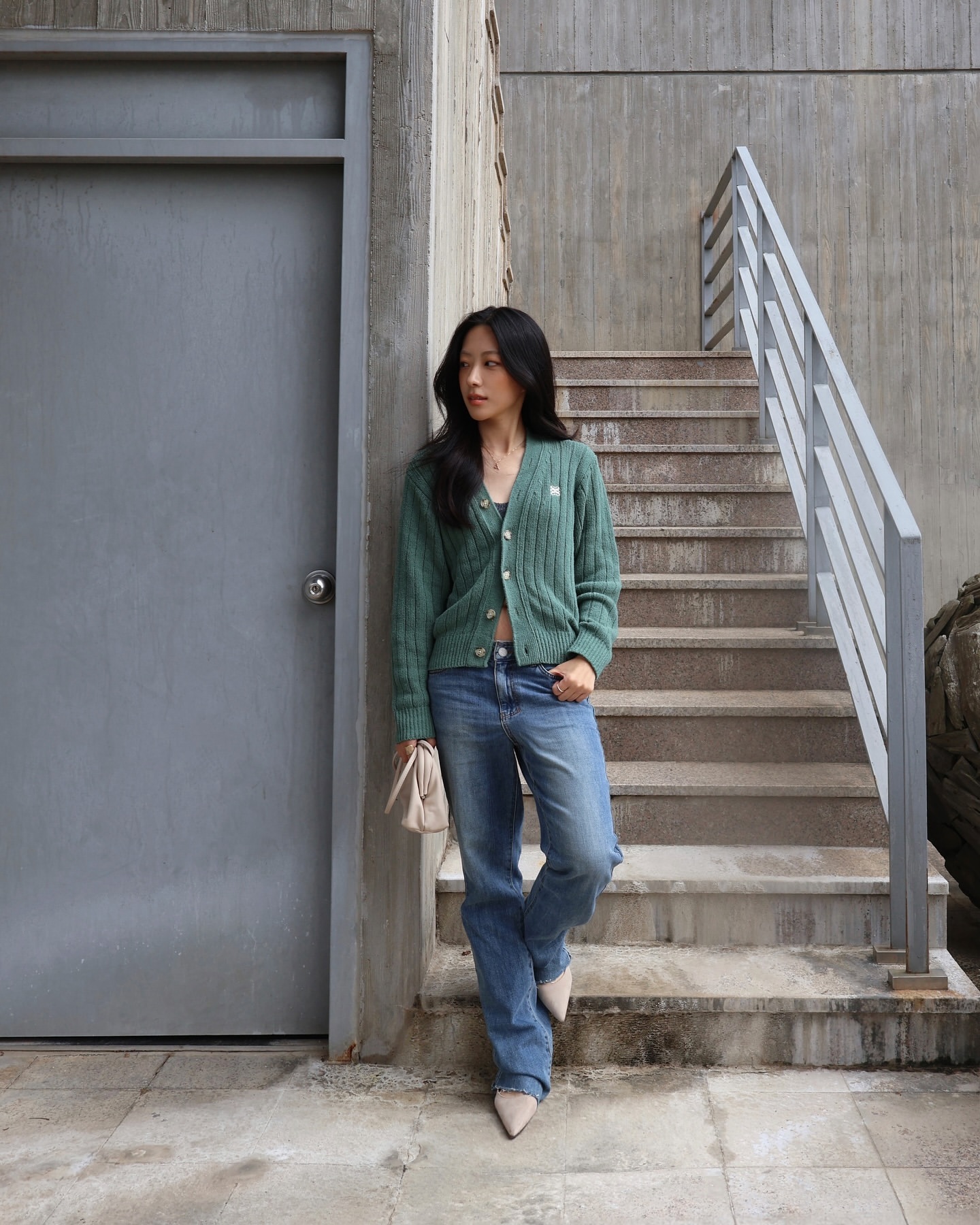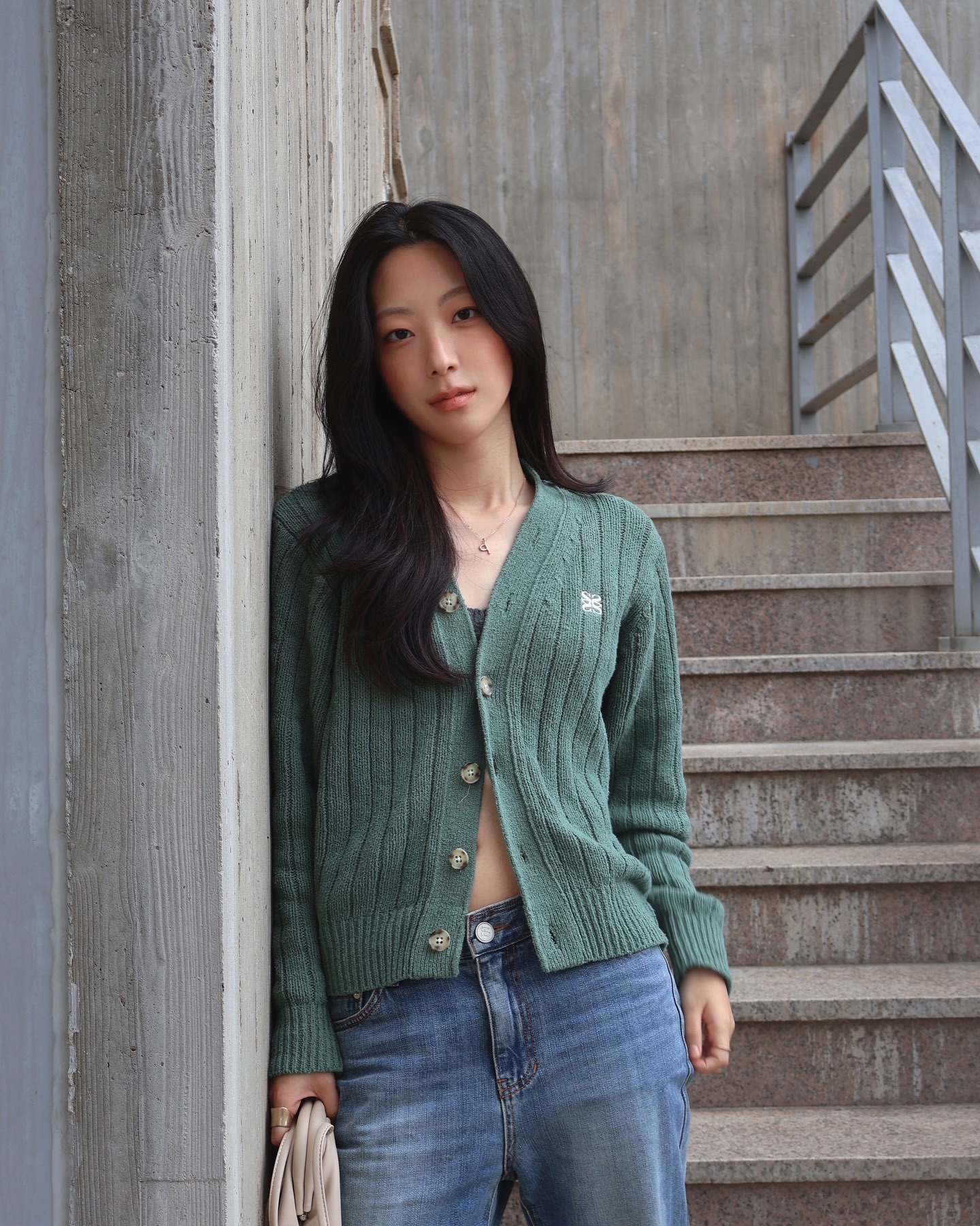 [Influencer pick] (W) Faro Over Size Boucle Cardigan - Sage Green