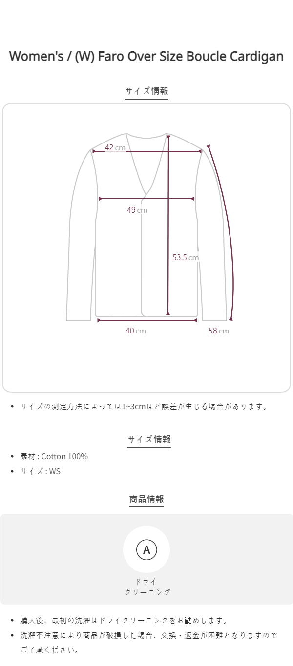このブランドの商品はお客様の都合による交換および返品はお受けいたしかねます。