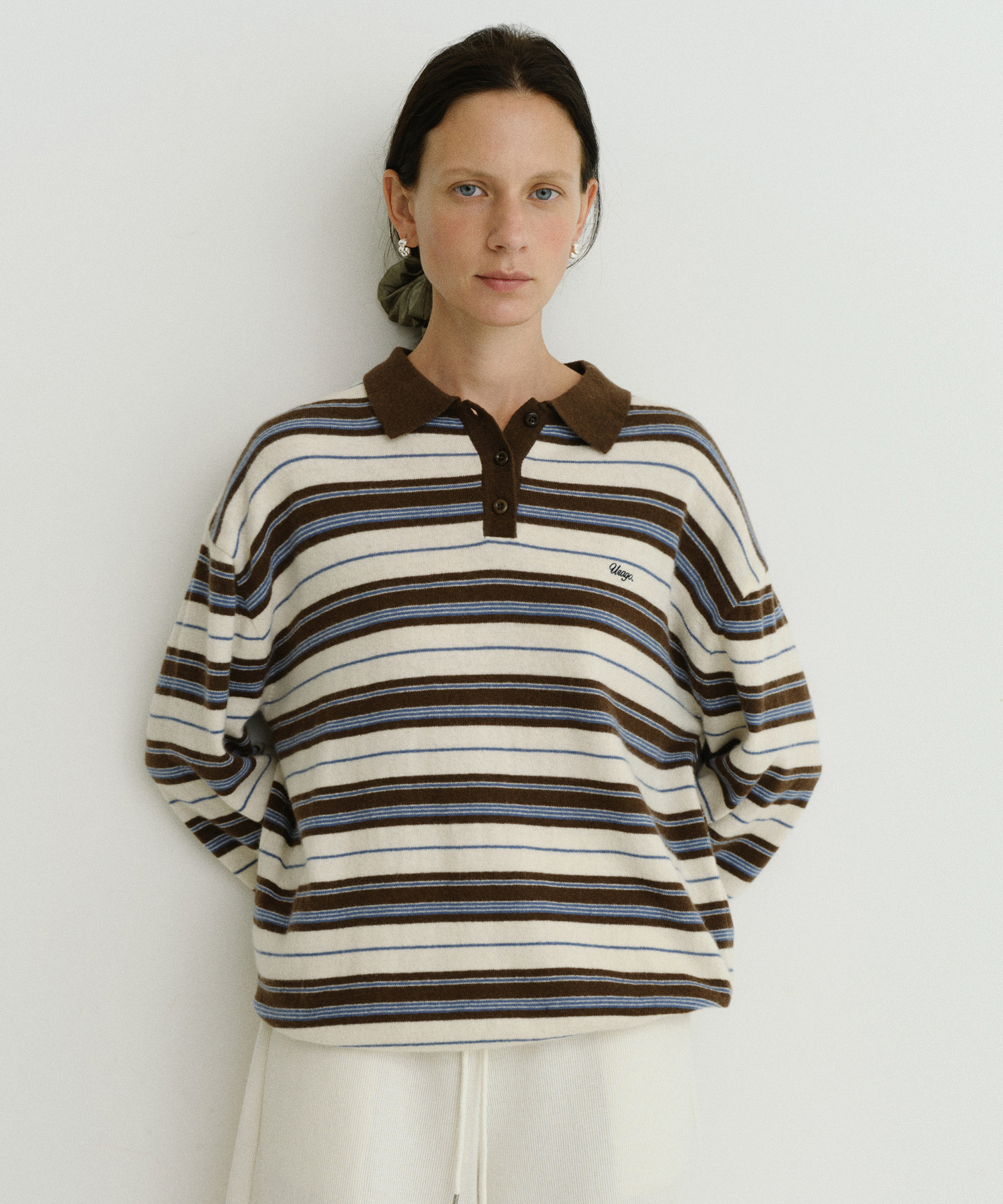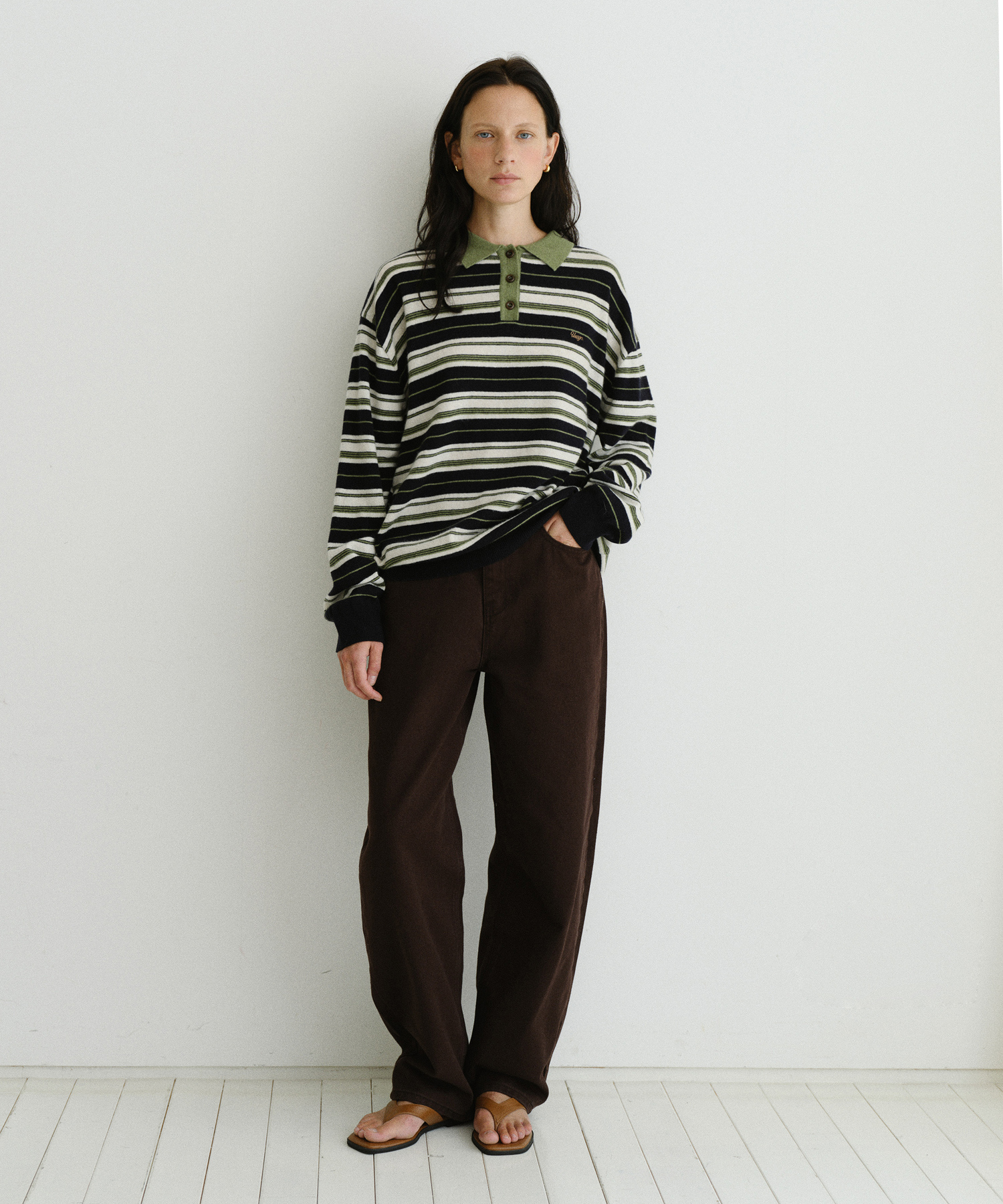 -ゆったりとしたシルエットに3色の配色ストライプをあしらい、軽やかでカジュアルなムードを演出します。