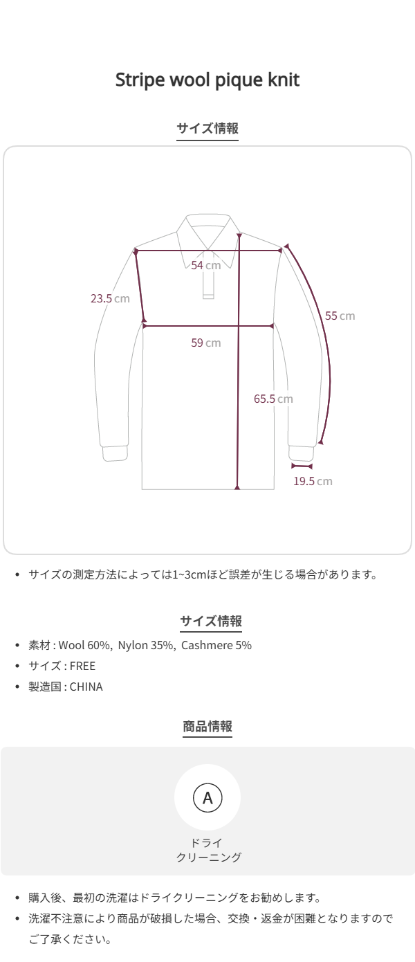 *ニット製品の特性上、摩擦によって毛玉(ピリング)が発生する場合があります。