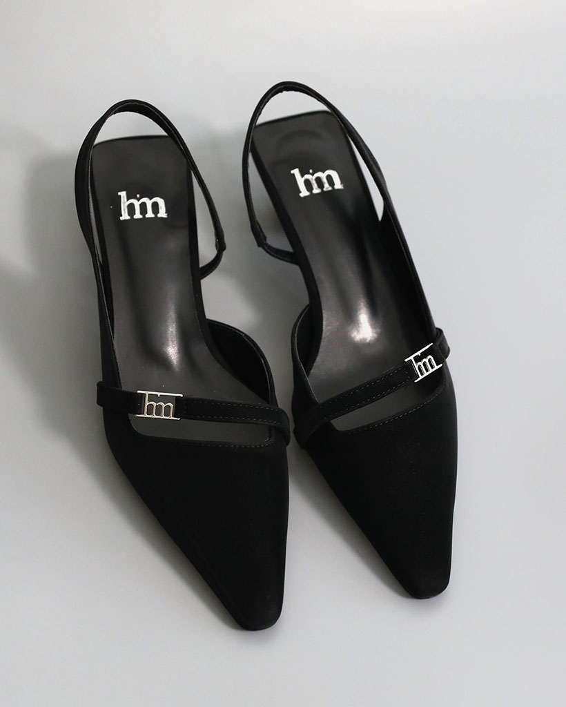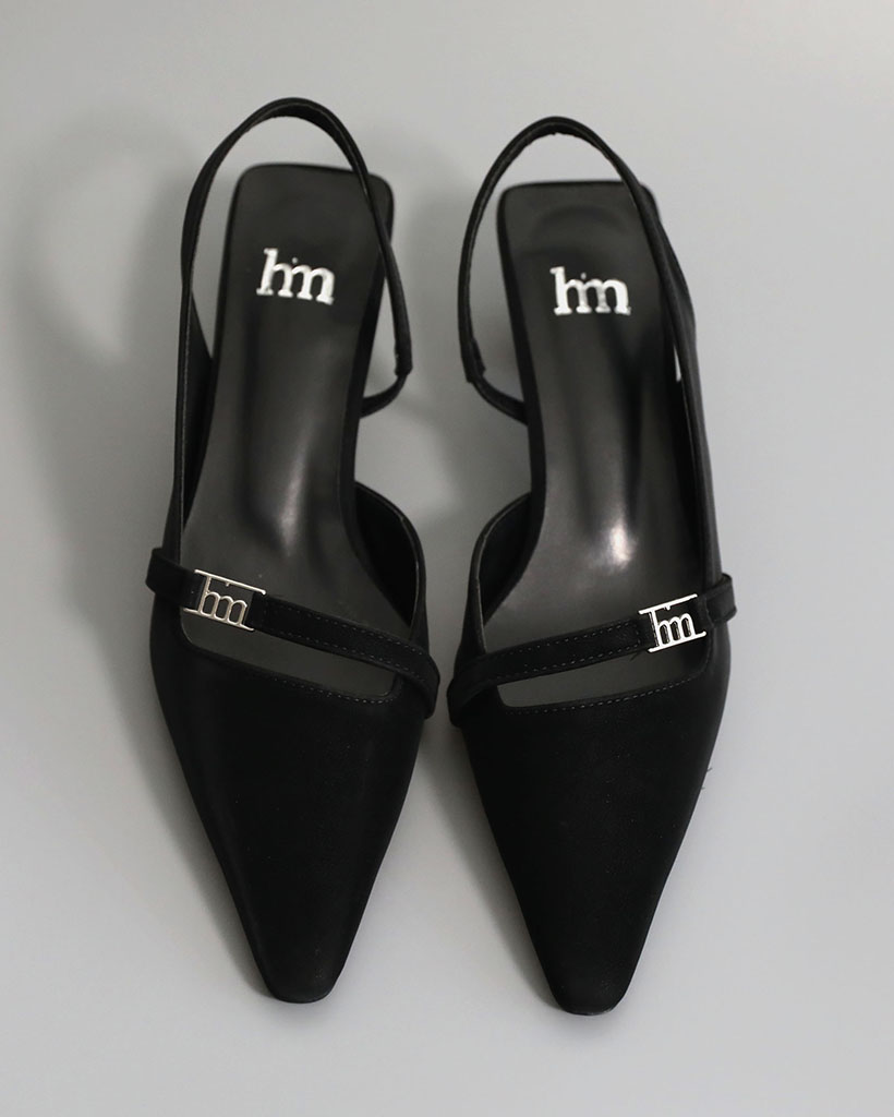 【4色展開】ヒアムロゴポイント甲ストラップポイントスリングバック/2025 AW NEW COLLECTION/black
