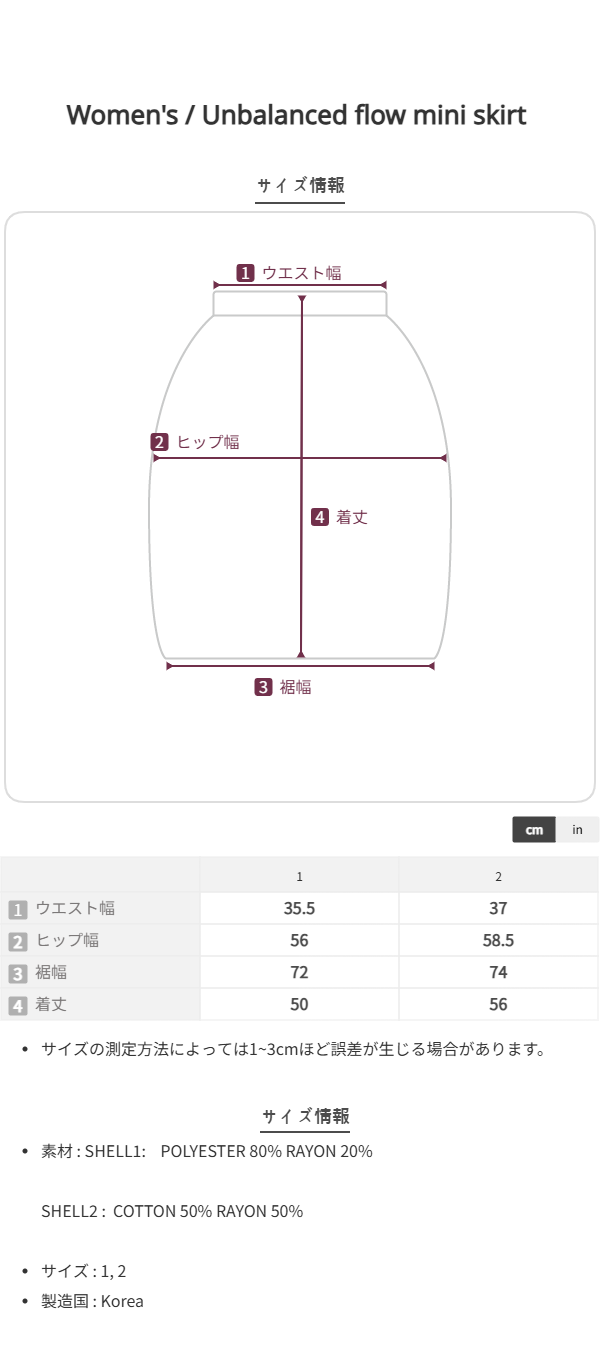 1 Length 50 waist 35.5 Hem 72 Hip 56 2 Length 56 waist 37 Hem 74 Hip 58.5