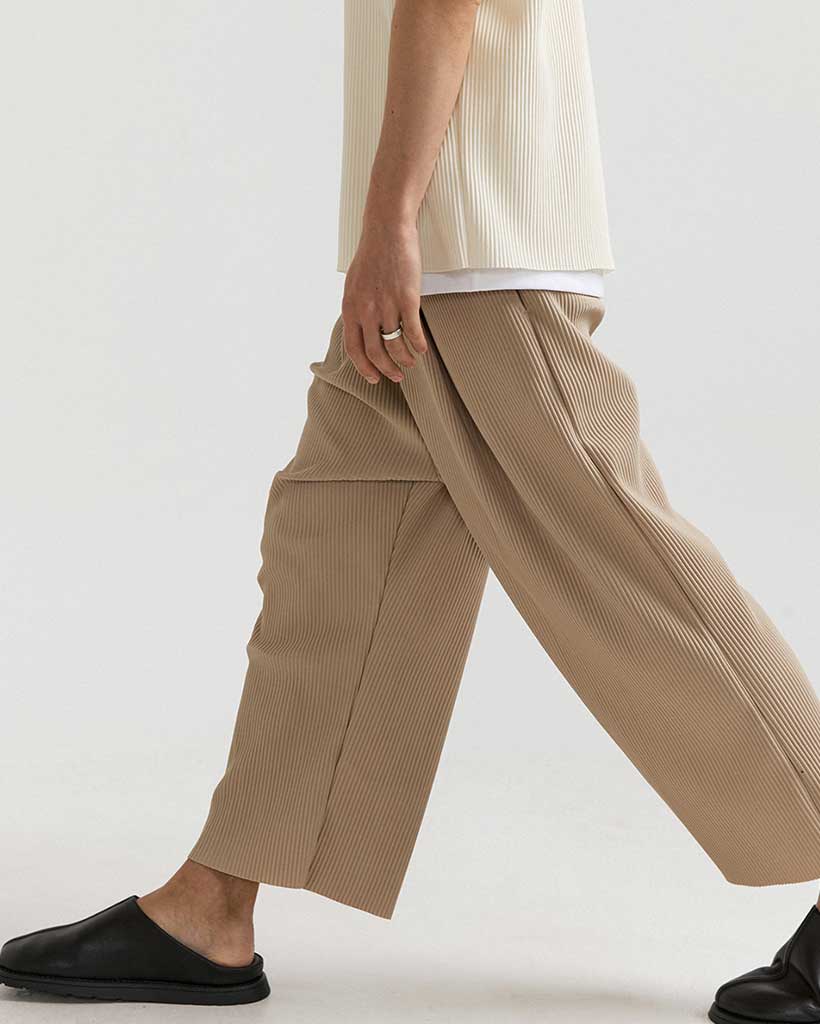 PT11X Pleated Wide Pintuck Pants [Beige]