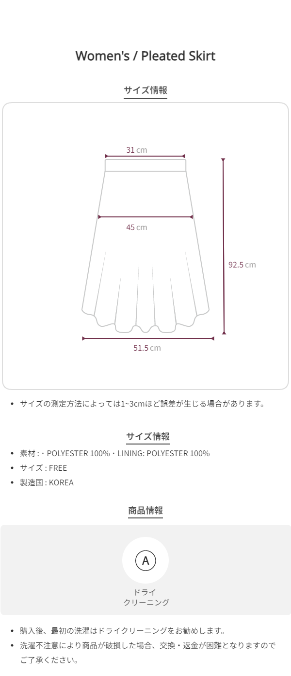 裏地付きで透けを気にせず着用でき、ベーシックなデザインにプリーツならではの立体感をプラス。シャツ・ニット・Tシャツなどさまざまなトップスと調和します。