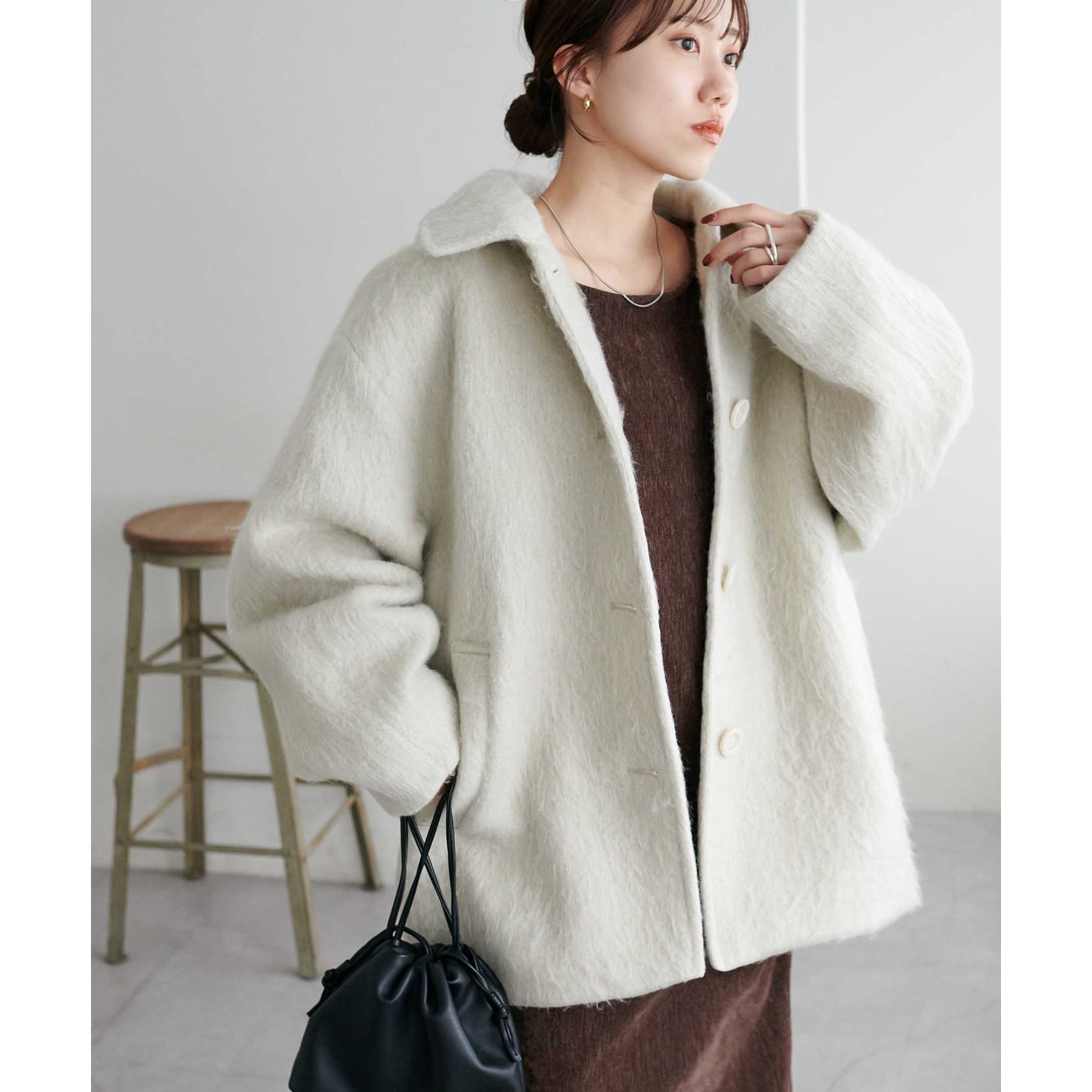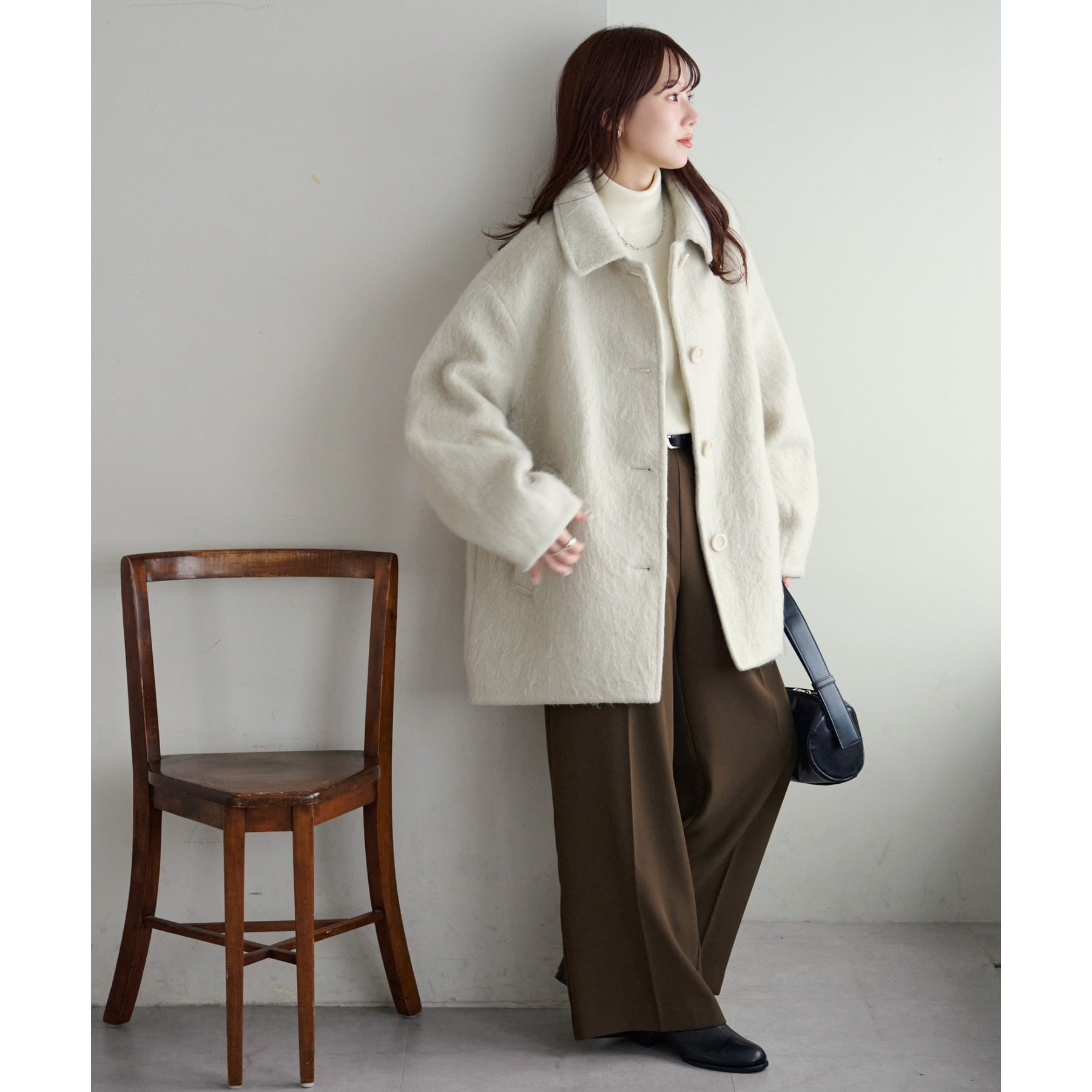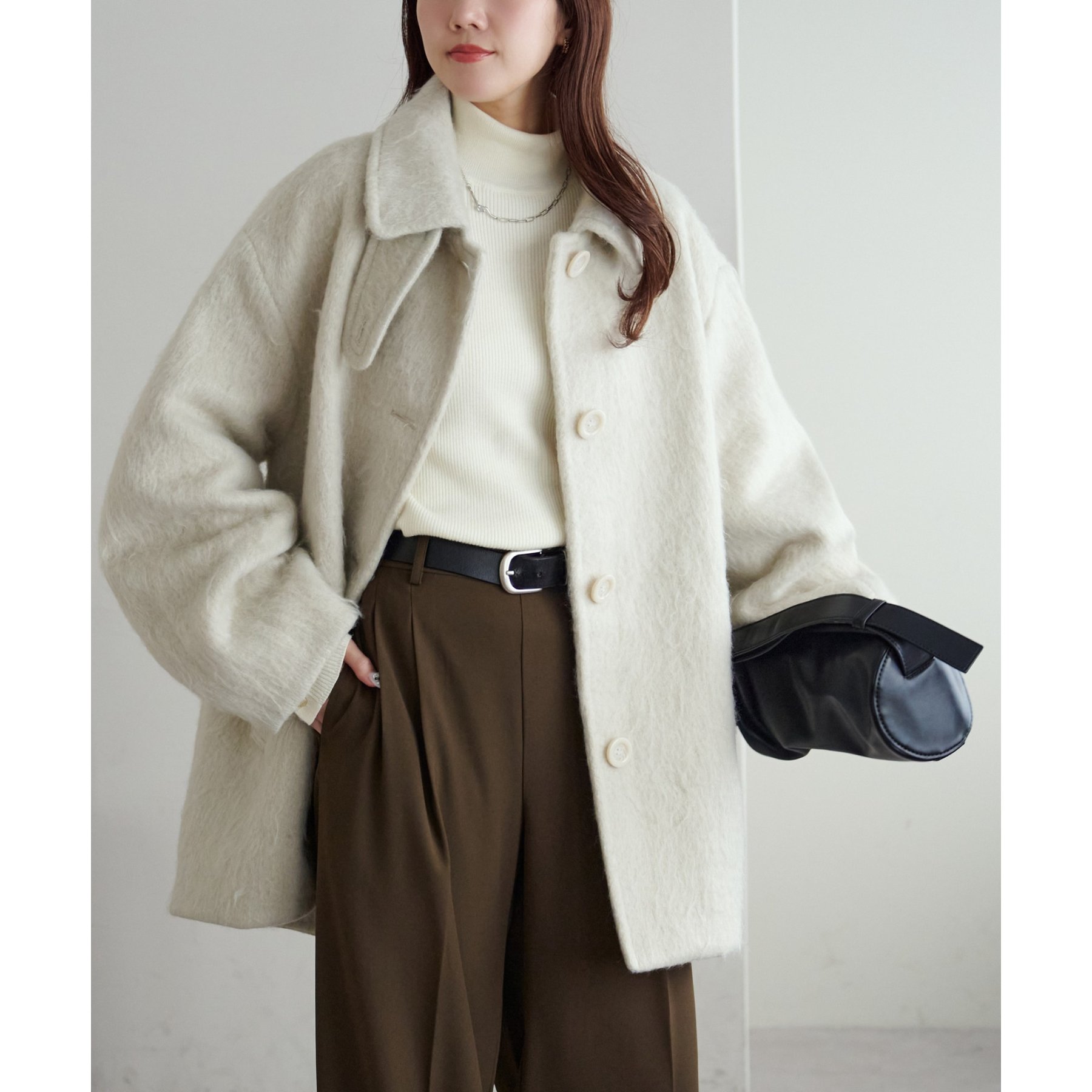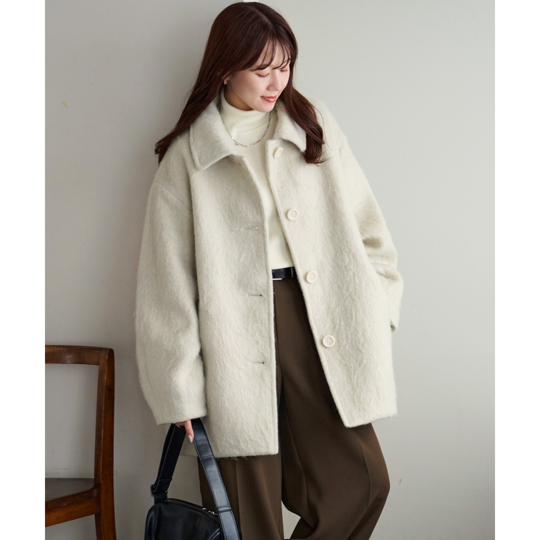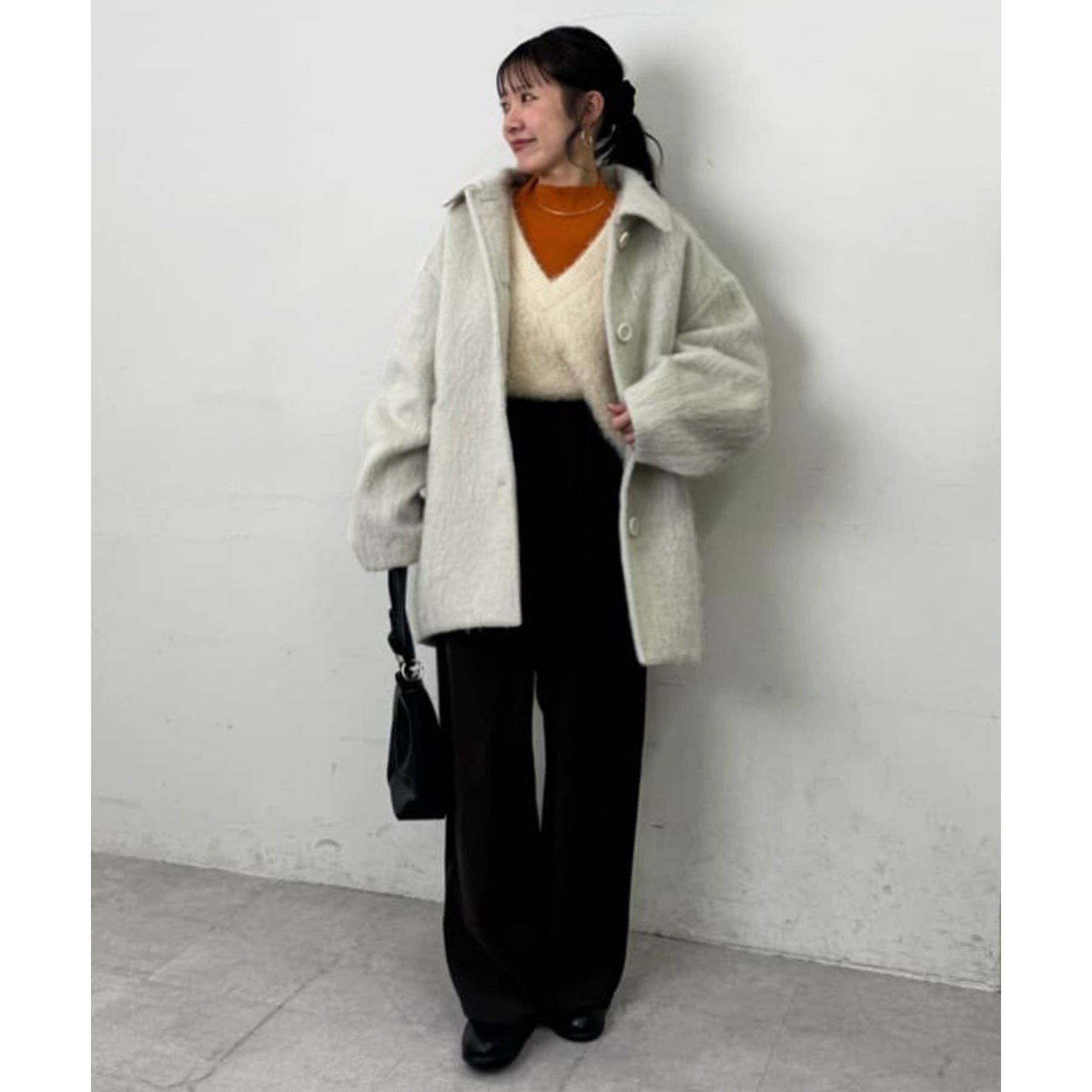ふんわりとしたシャギー素材がシーズンムードを高めるミドルコート。