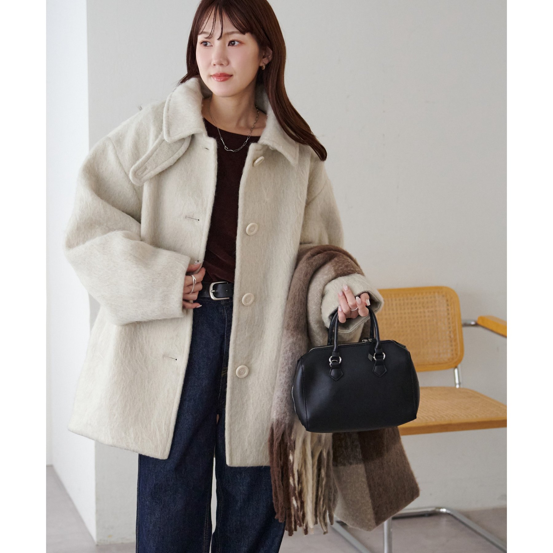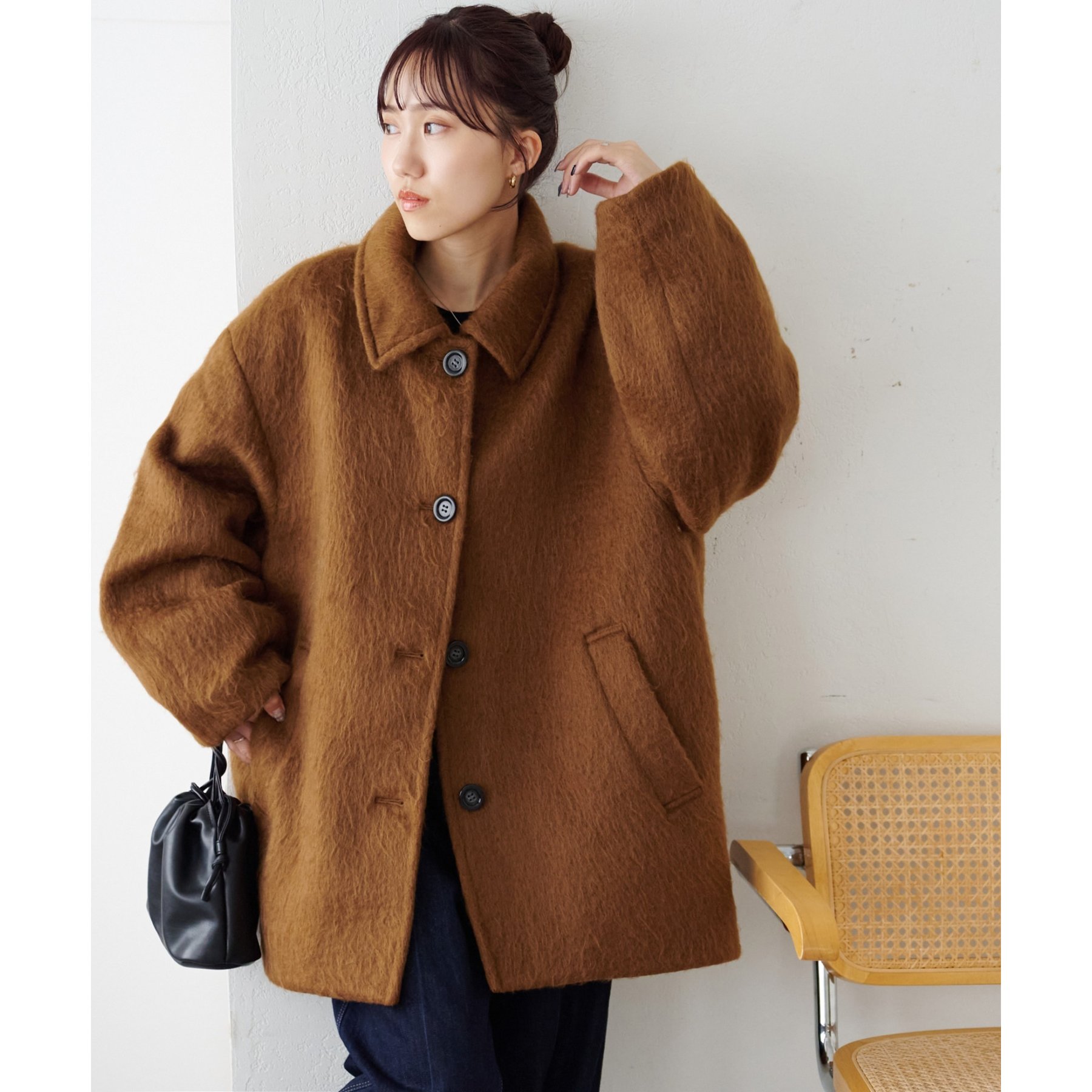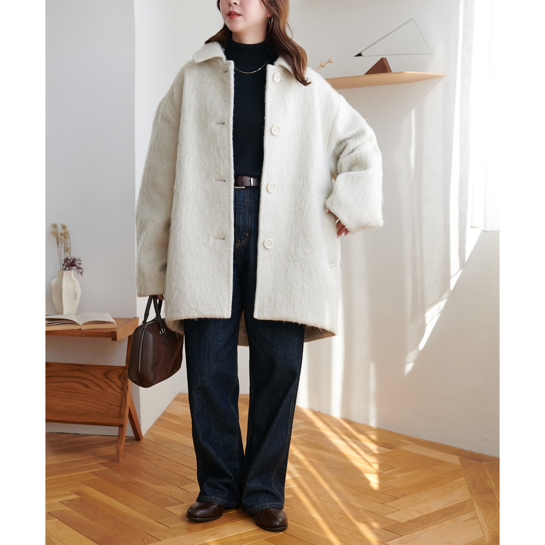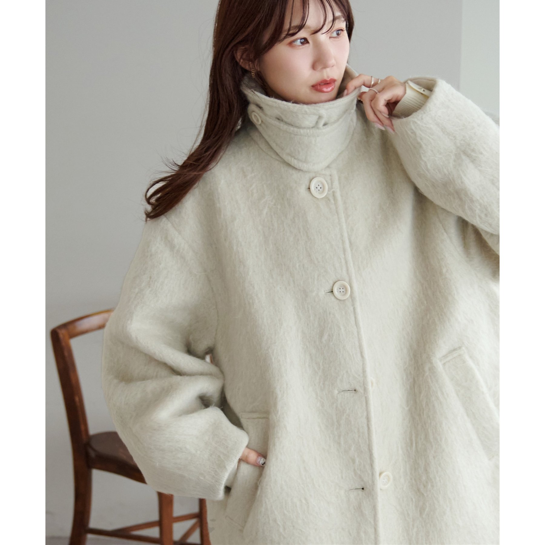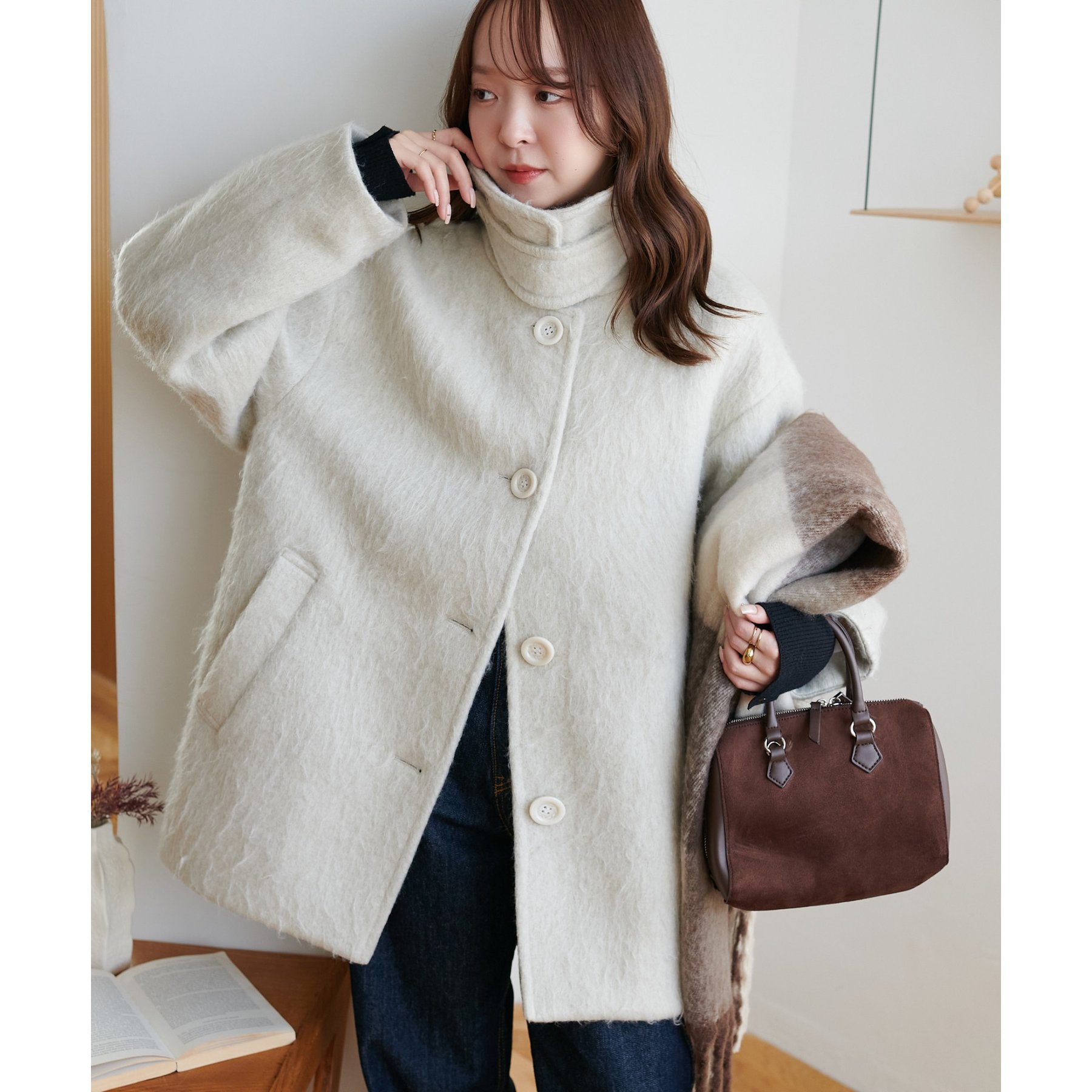 ふんわりとしたシャギー素材がシーズンムードを高めるミドルコート。