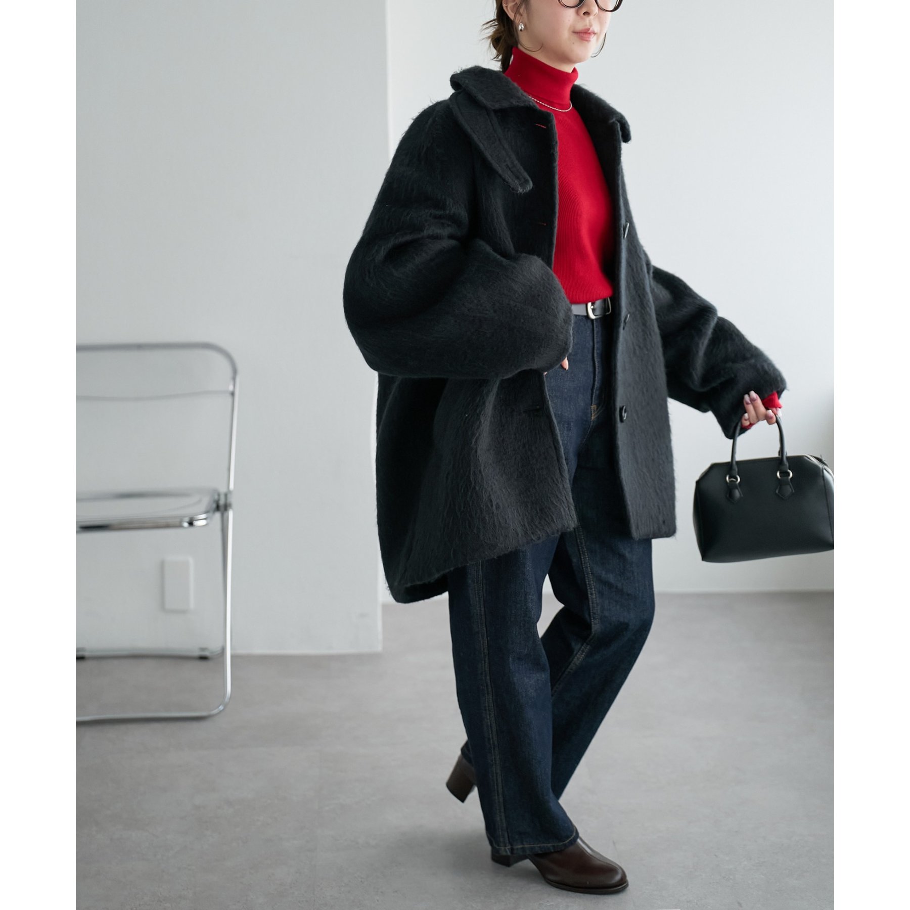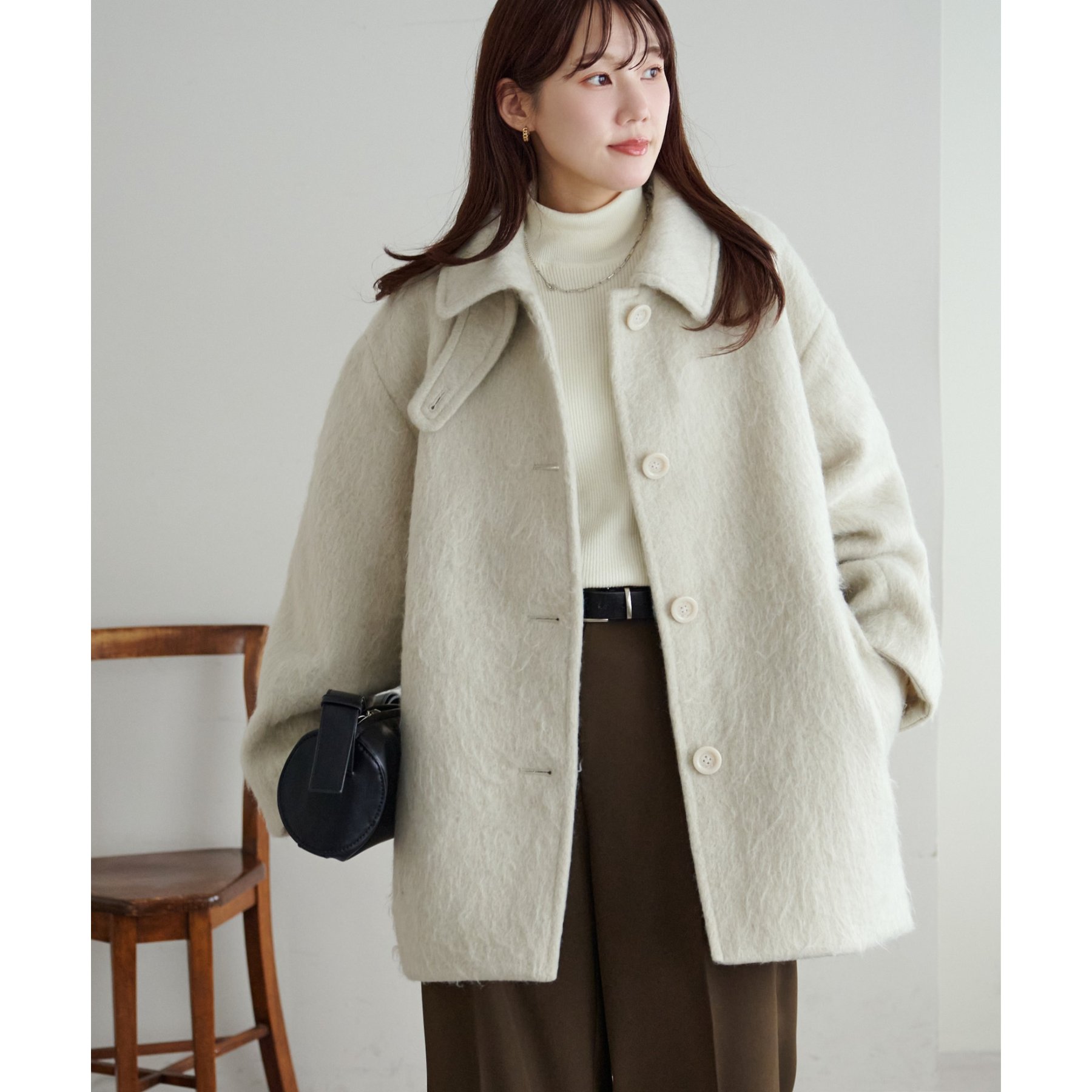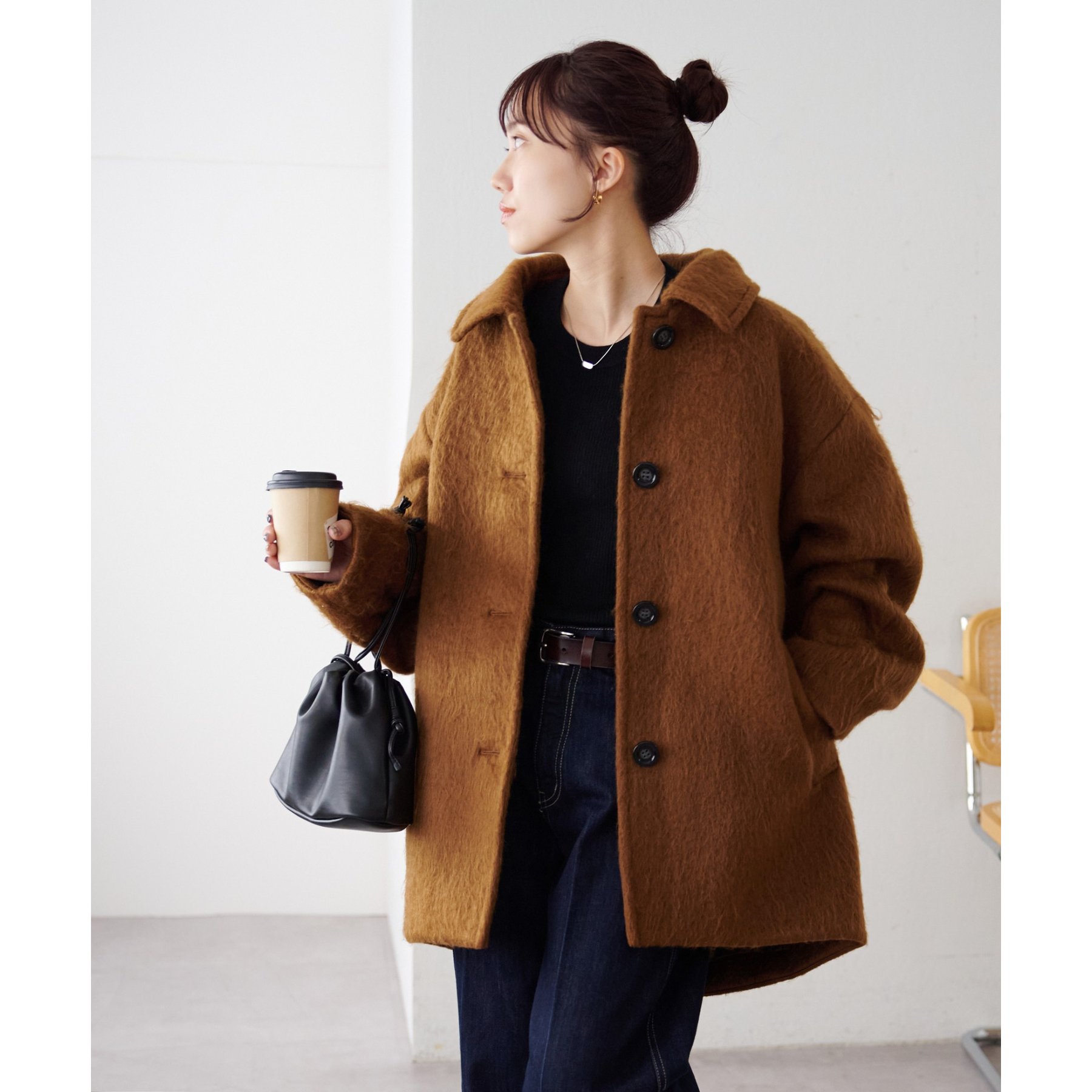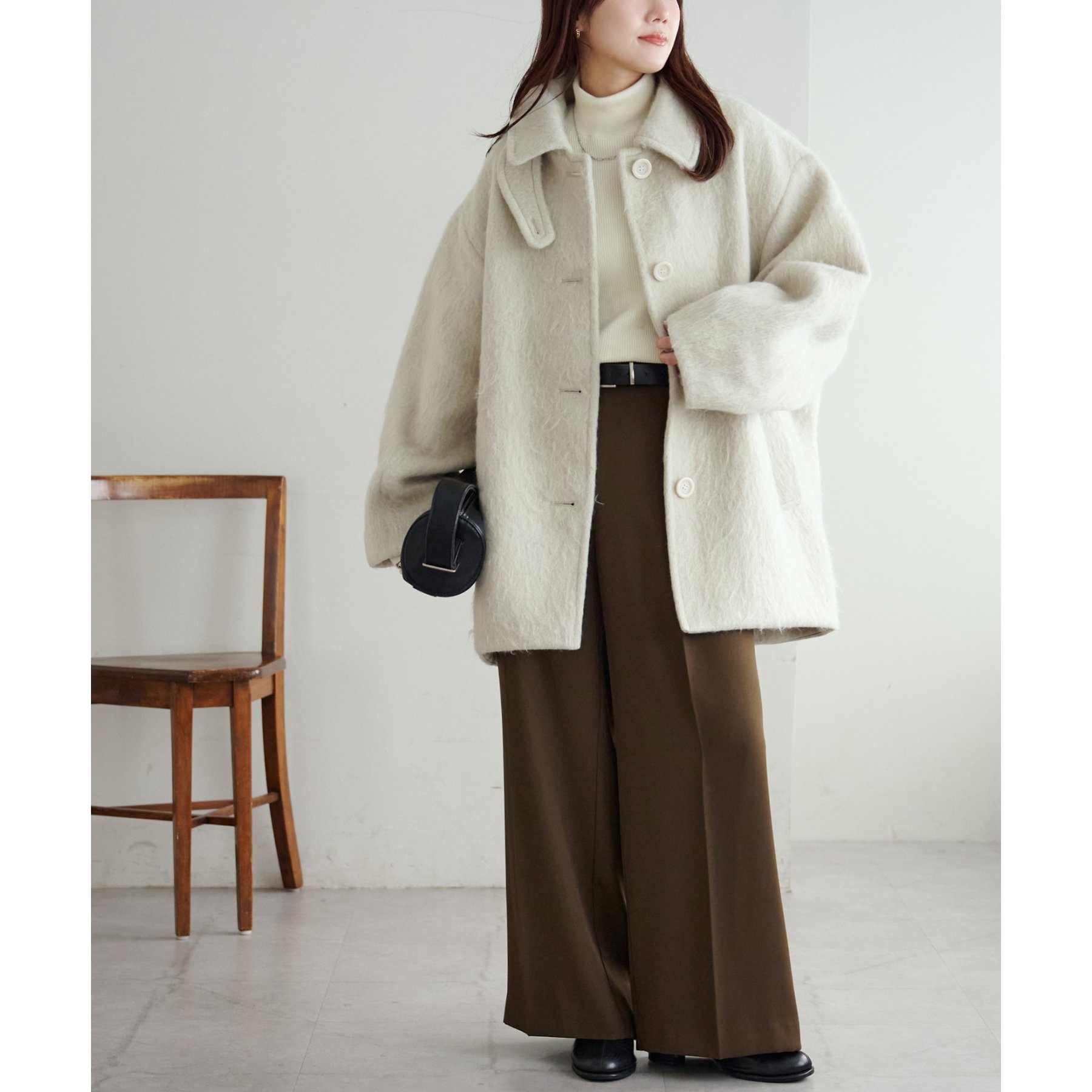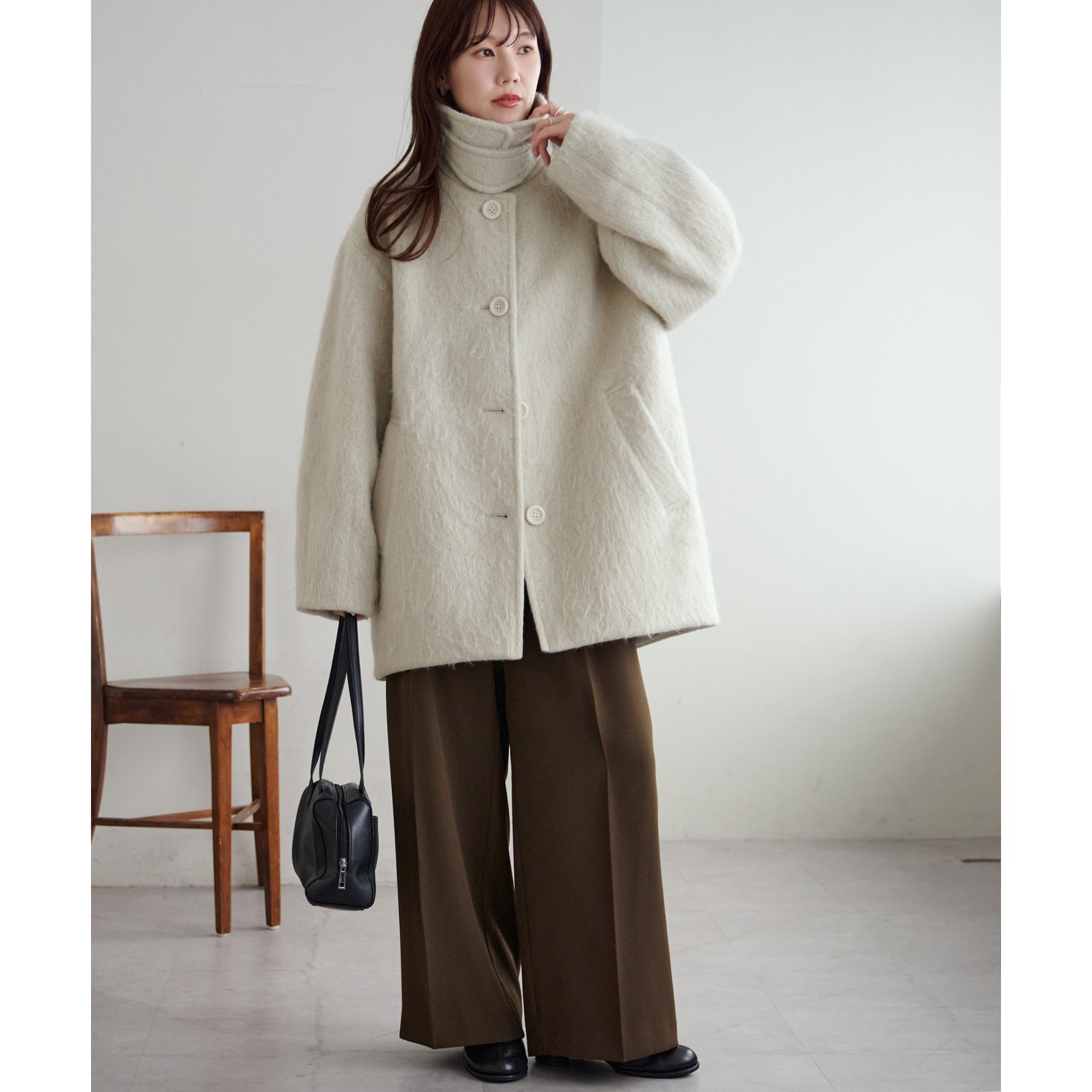 ふんわりとしたシャギー素材がシーズンムードを高めるミドルコート。