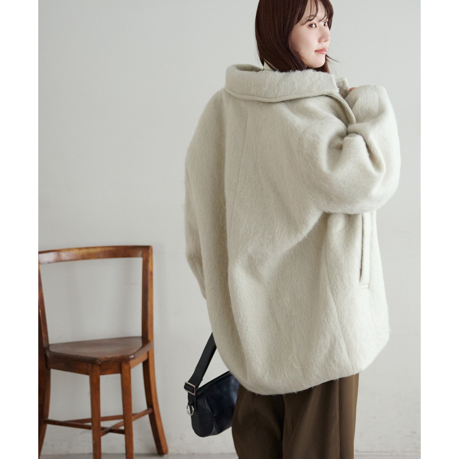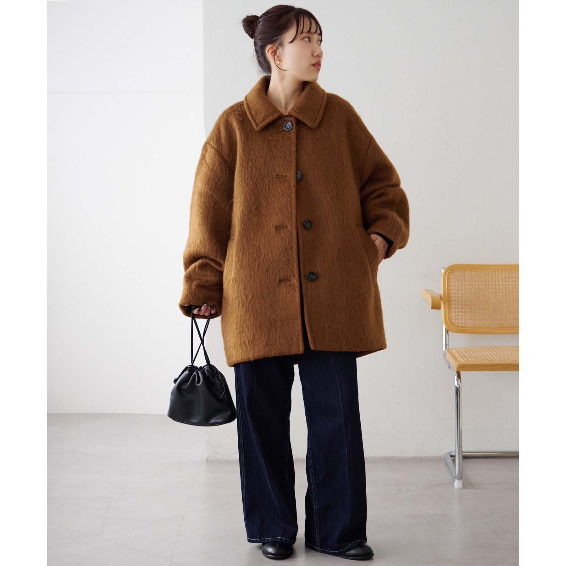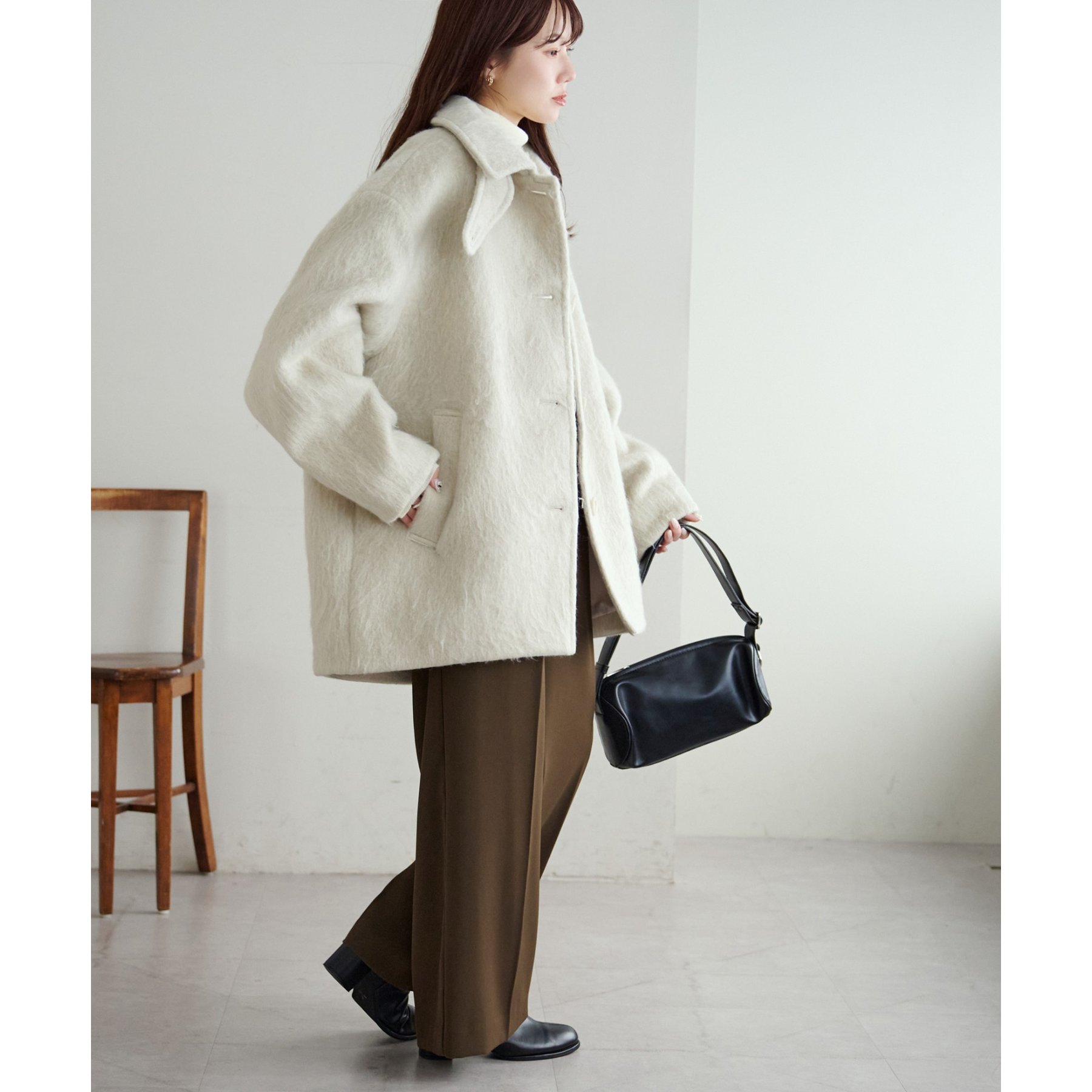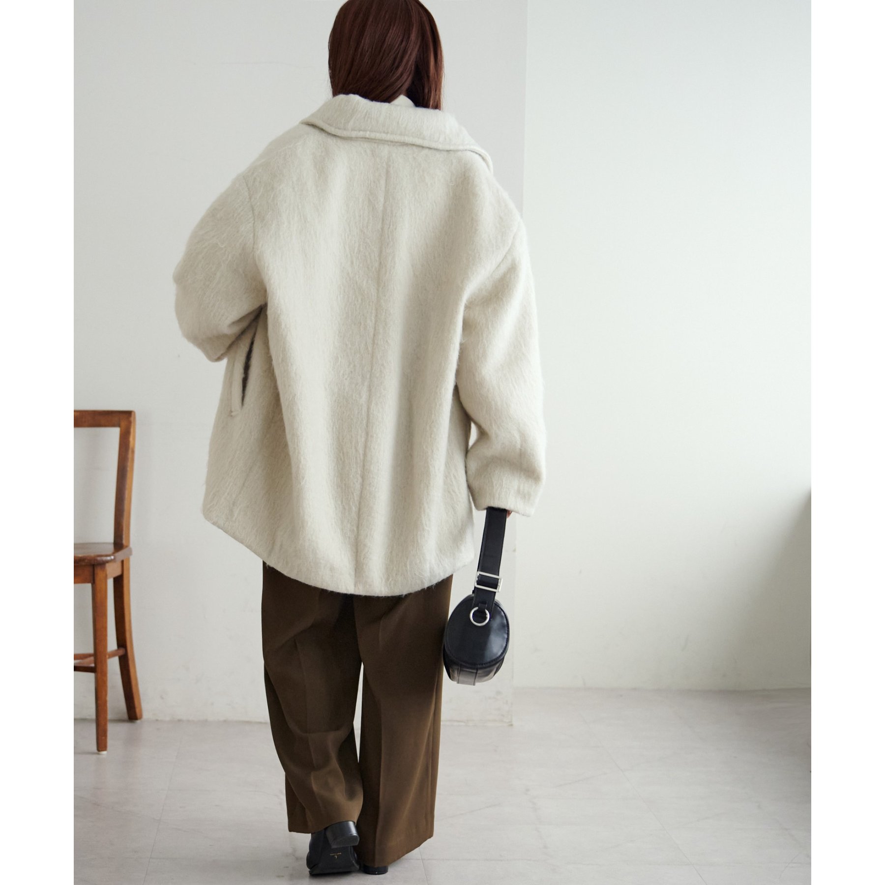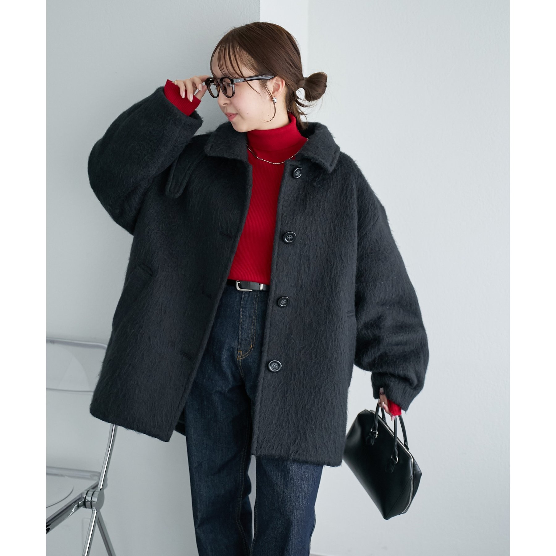 ふんわりとしたシャギー素材がシーズンムードを高めるミドルコート。