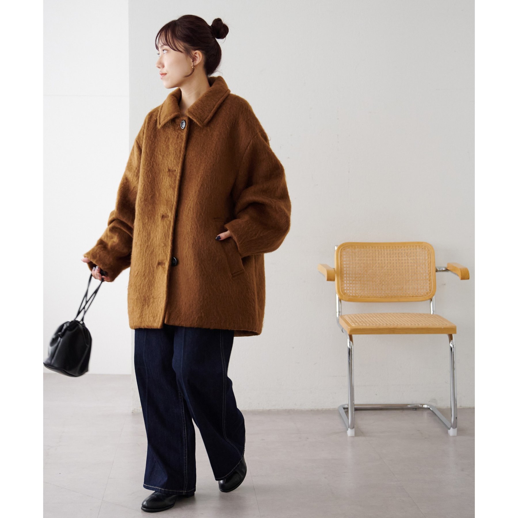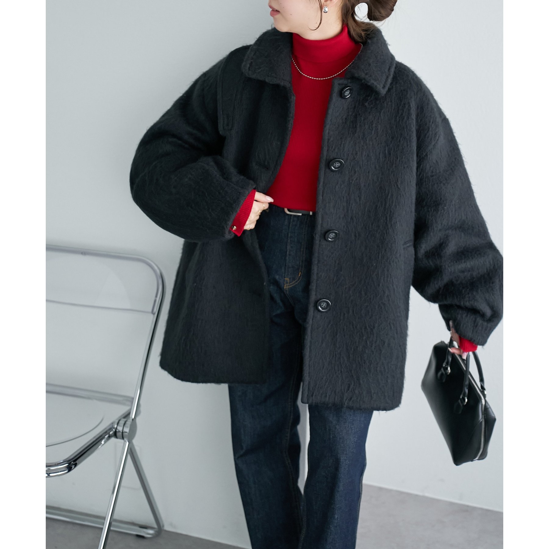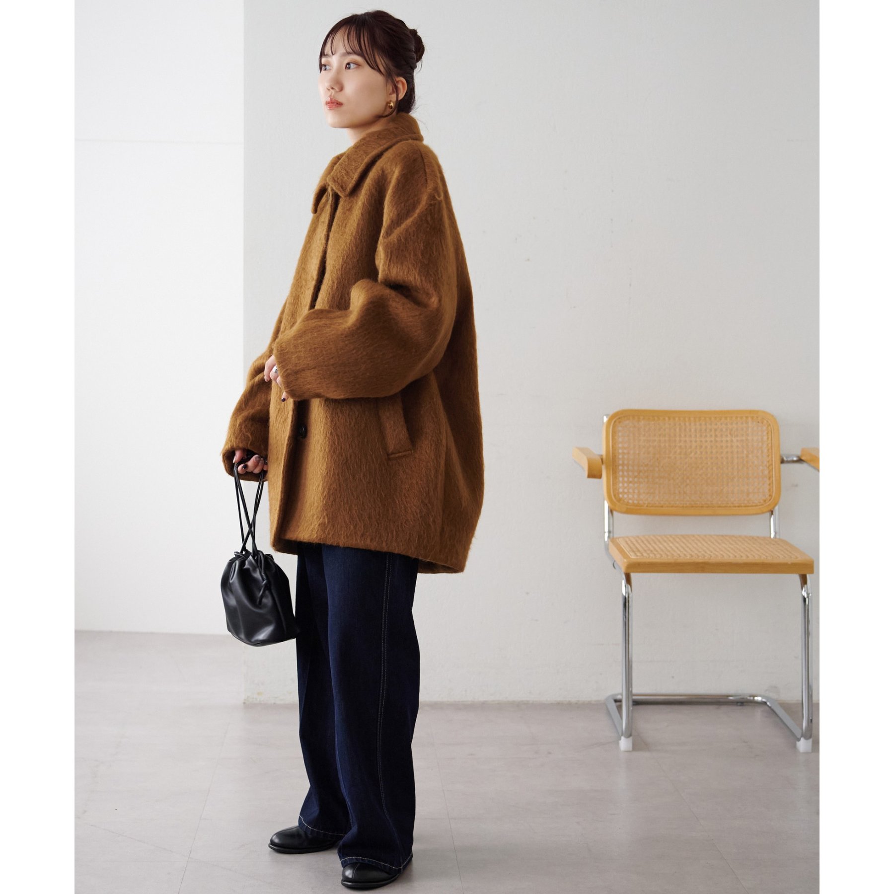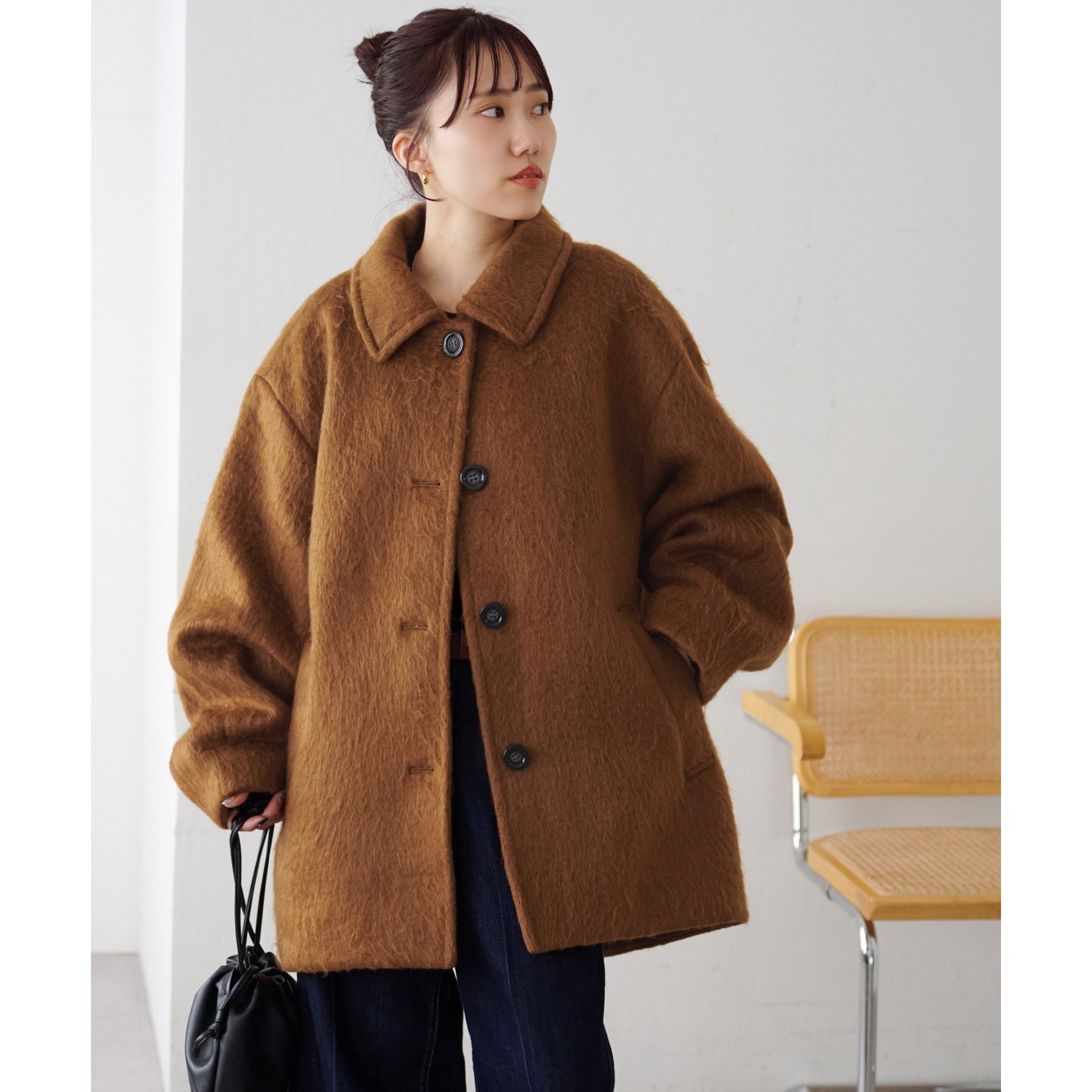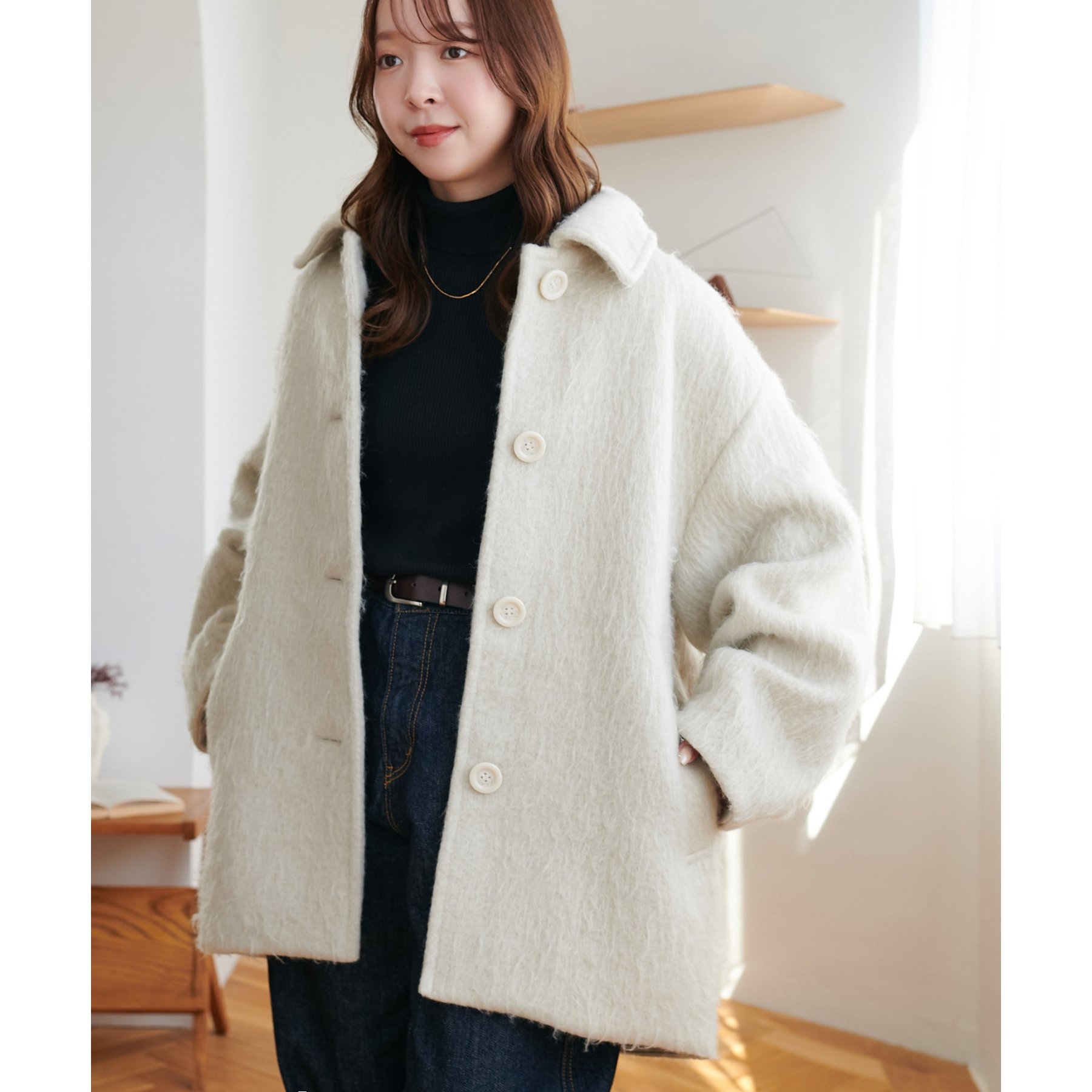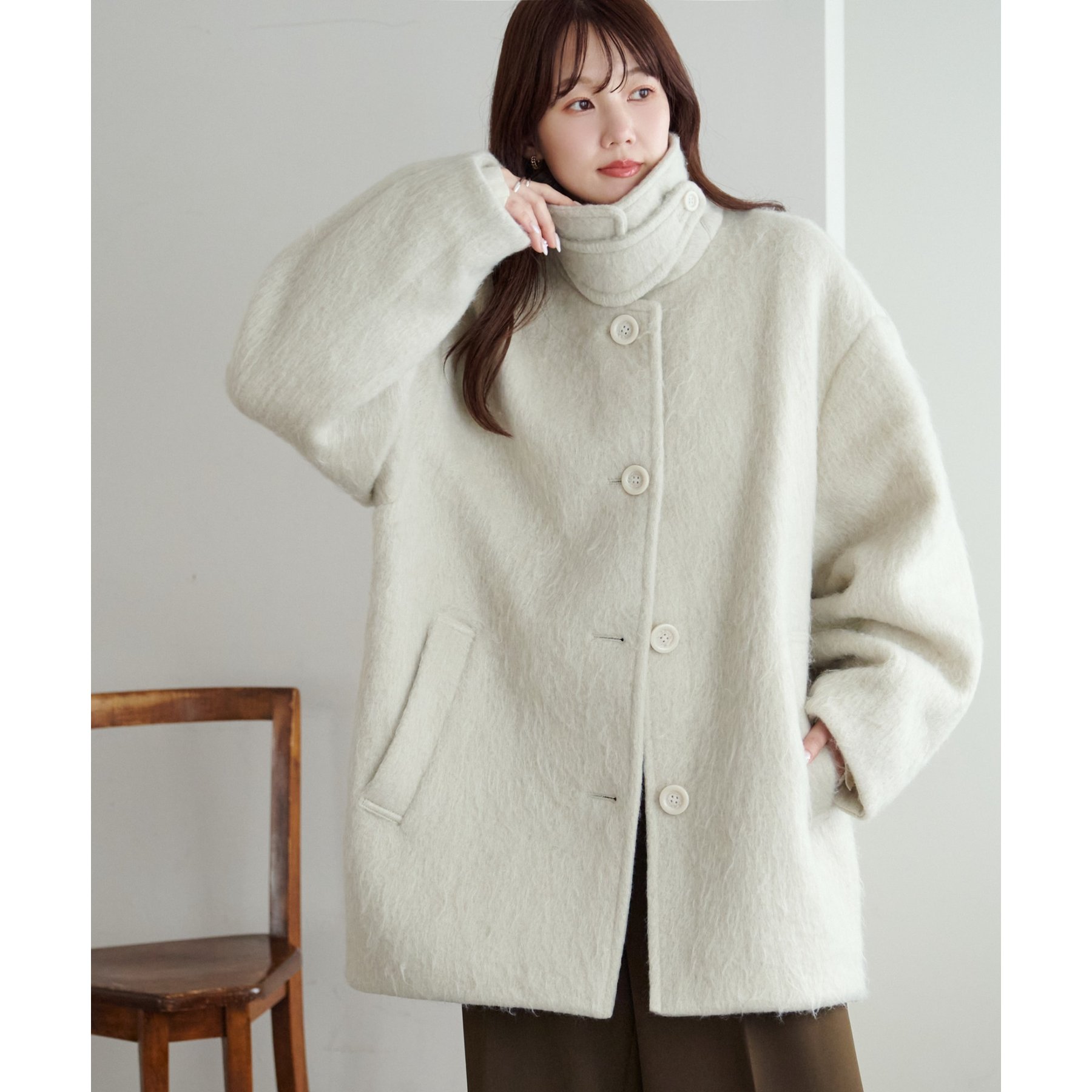 ふんわりとしたシャギー素材がシーズンムードを高めるミドルコート。