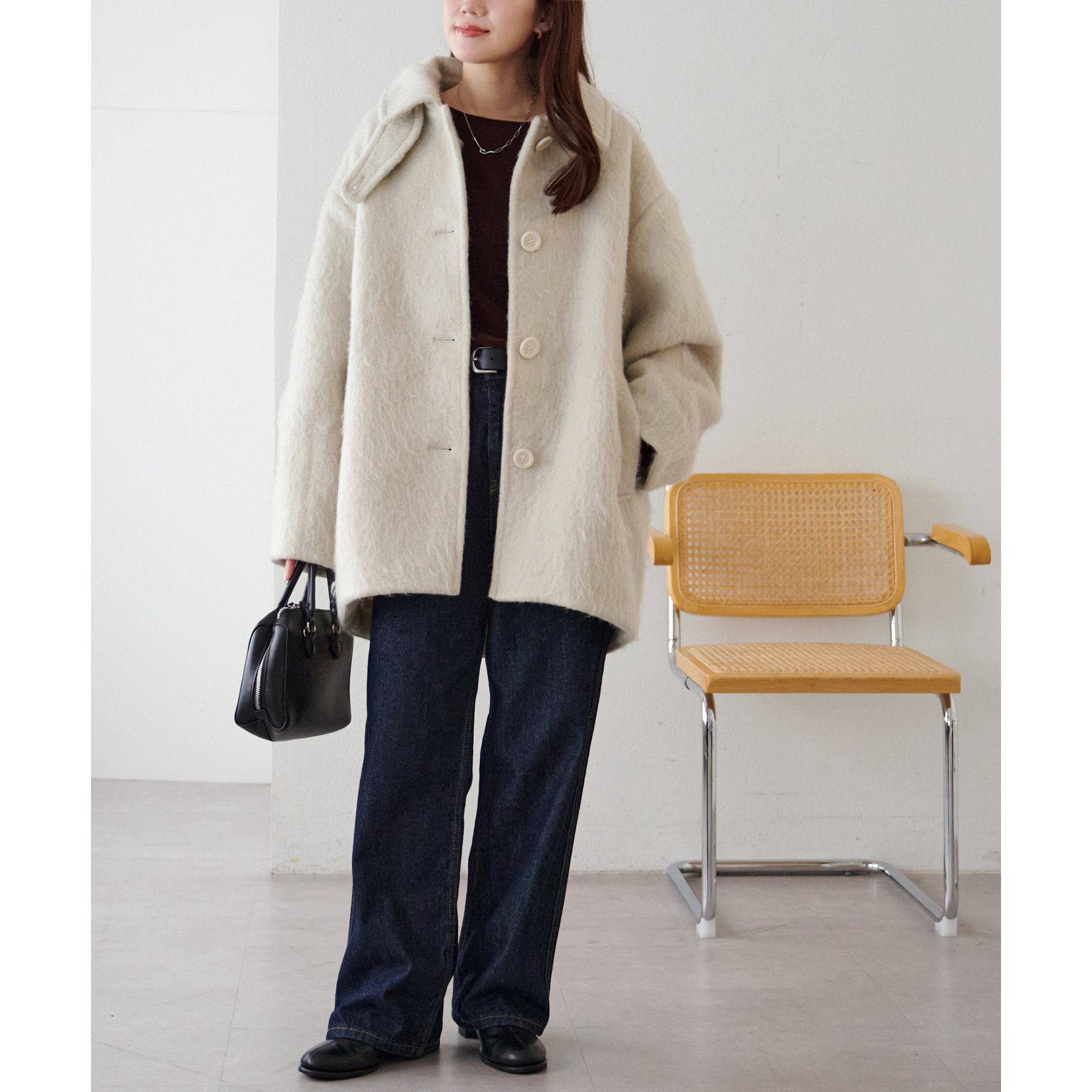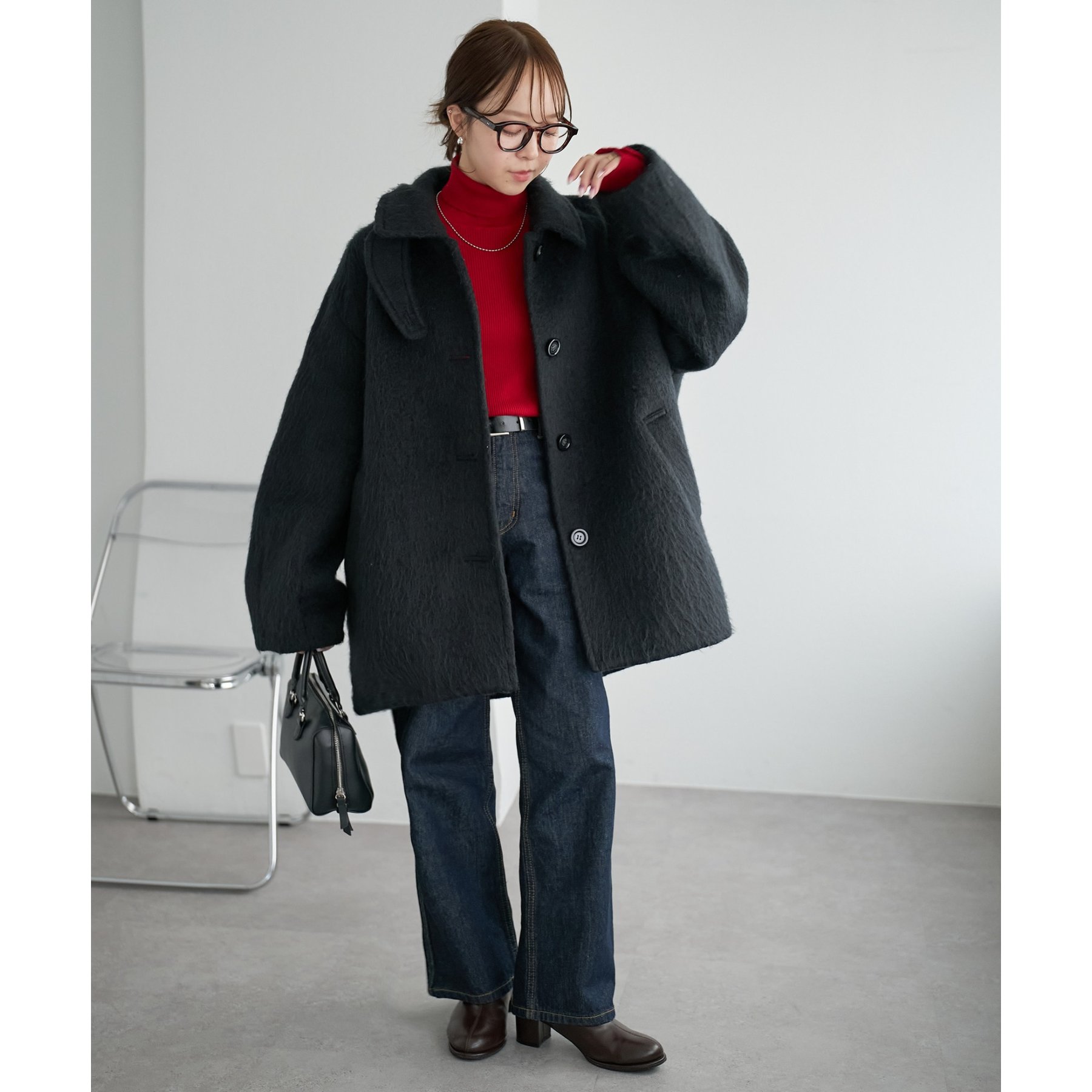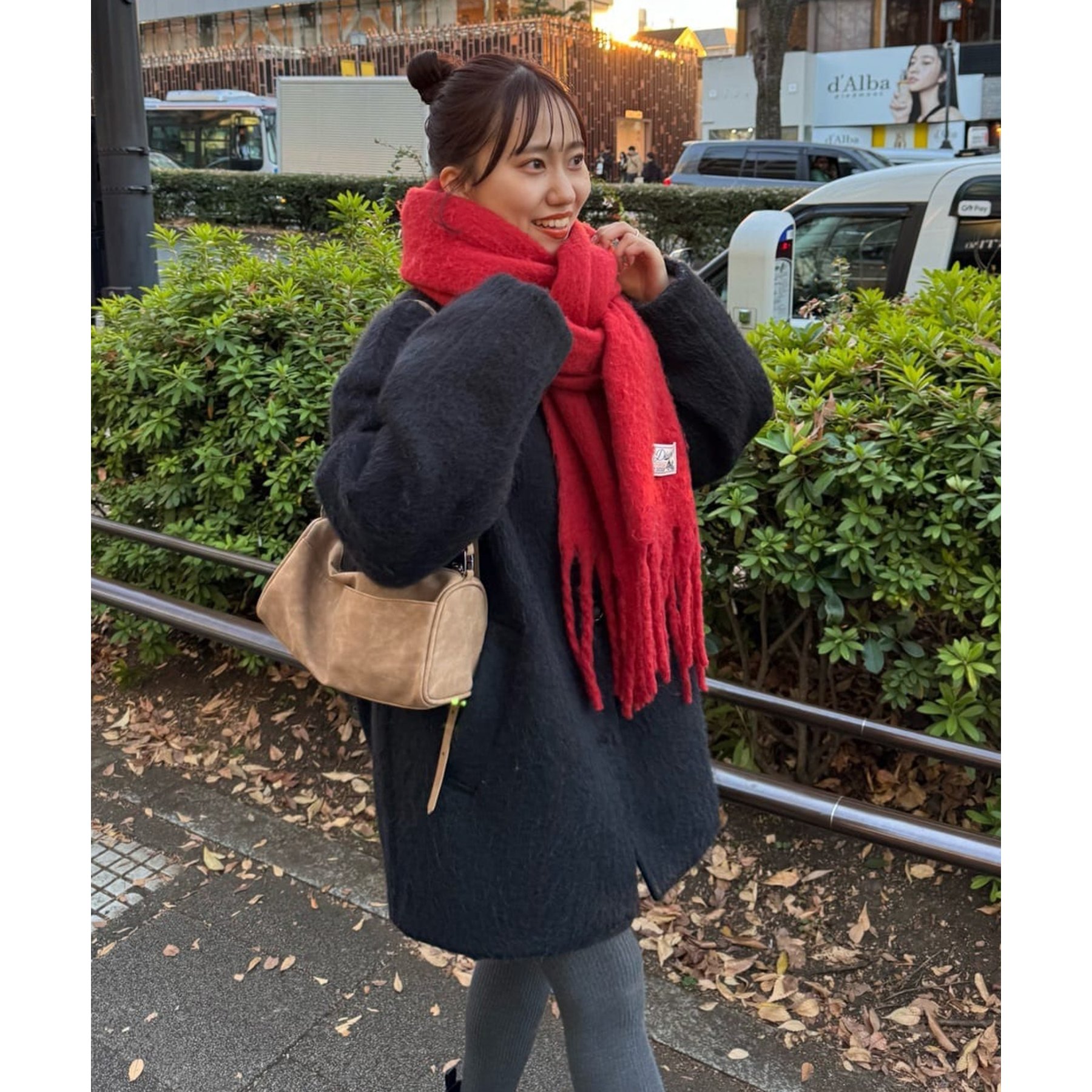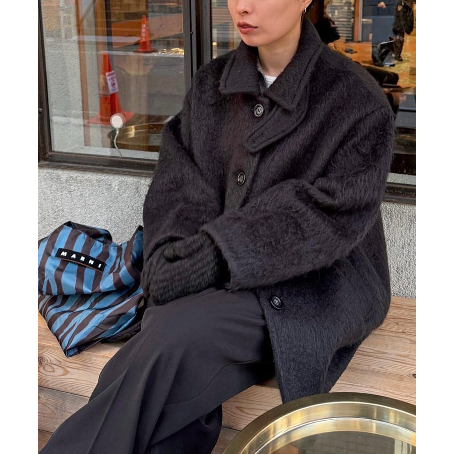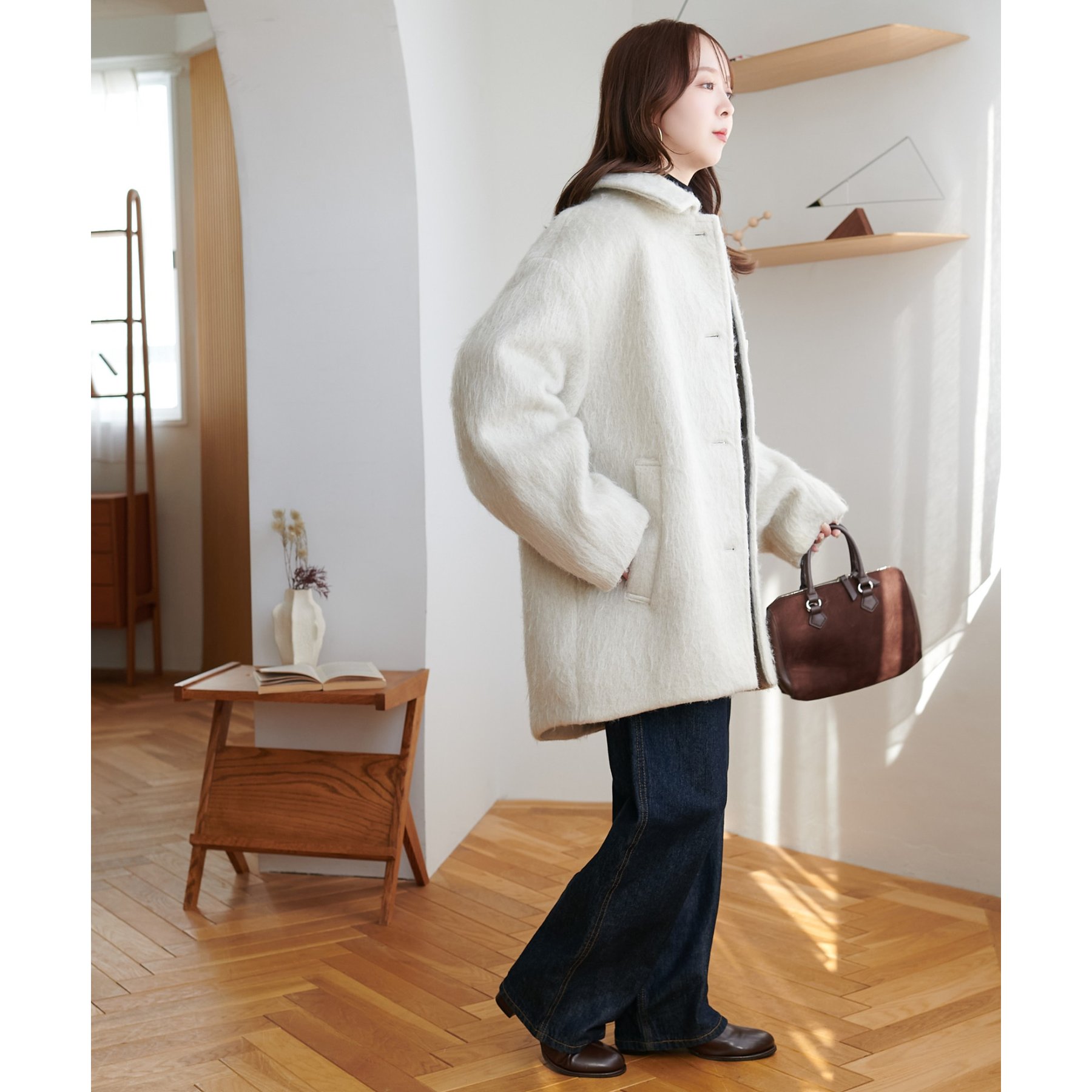 ふんわりとしたシャギー素材がシーズンムードを高めるミドルコート。