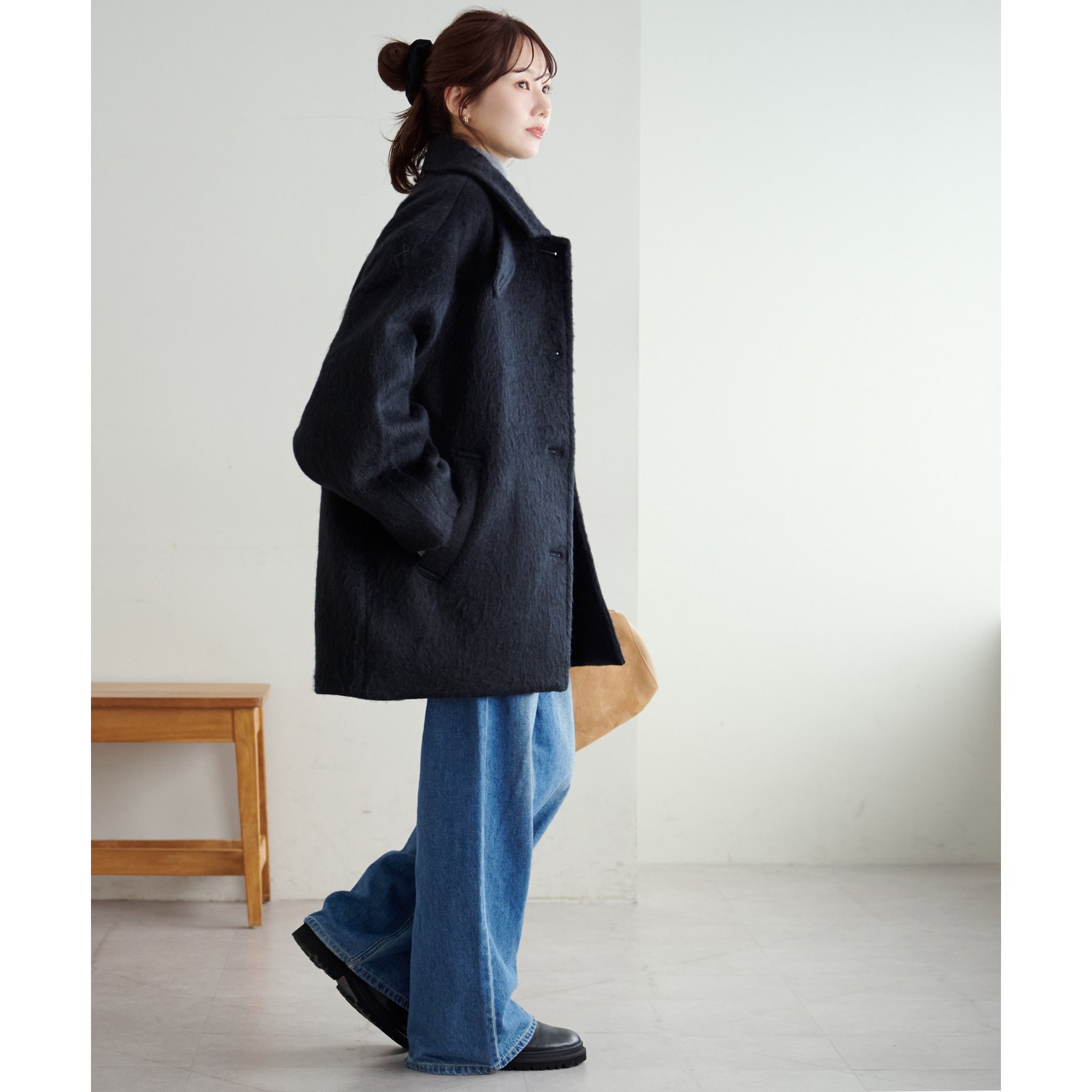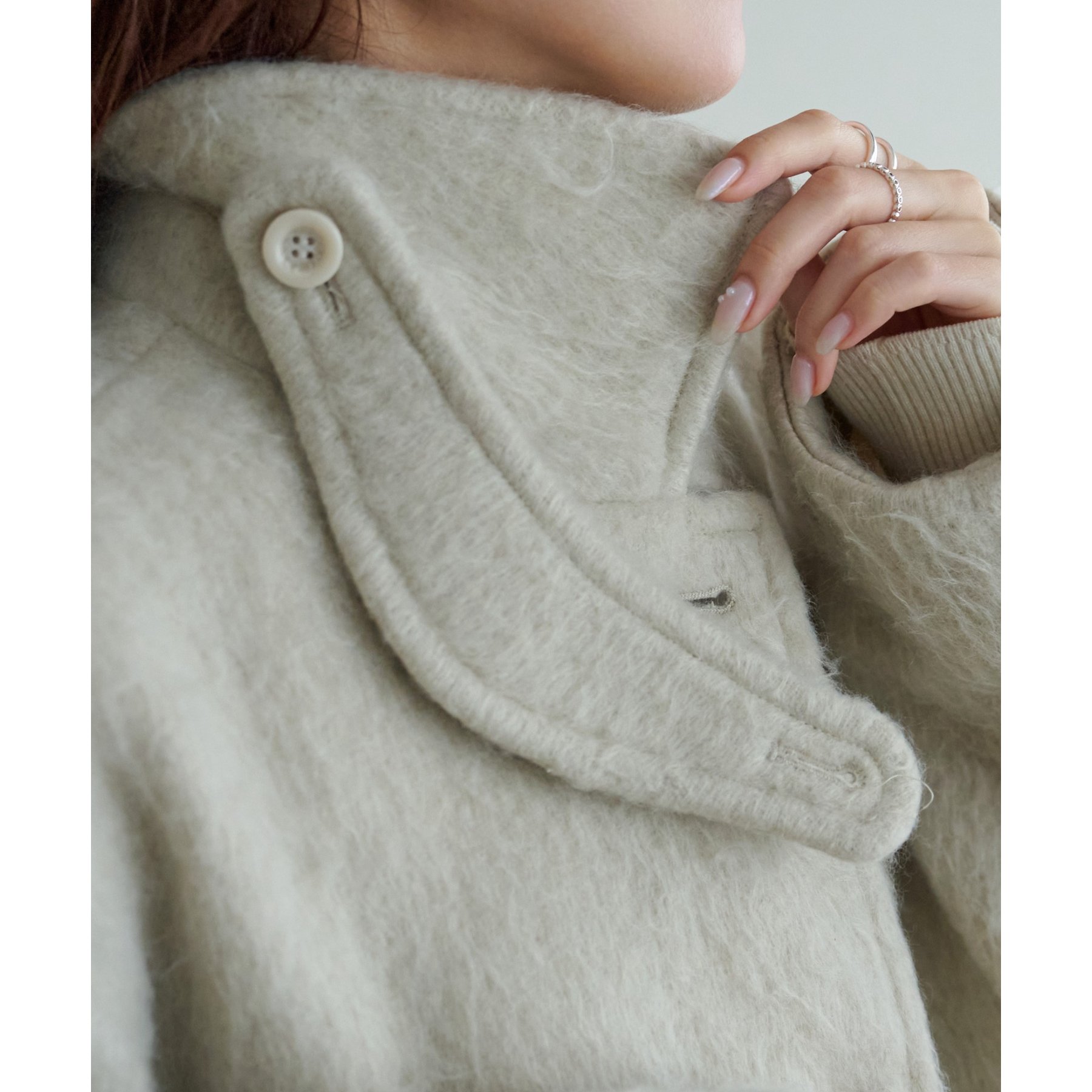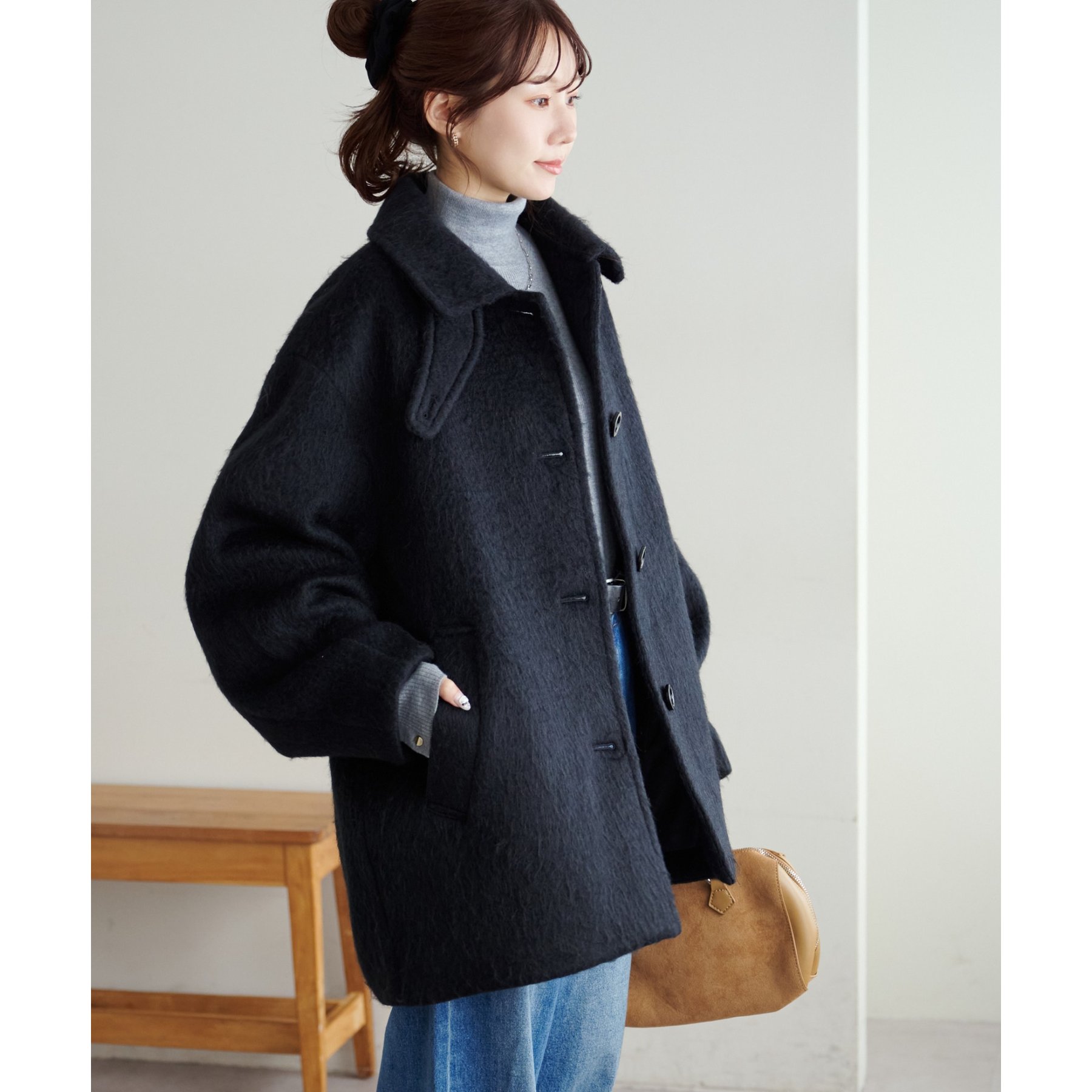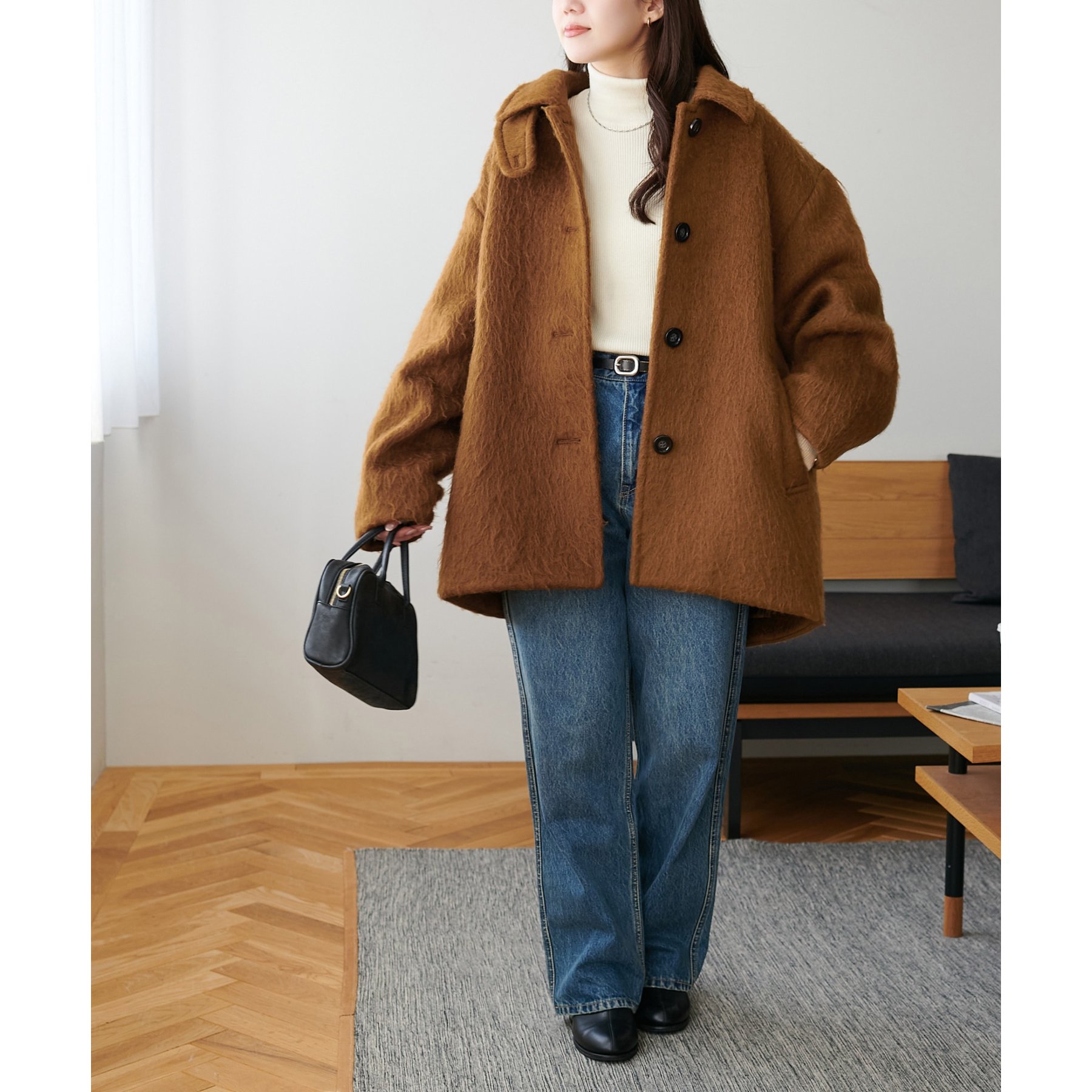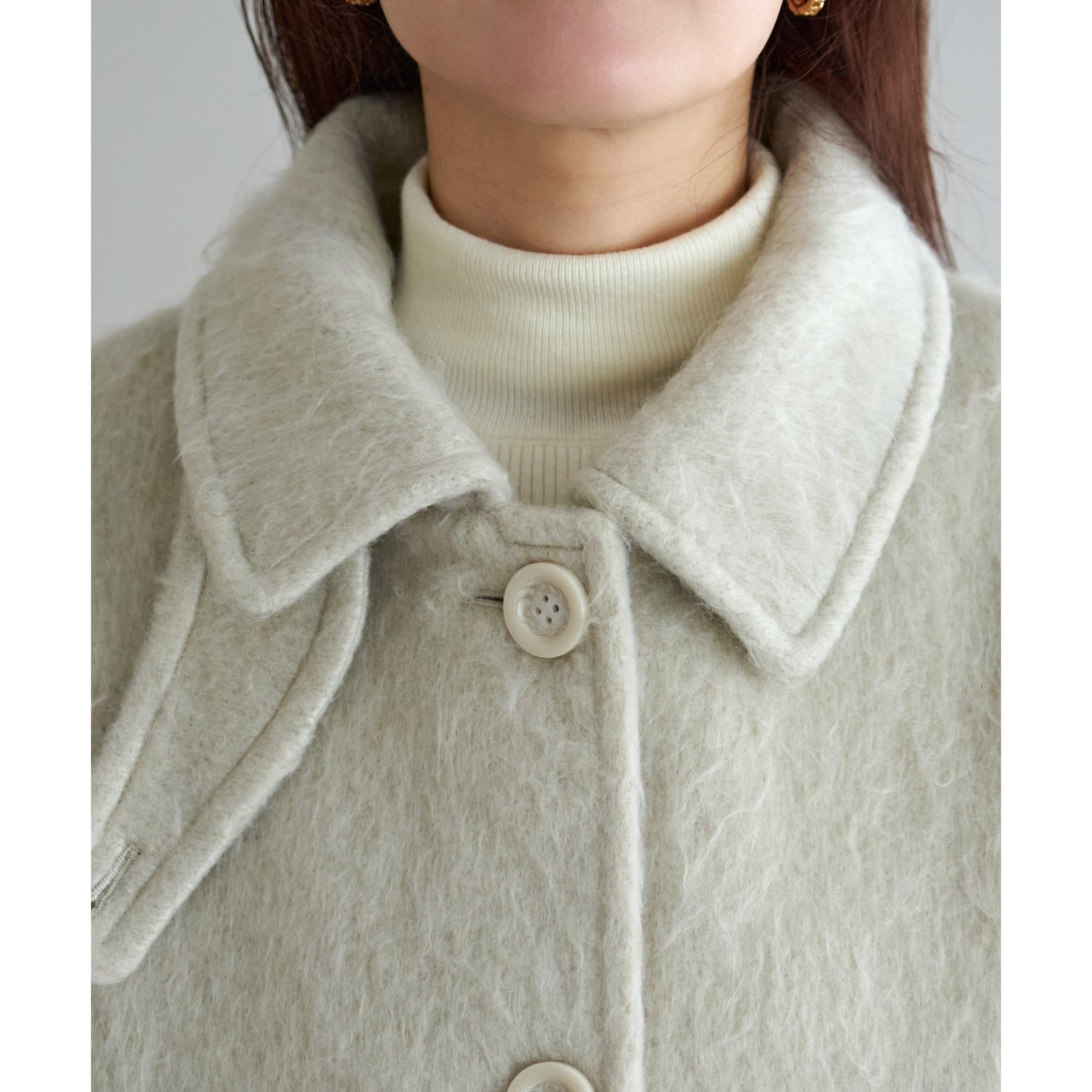 ふんわりとしたシャギー素材がシーズンムードを高めるミドルコート。