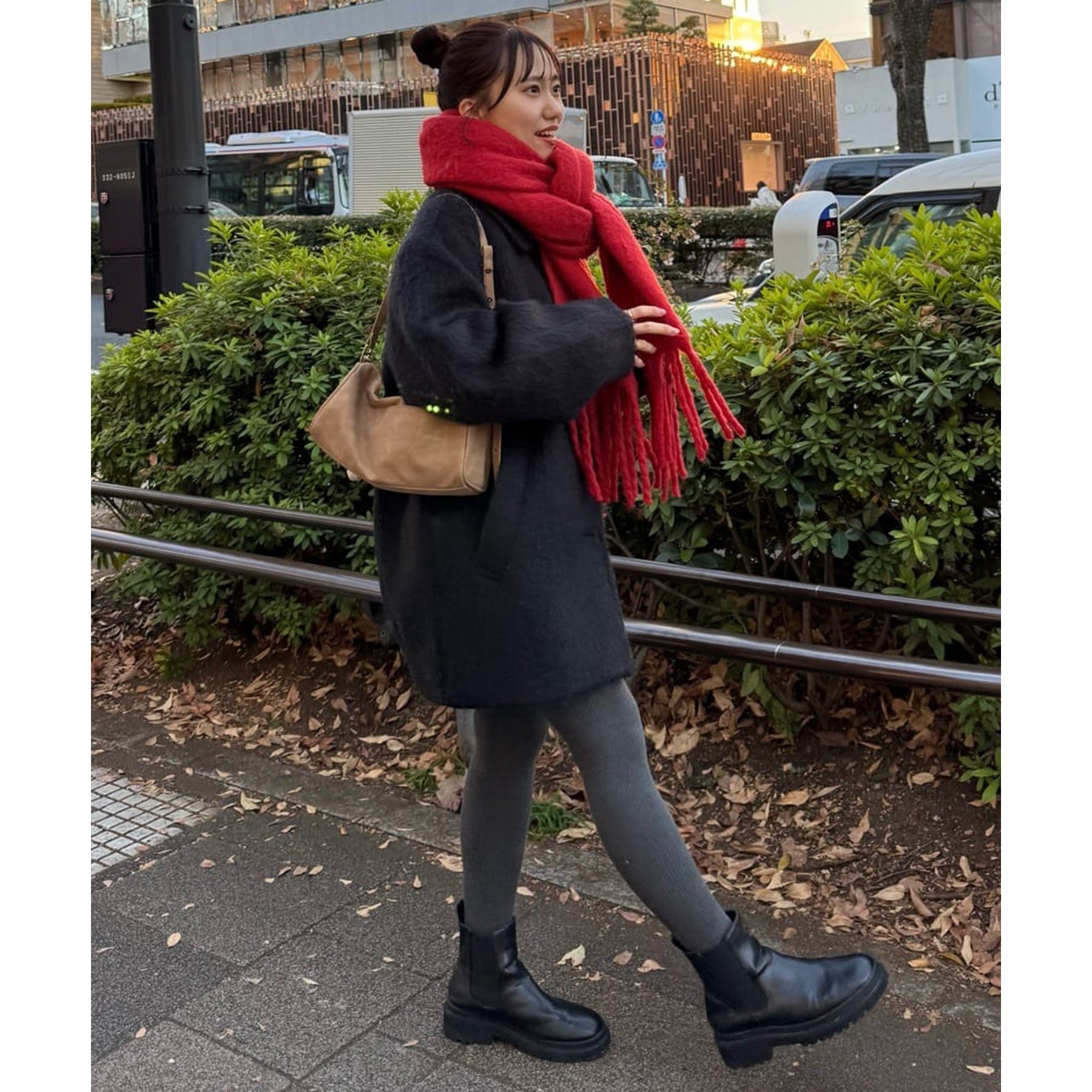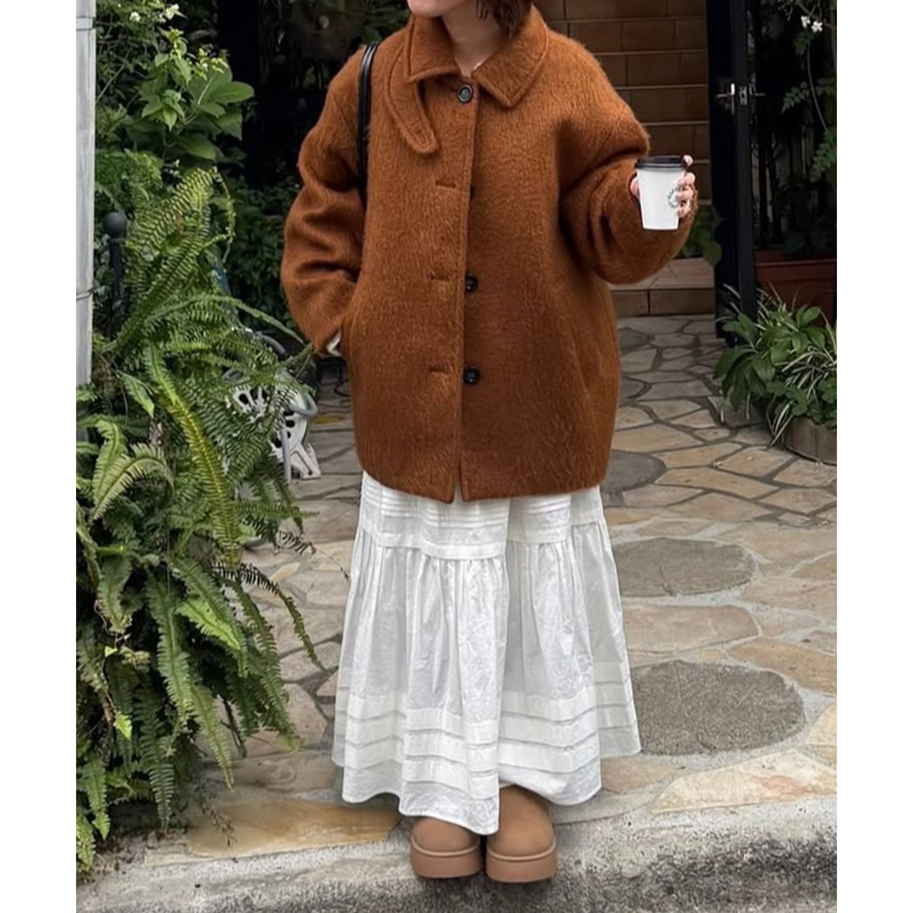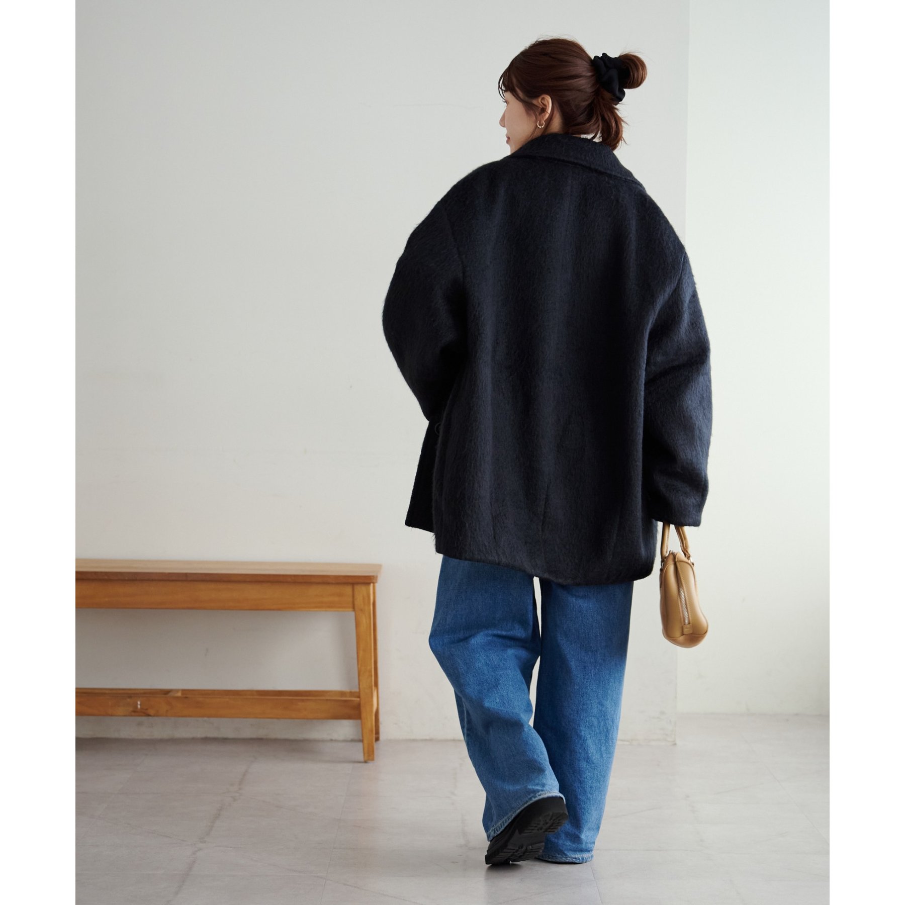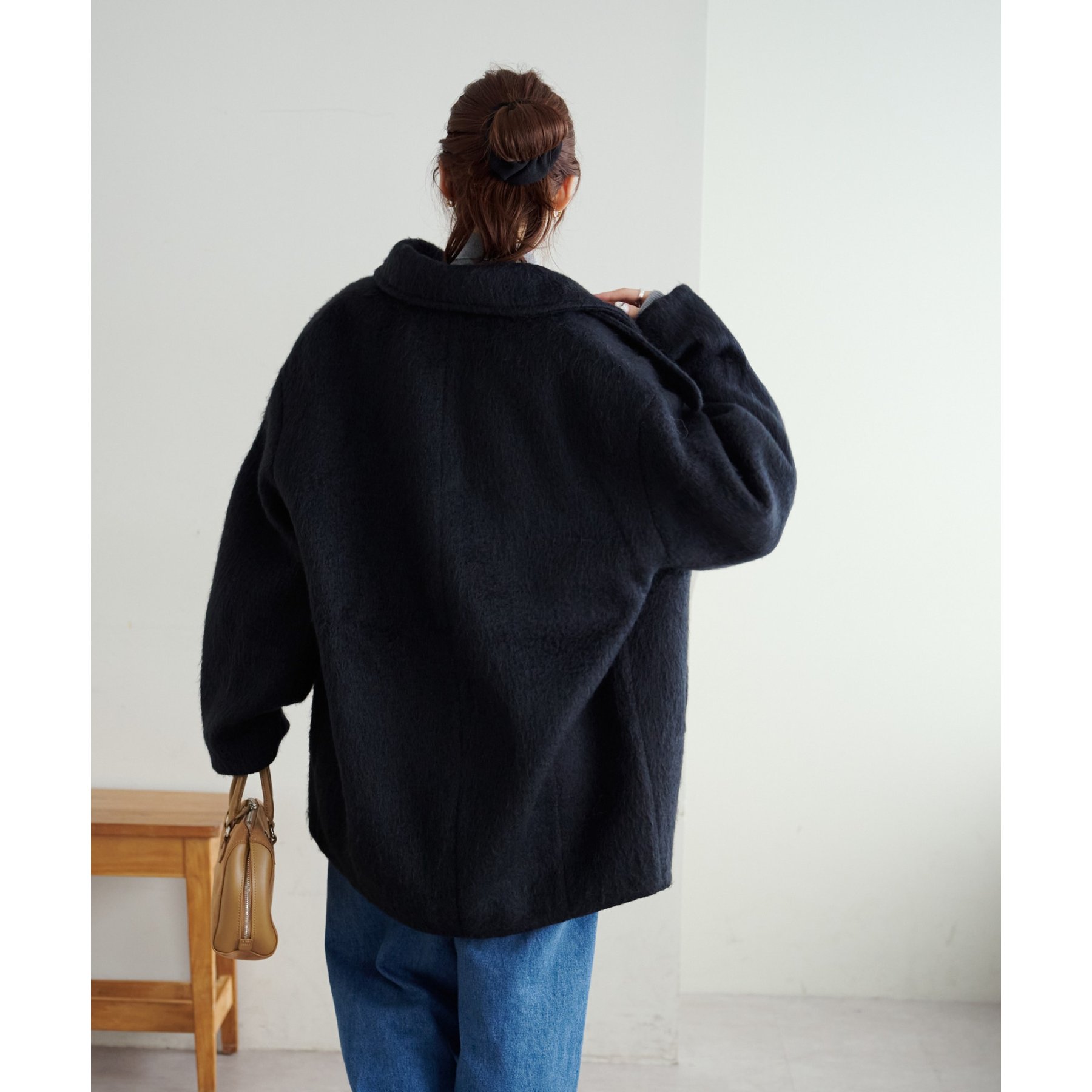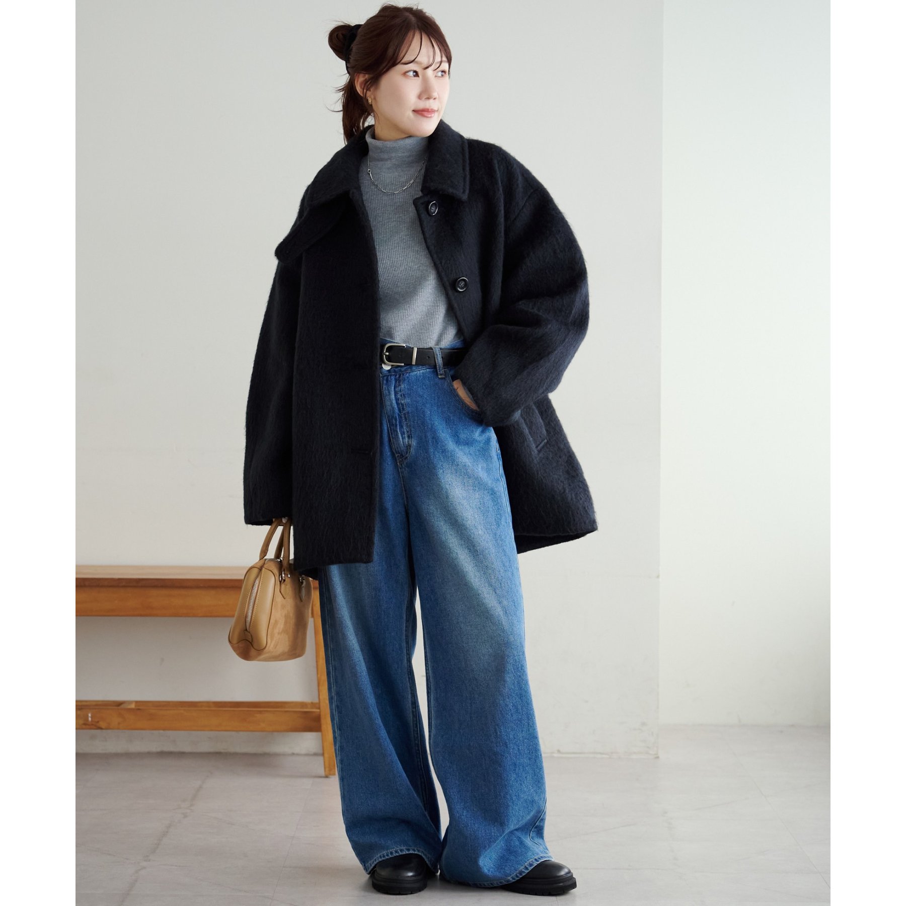 ふんわりとしたシャギー素材がシーズンムードを高めるミドルコート。