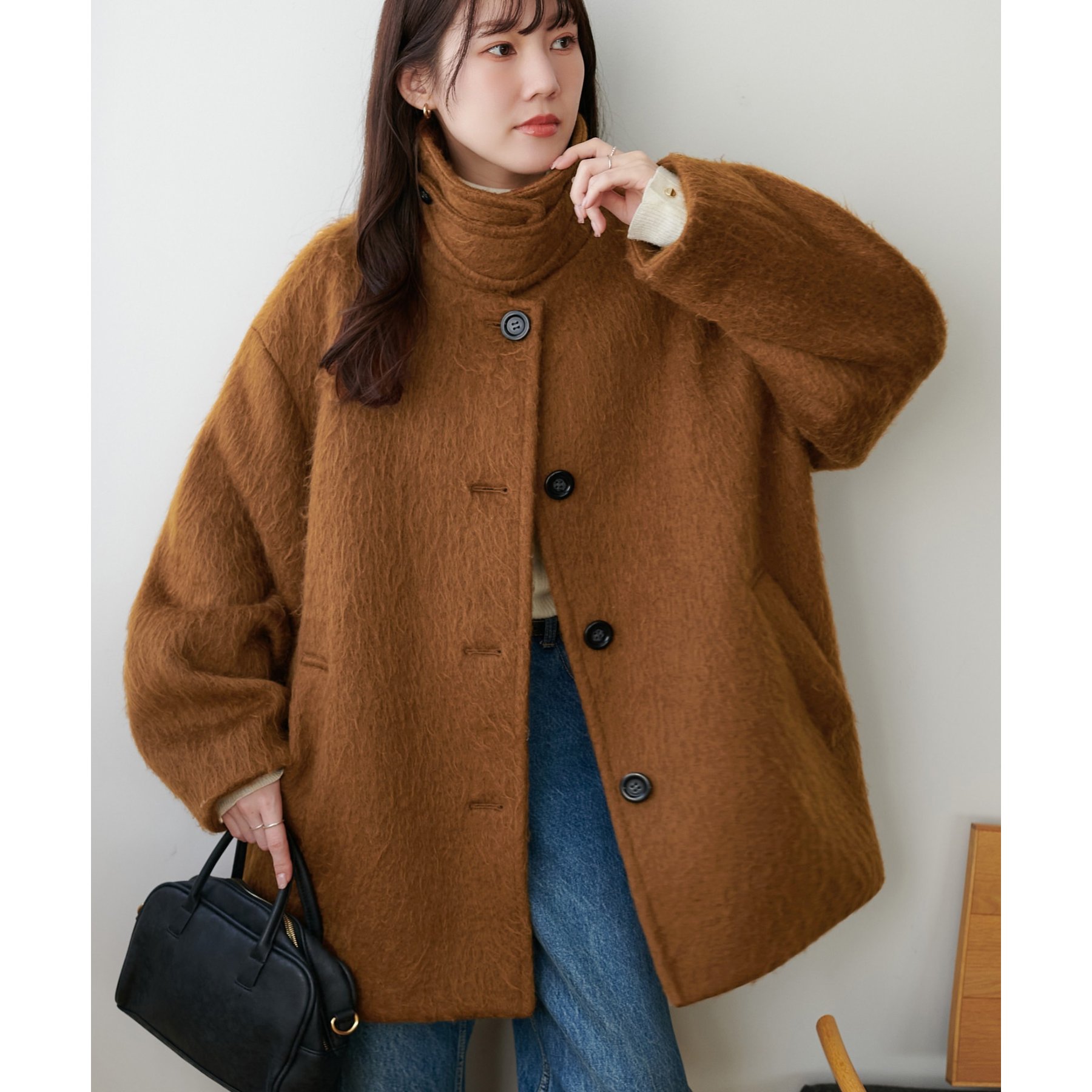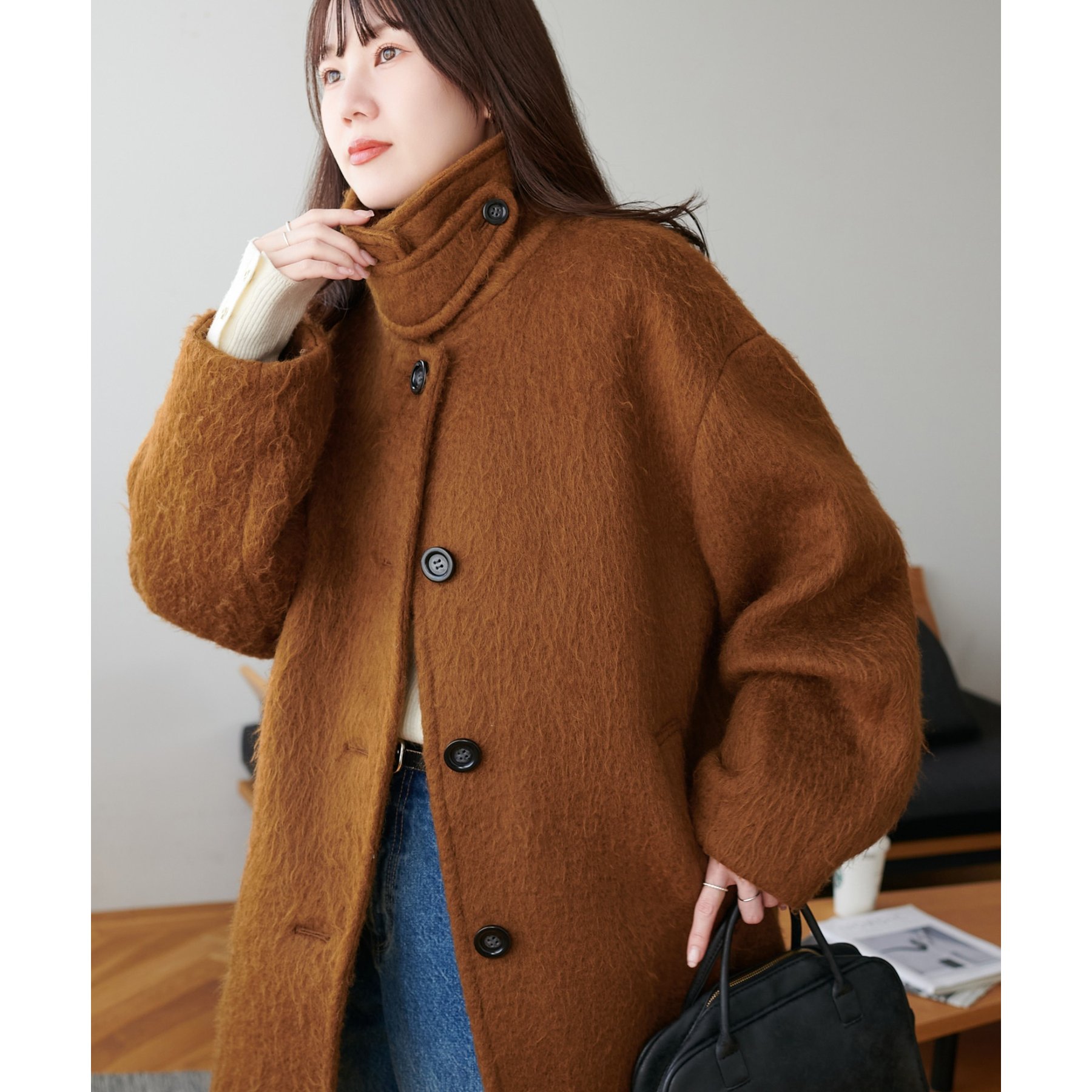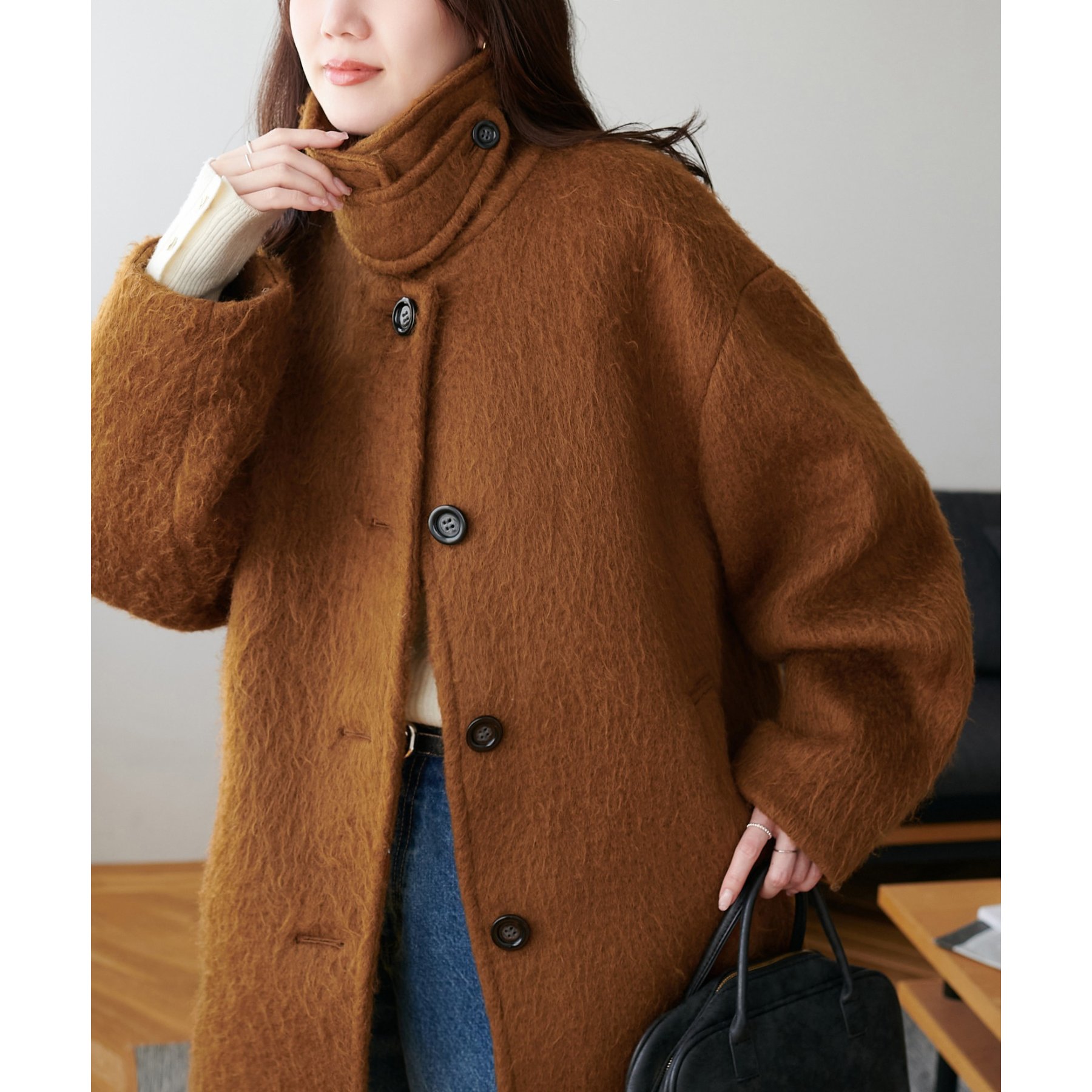 【着こなしやすい】ステンカラーシャギーミドルコート