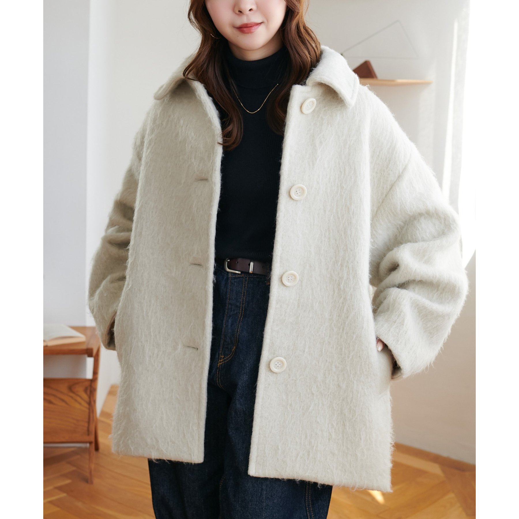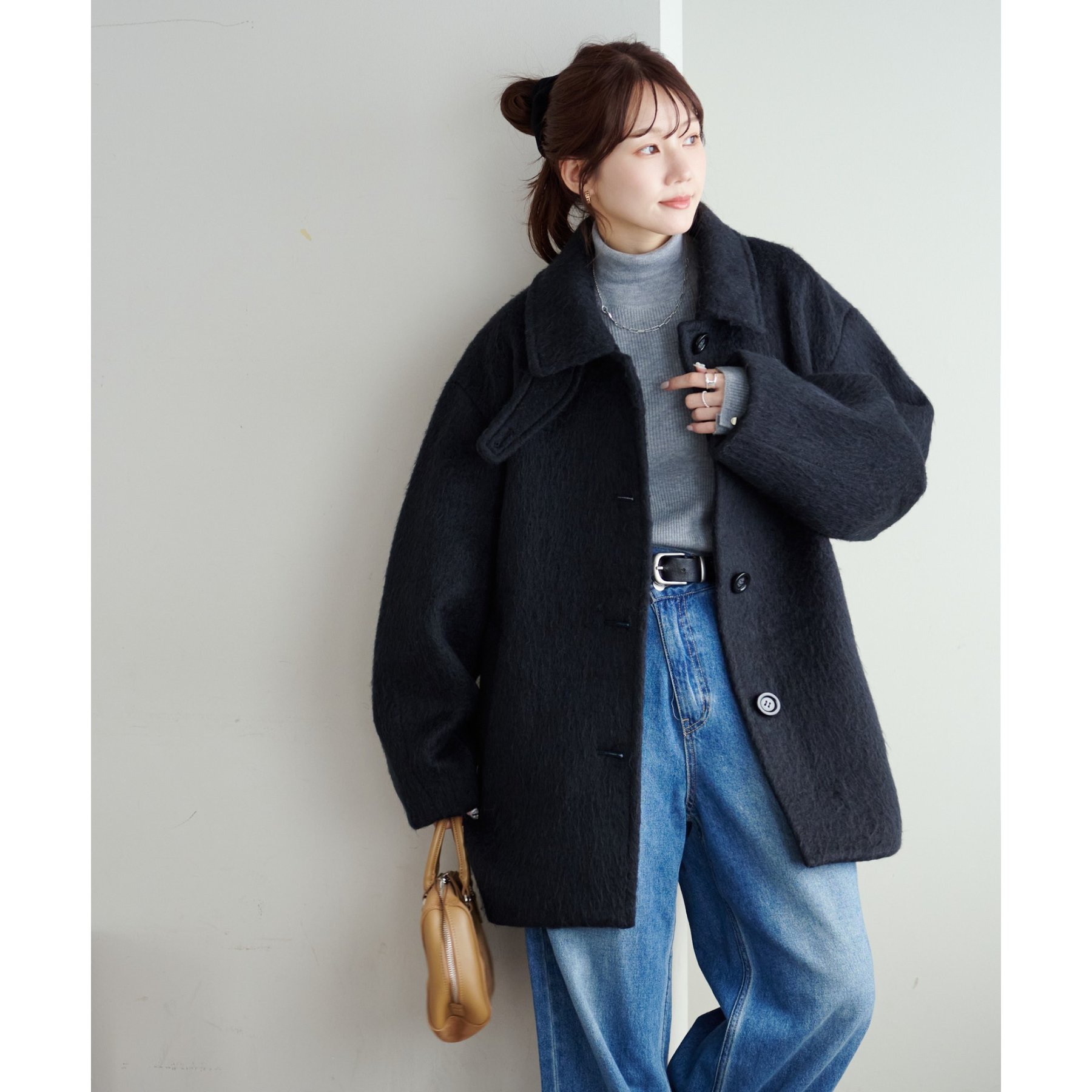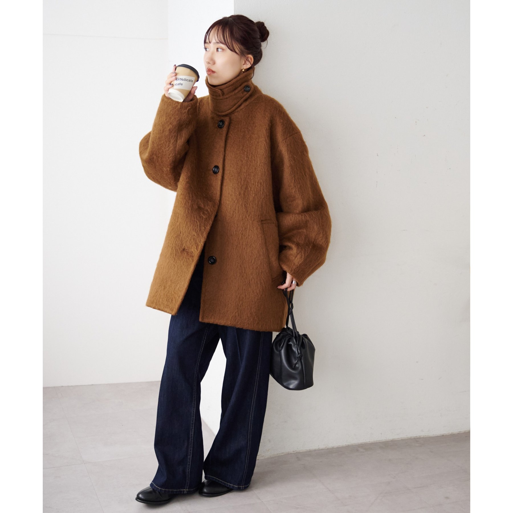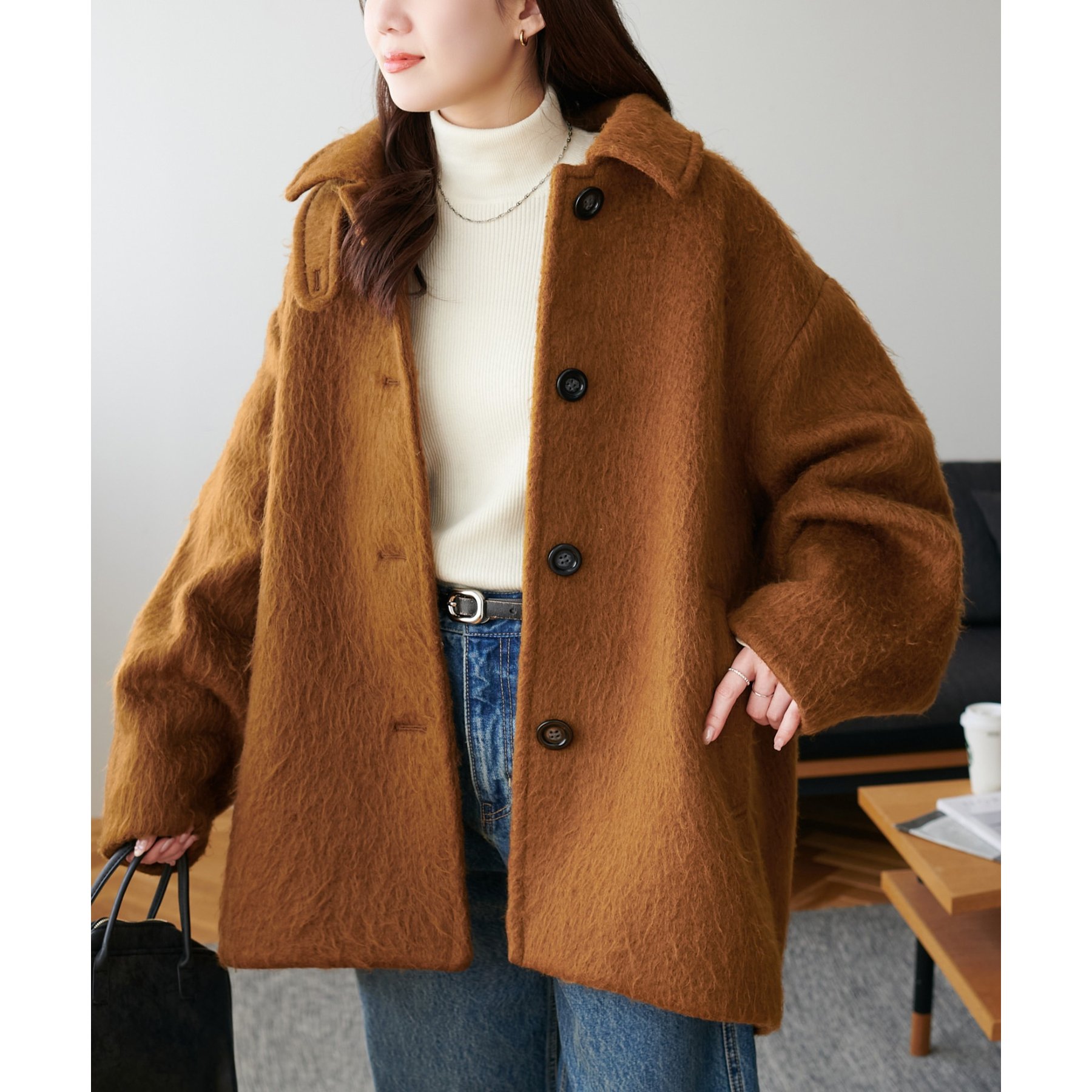 【着こなしやすい】ステンカラーシャギーミドルコート