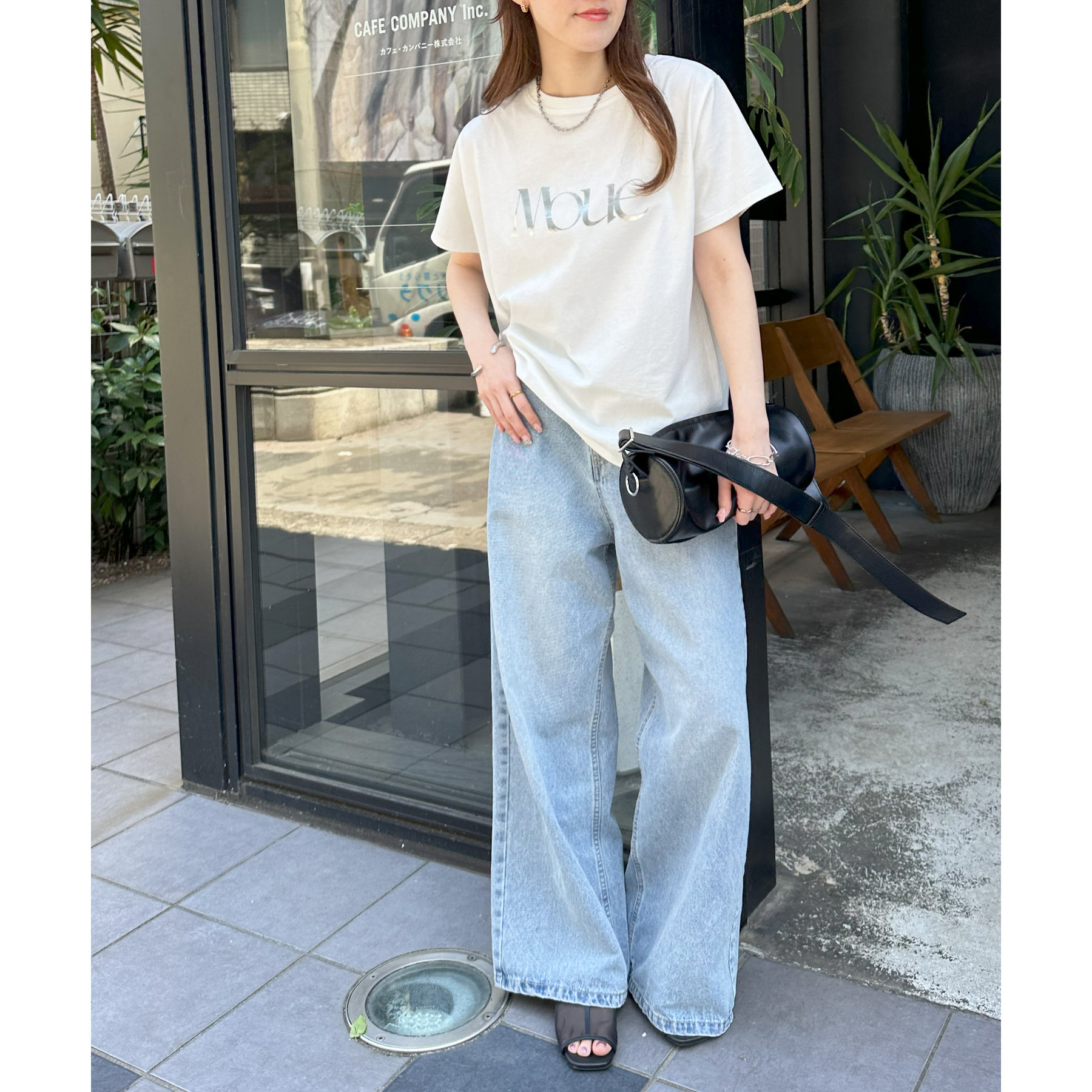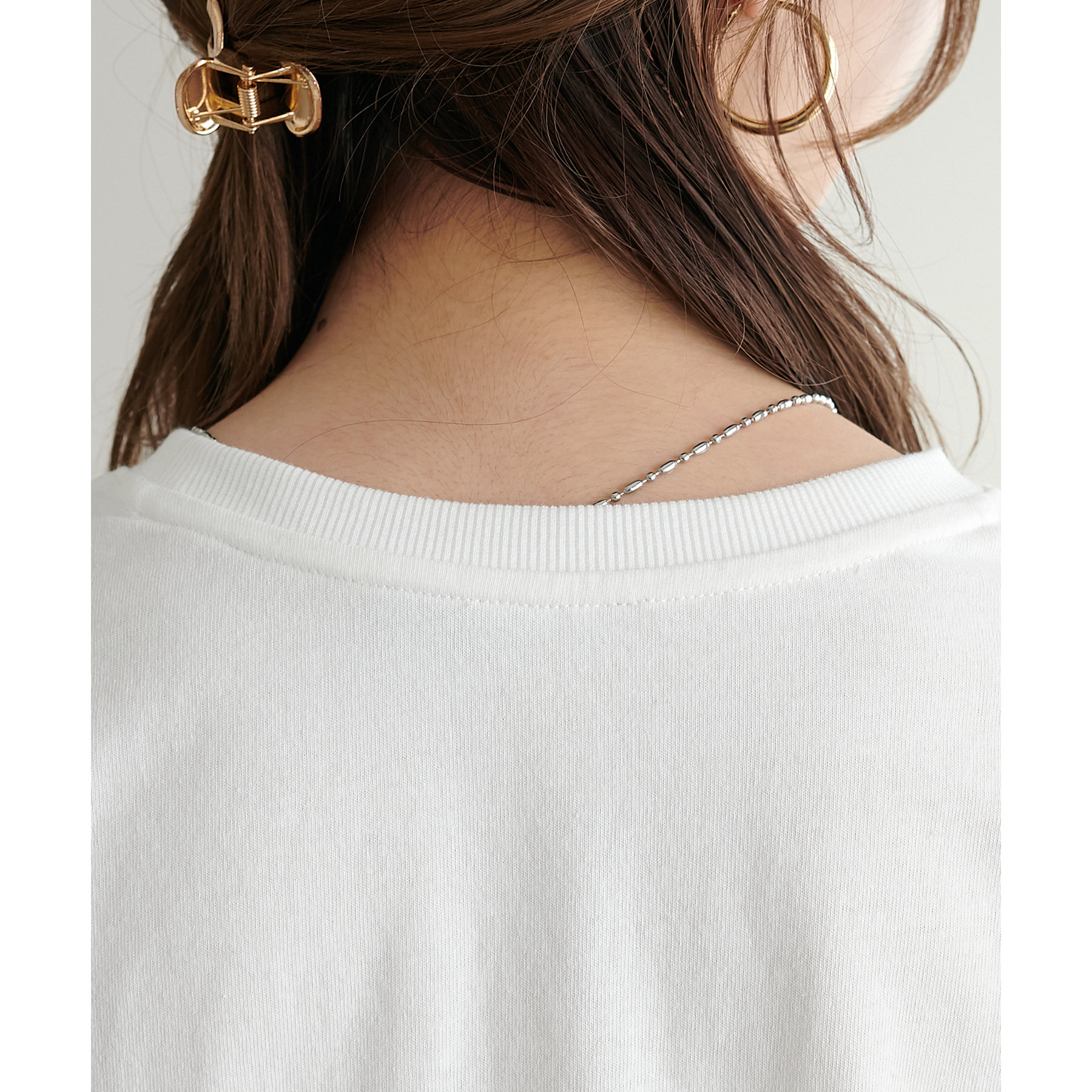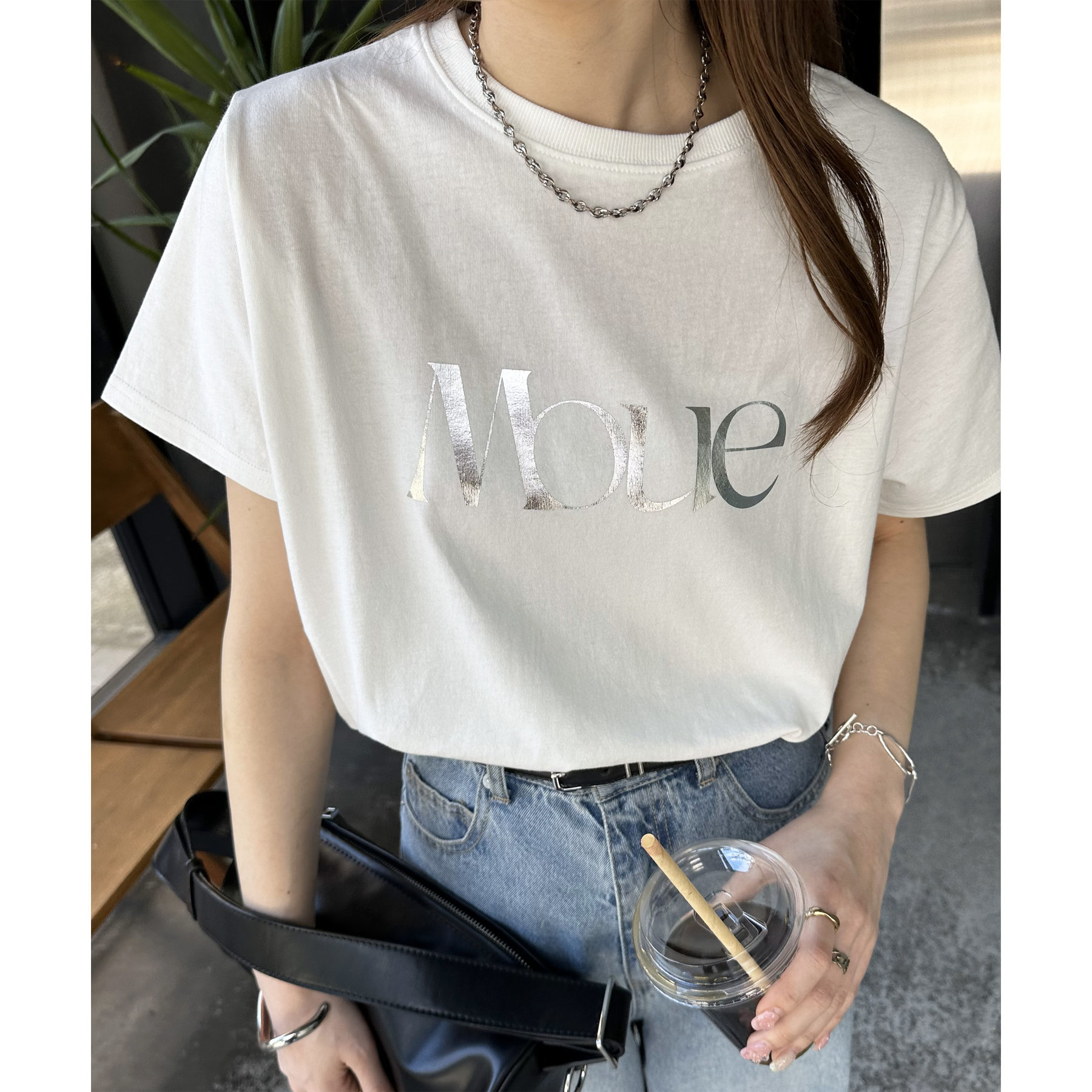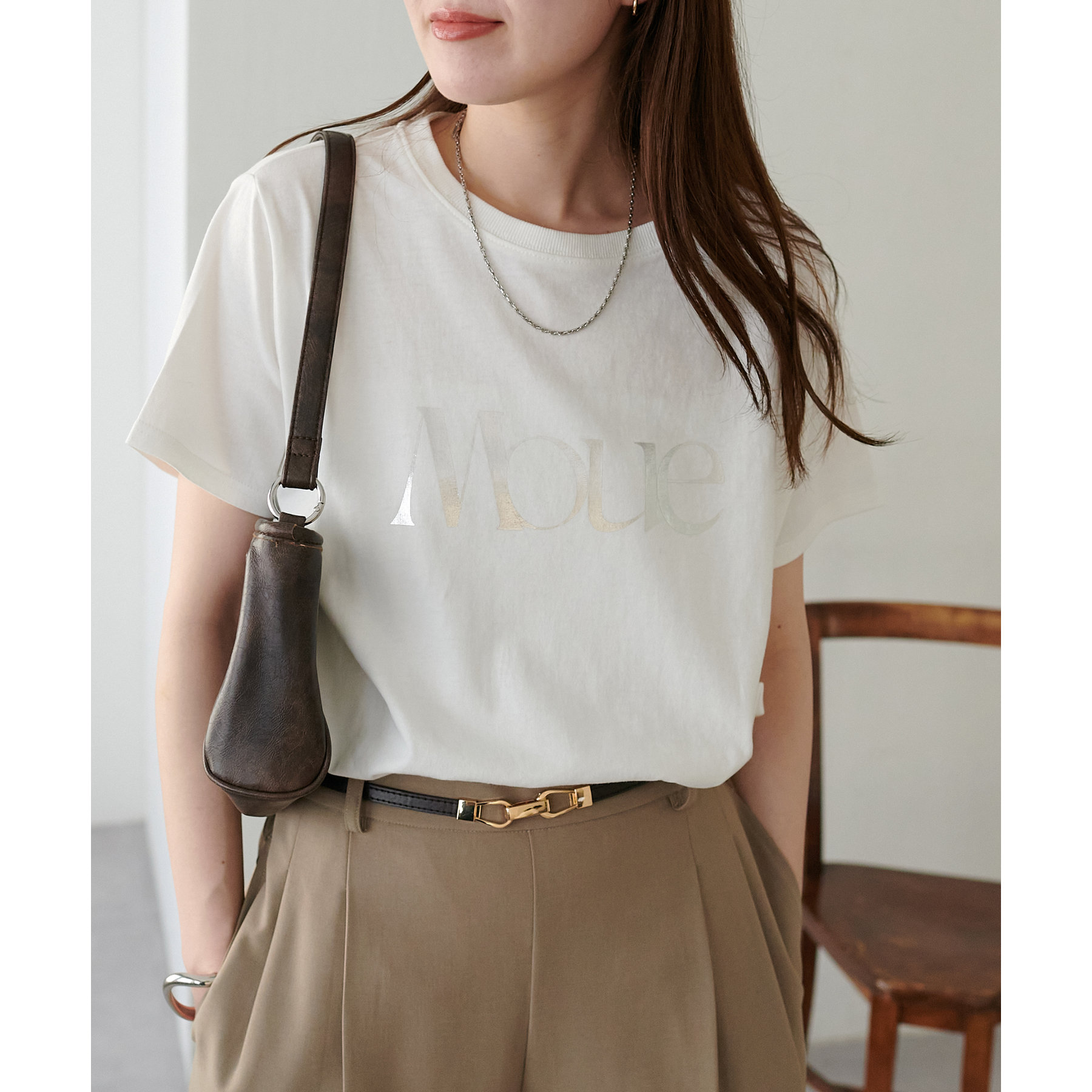 カジュアルになりがちなTシャツも光沢感のある箔プリントデザインが、上品さをもたらします。
