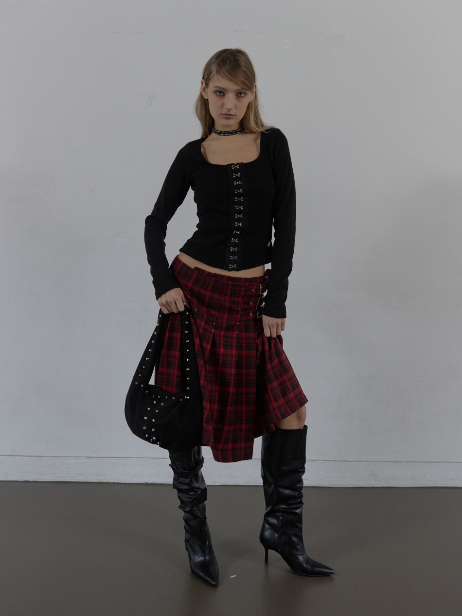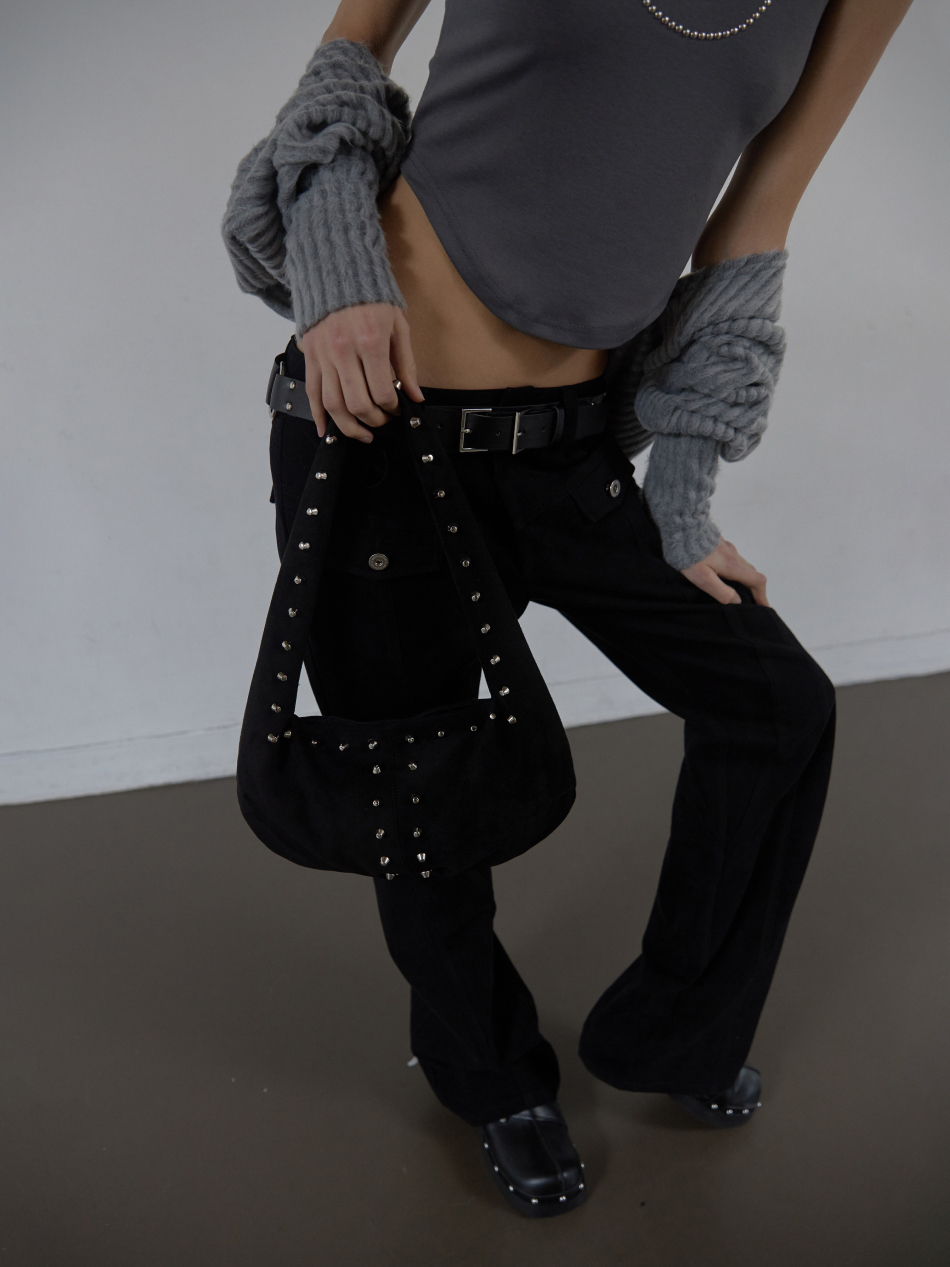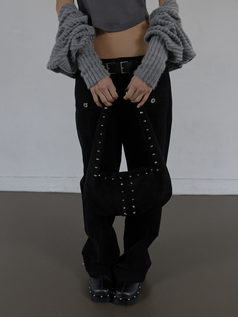 SUEDE STUDDED SHOULDER BAG / BLACK