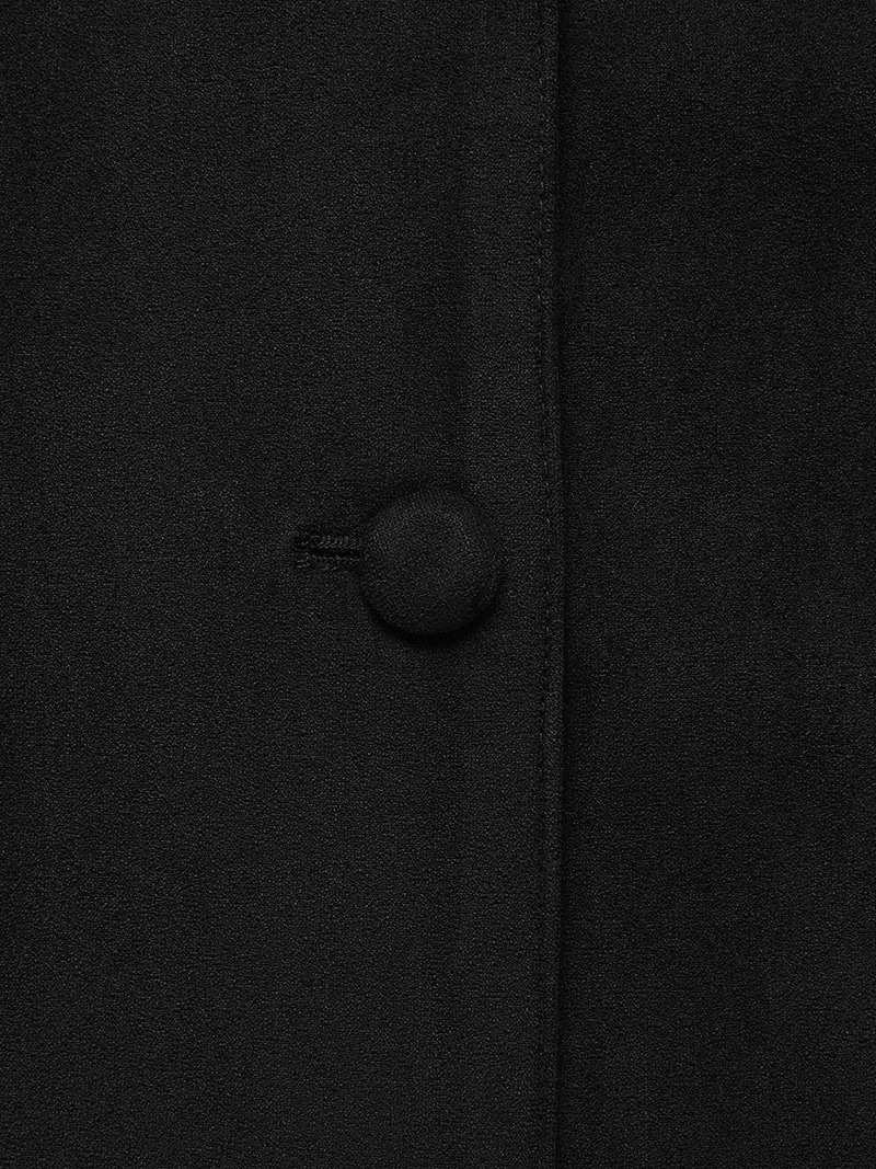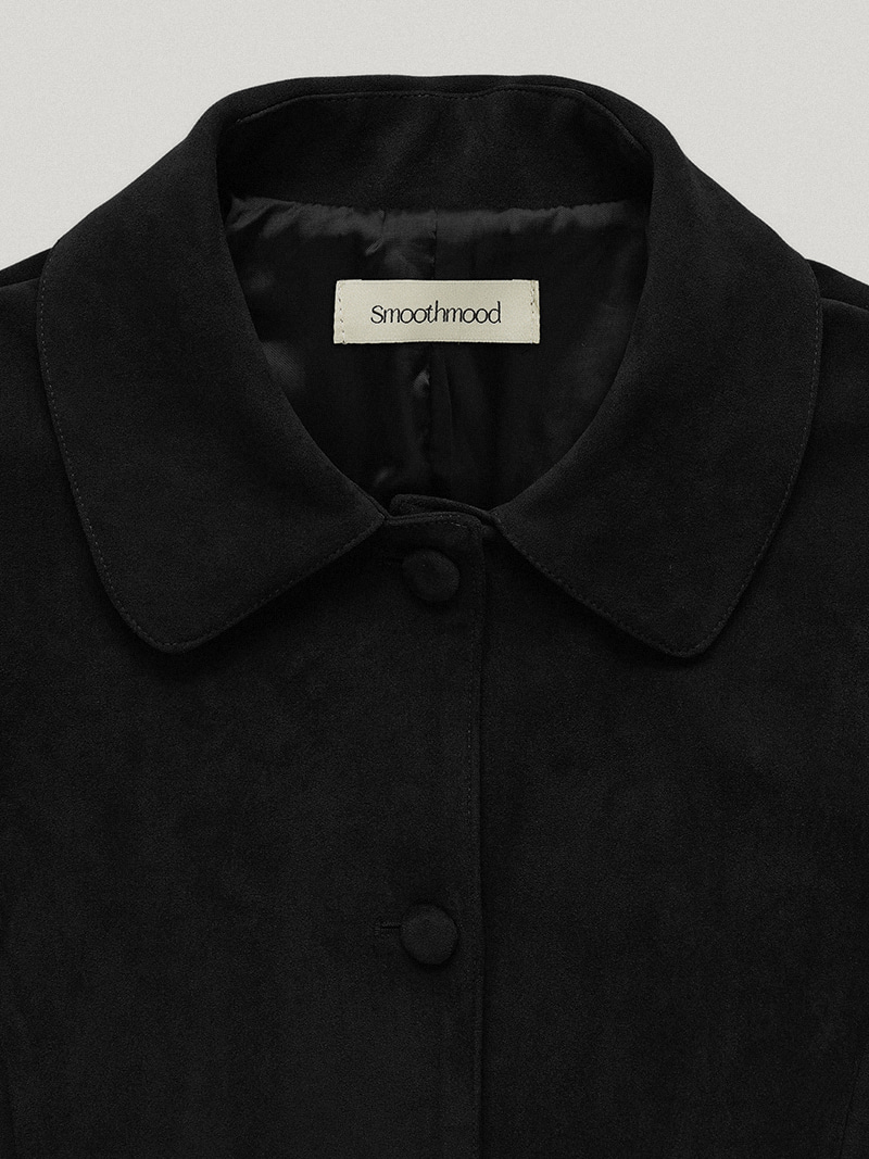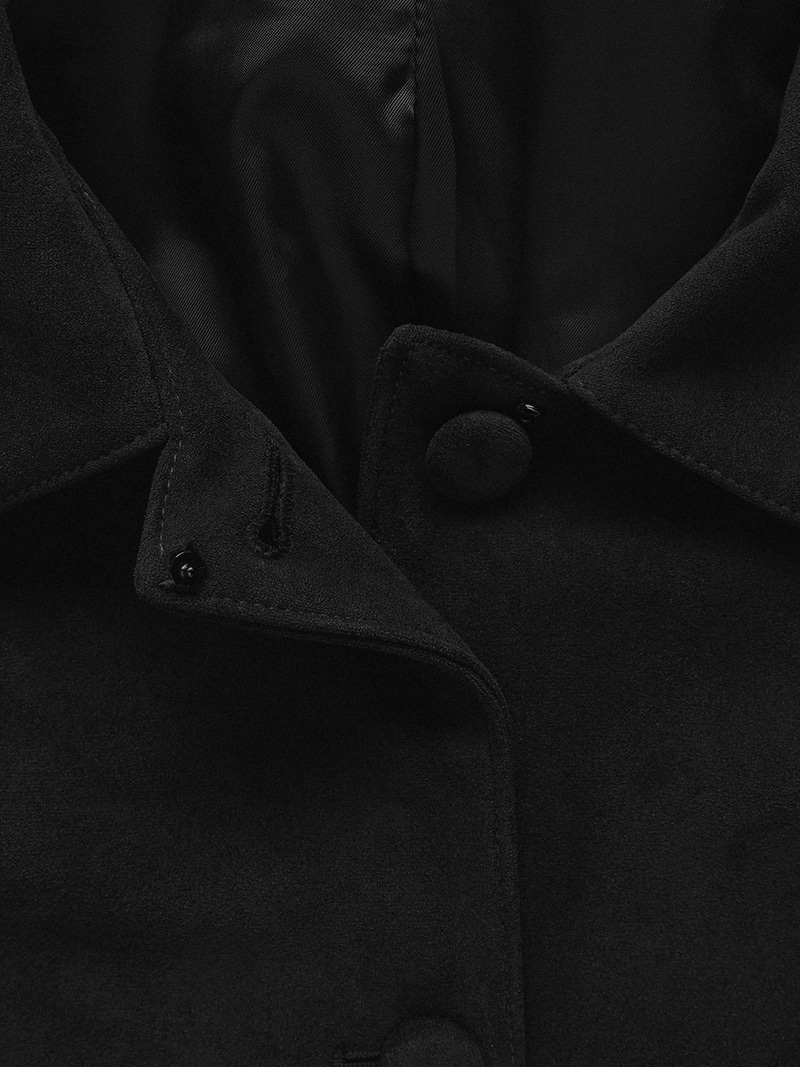 これはエレガントでクラシックなムードで仕上げられたバレニアブラックのスエードジャケットです。90年代のヴィンテージ感性を感じさせるデザインです。ボディラインに沿って自然に流れる三次元のカットアウトで、女性らしくスリムなシルエットで完成しています。ポリエステルとスパンデックスを融合させた柔らかなスエードのテクスチャーで、深いキャメルカラーの魅力を豊かに表現しています。柔軟でしっかり、安定して着用でき、体に沿って自然に流れる三次元のカットラインが女性らしくスリムなシルエットを作り出しています。前面は同じ素材で包まれたボタンで丁寧に仕上げられています。襟とフレアラインの組み合わせで贅沢な雰囲気を感じられます。お気に入りのパンツ、ショートパンツ、デニムなどで官能的なエンドコーディネートを完成させましょう。ミニマリストでクラシックな黒色ポリエステル92%スパンデックス、8%襟デザインセミフレアフィットオントーンのボタンクローズ
