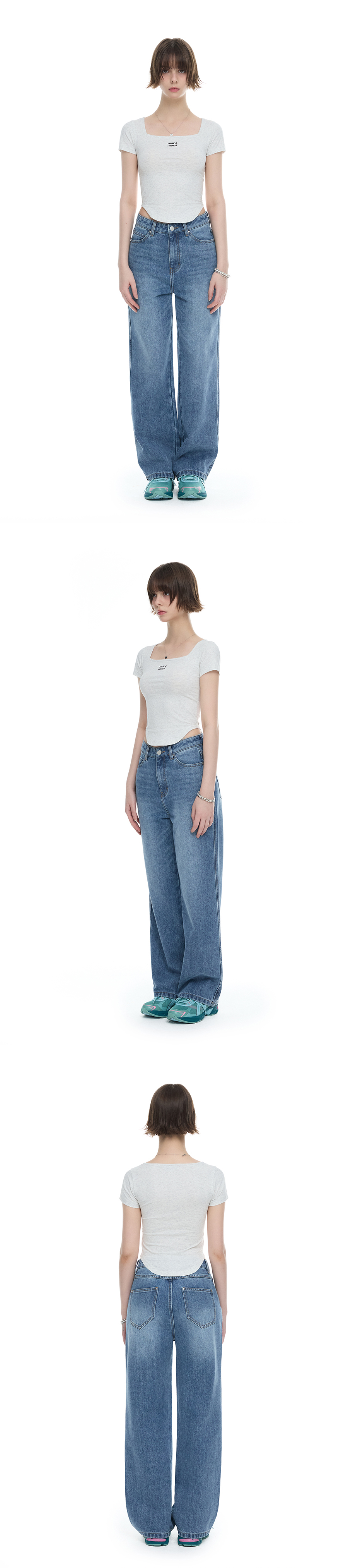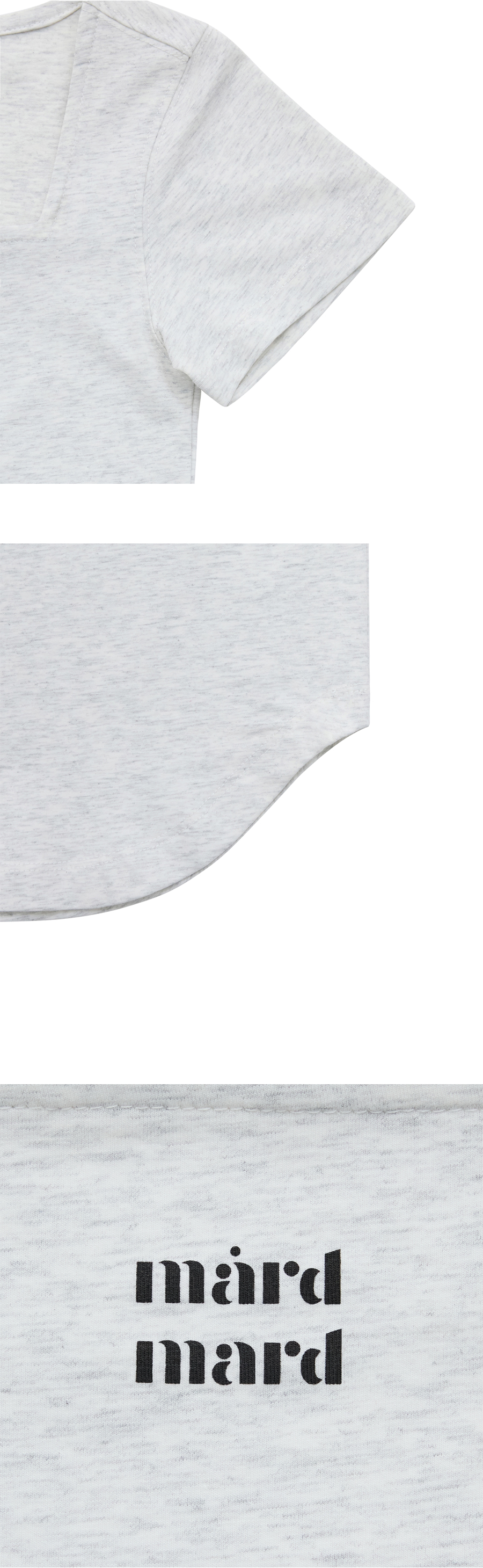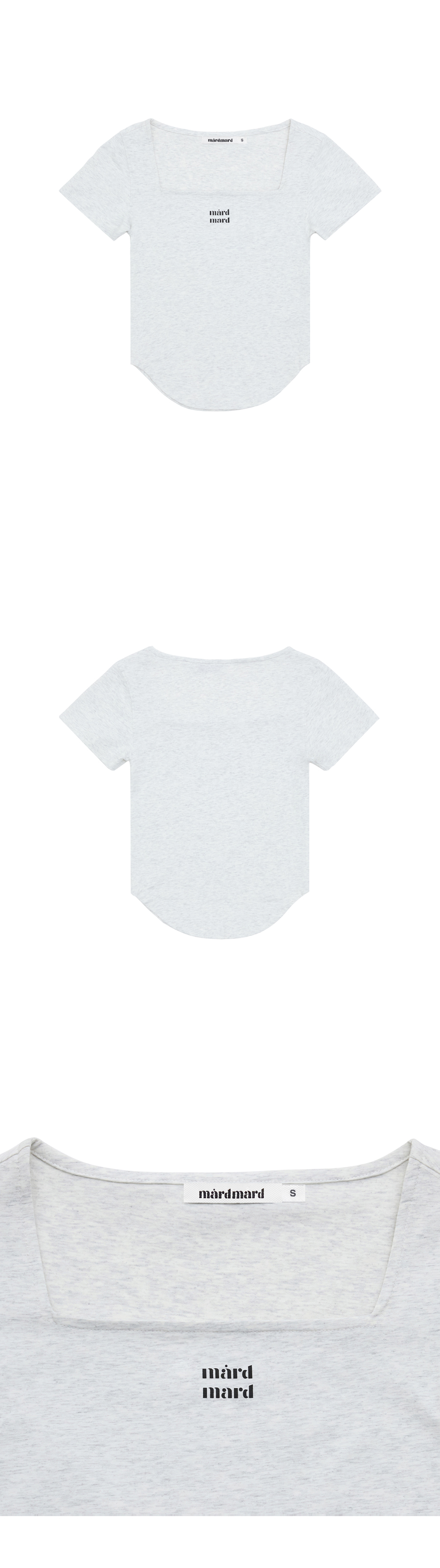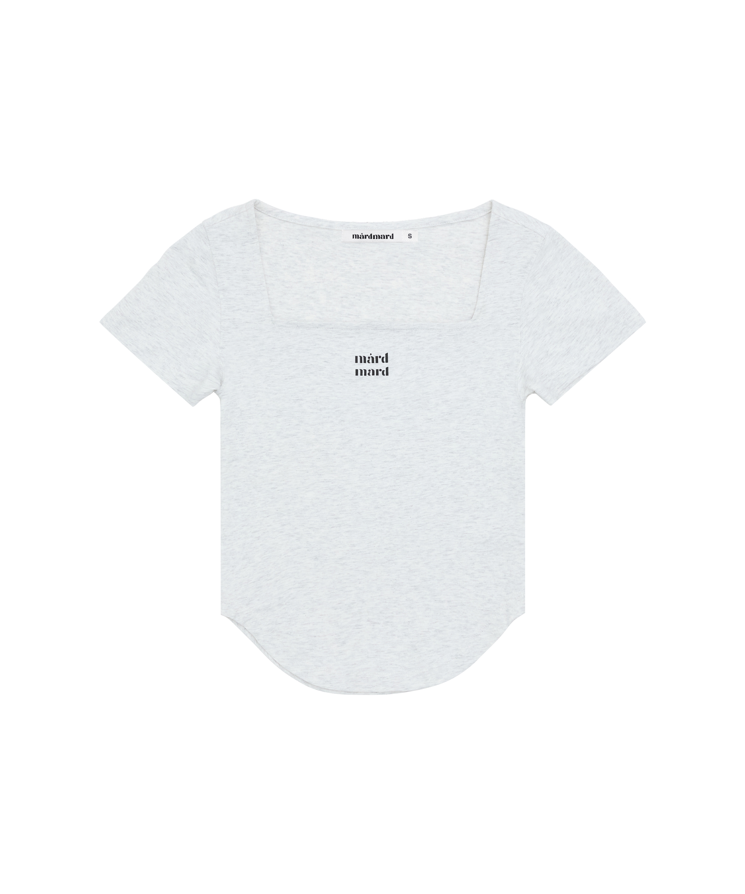 Square-neck Curved Crop T-shirt-LIGHT GREY