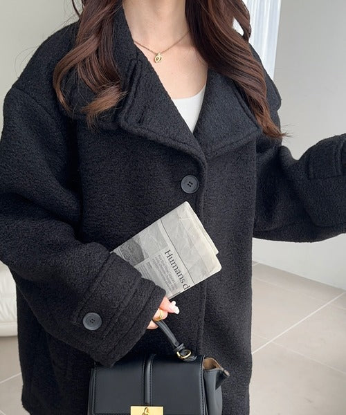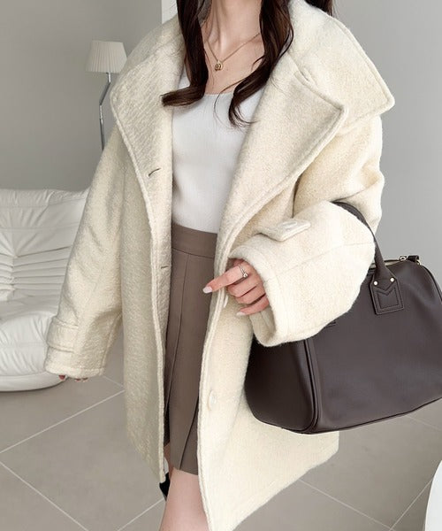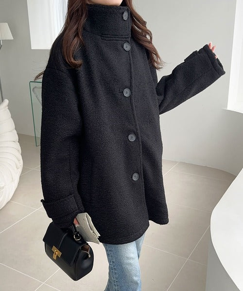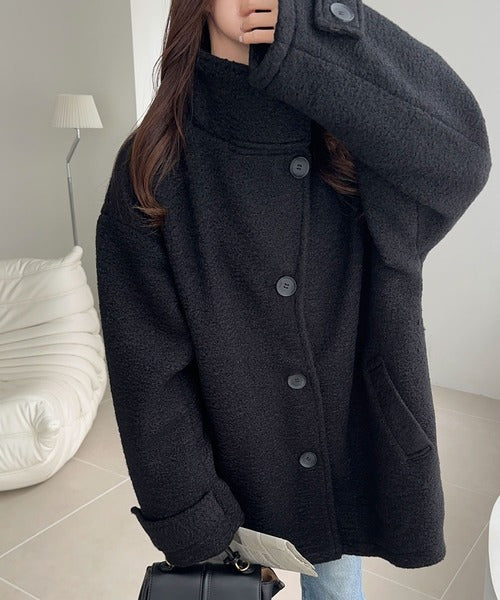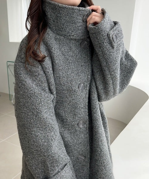 【mily bilet】秋冬の味方!ウールライクスタンド2WAYカラーリングニットコート mi1019050