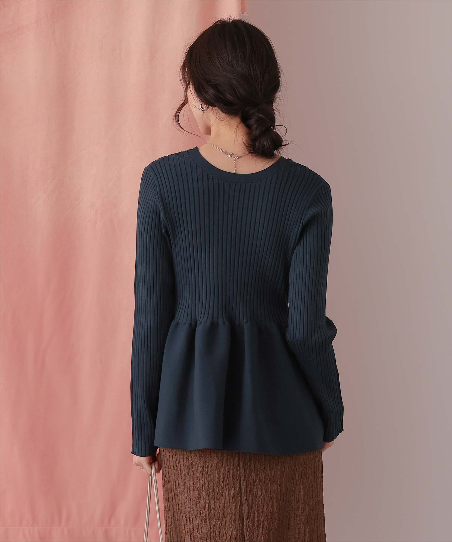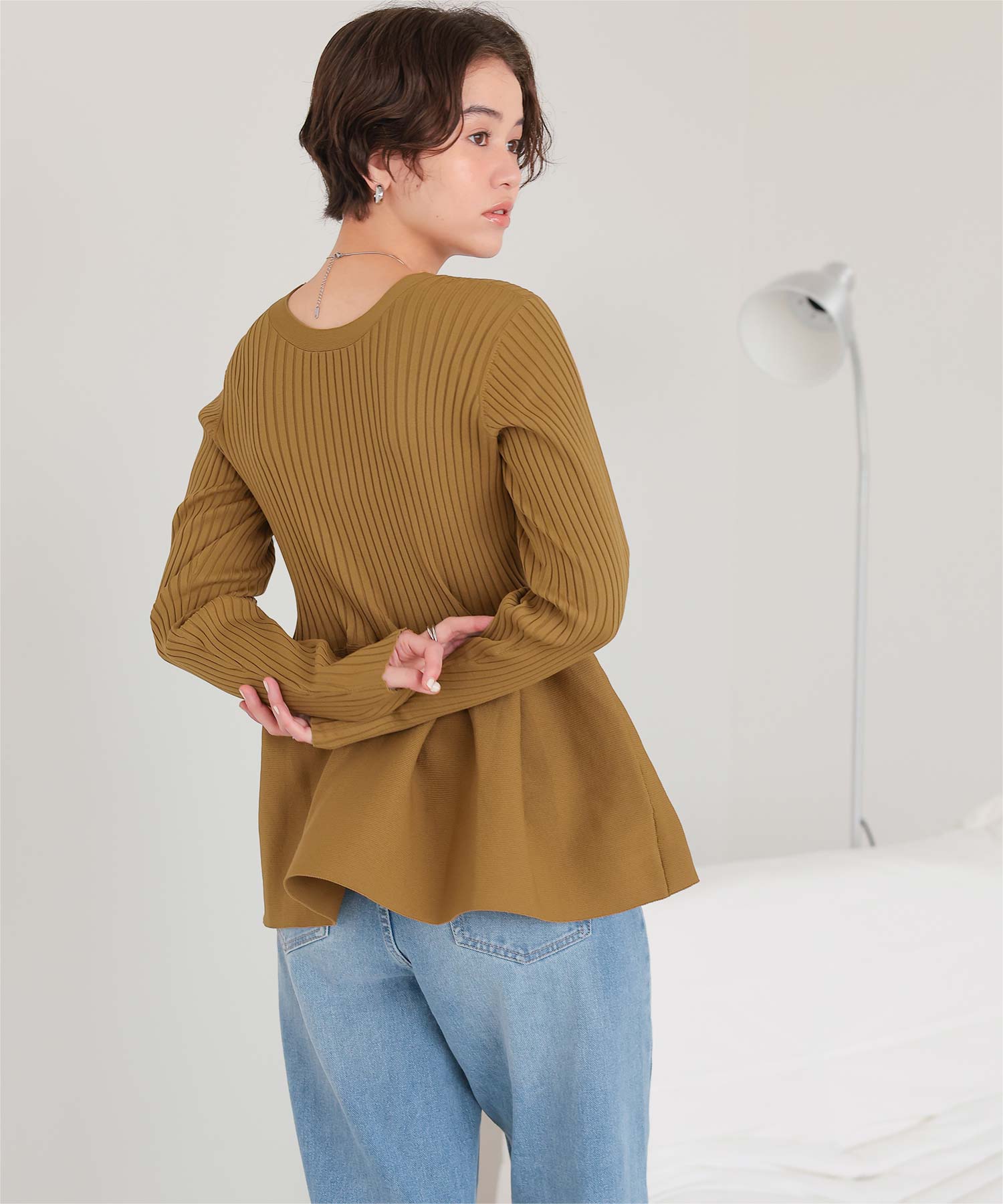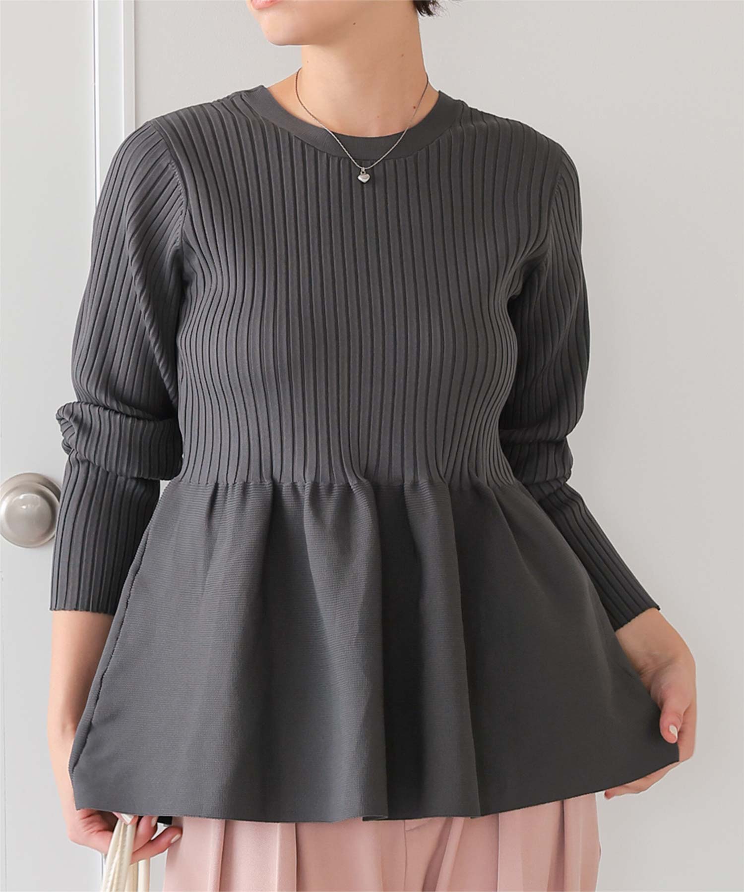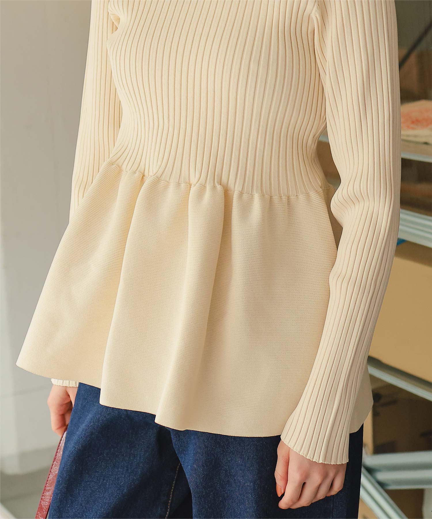前後2wayペプラムニットトップス