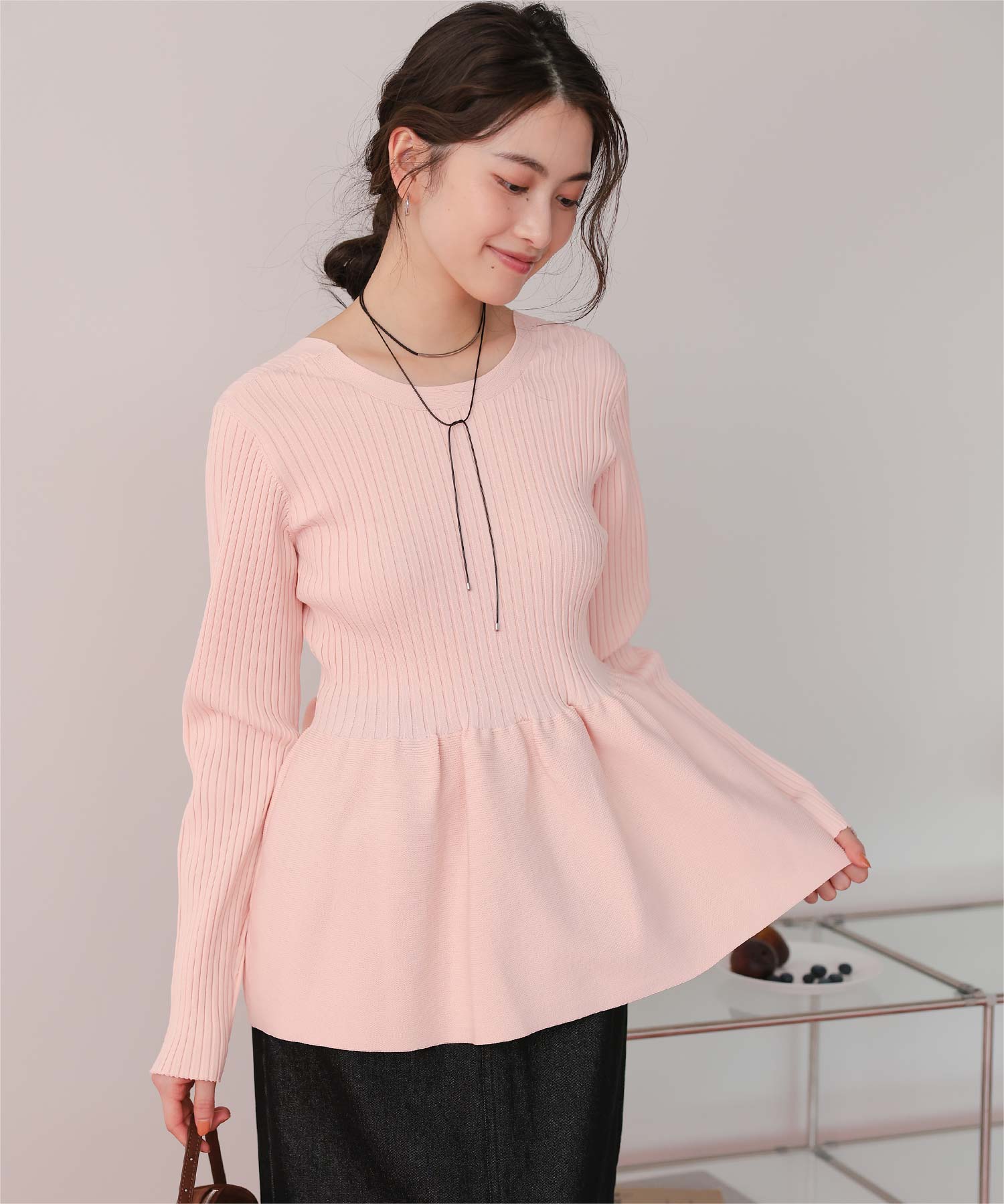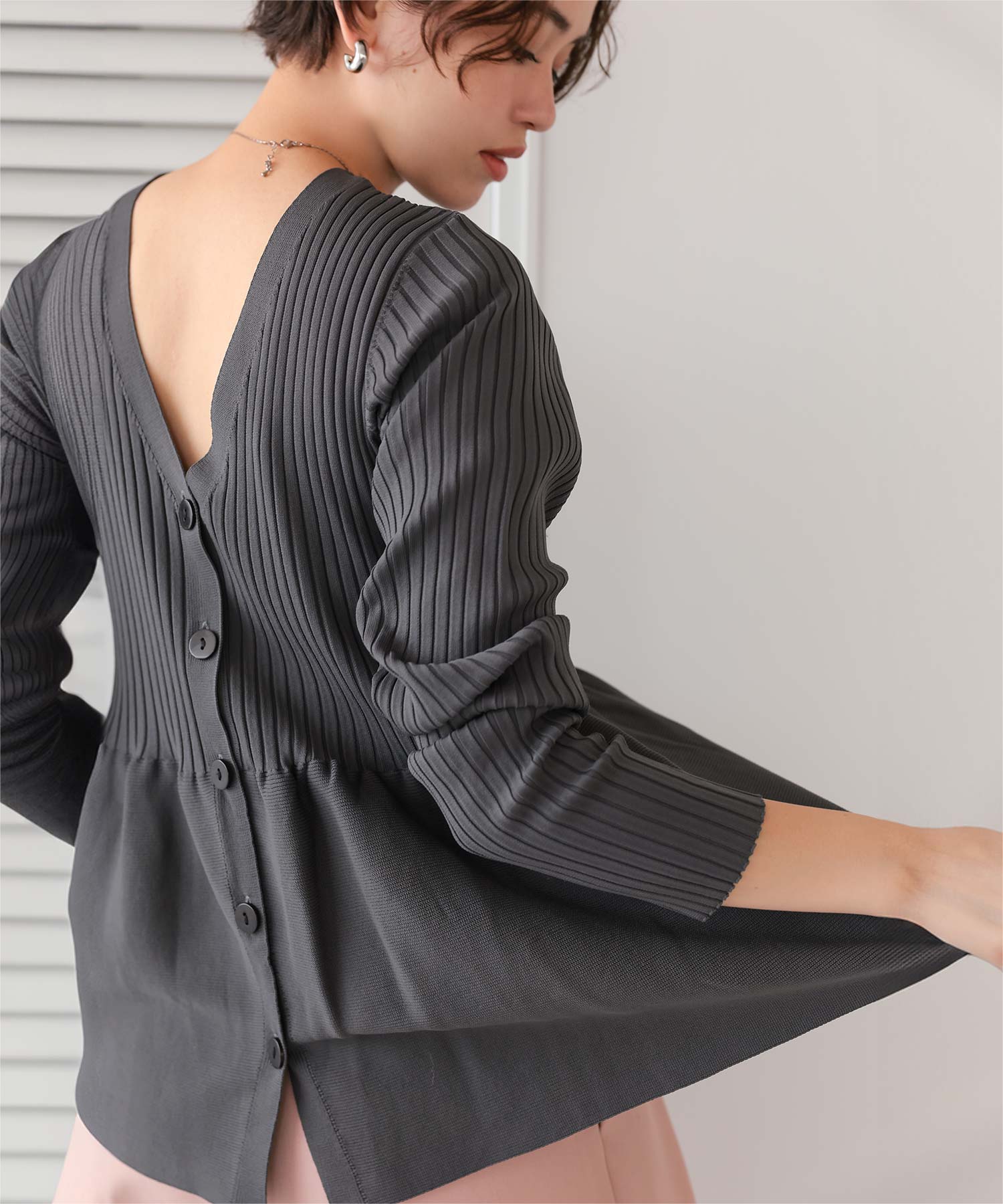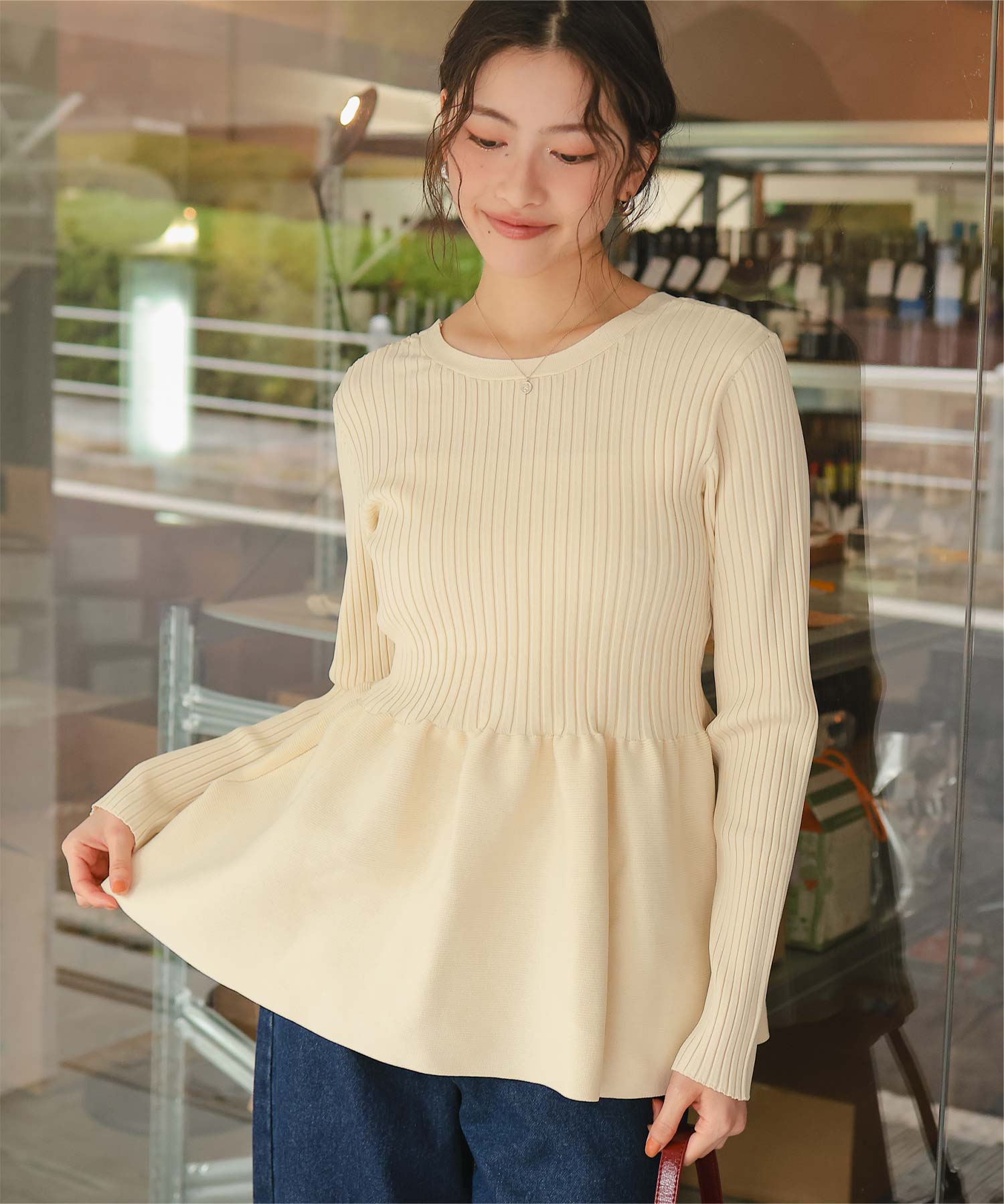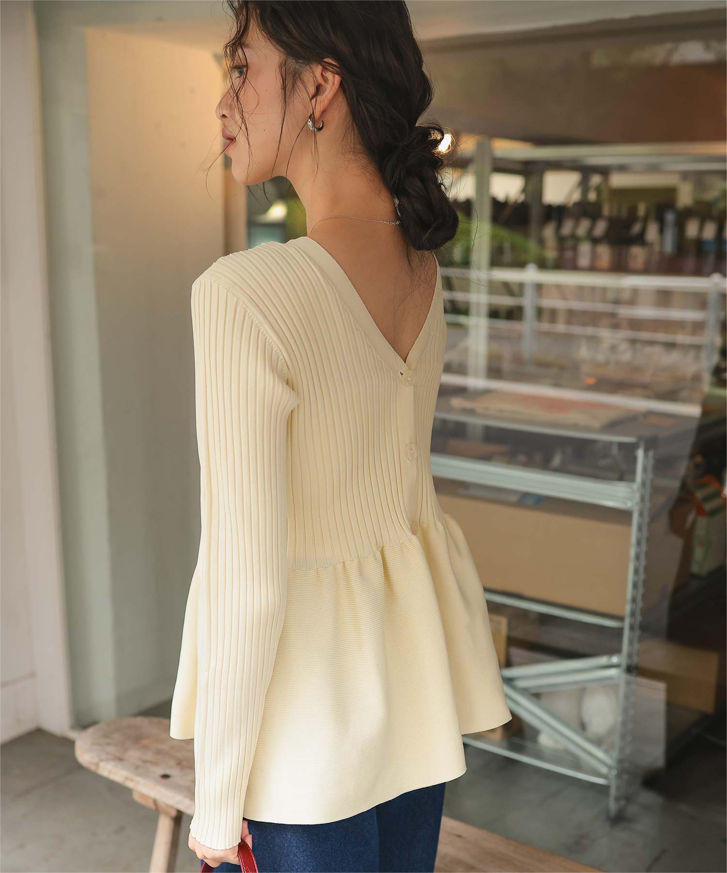 前後2wayペプラムニットトップス