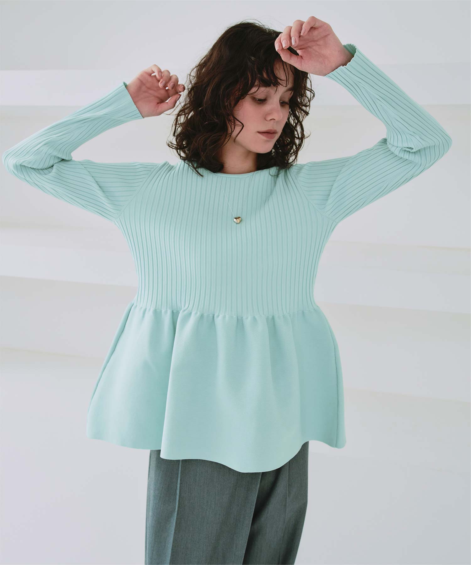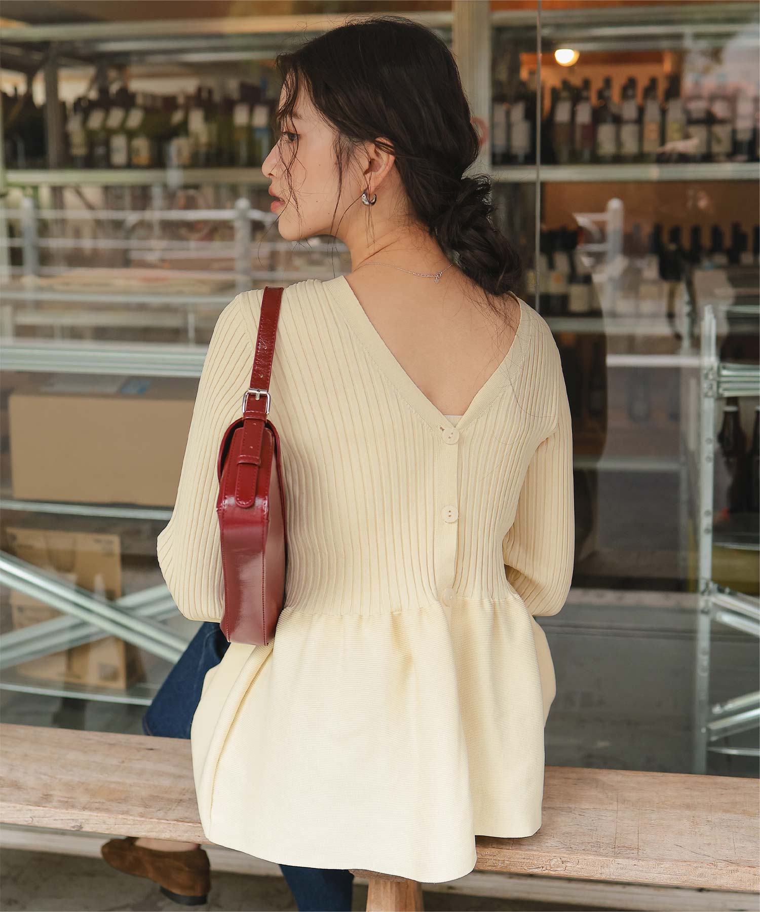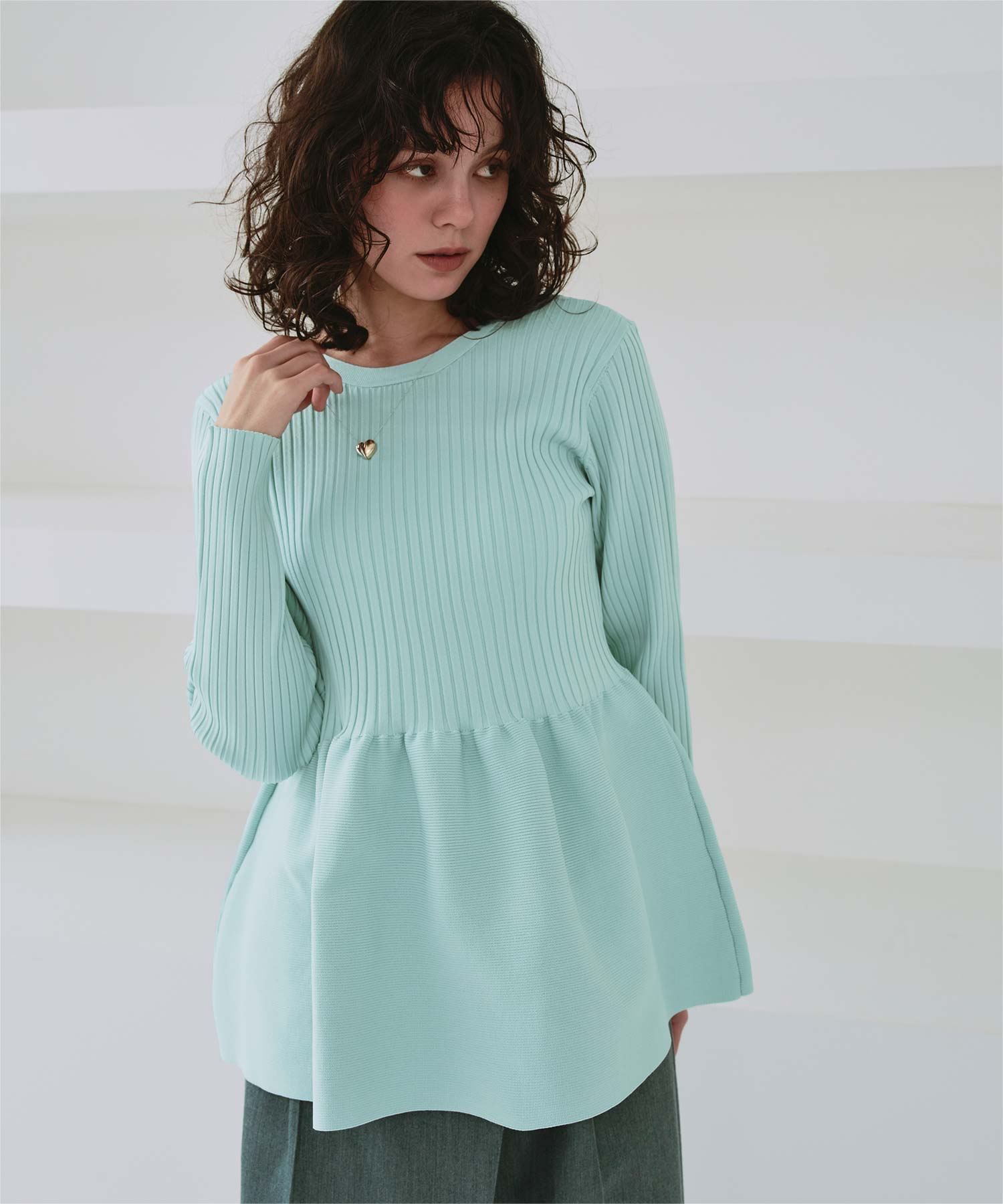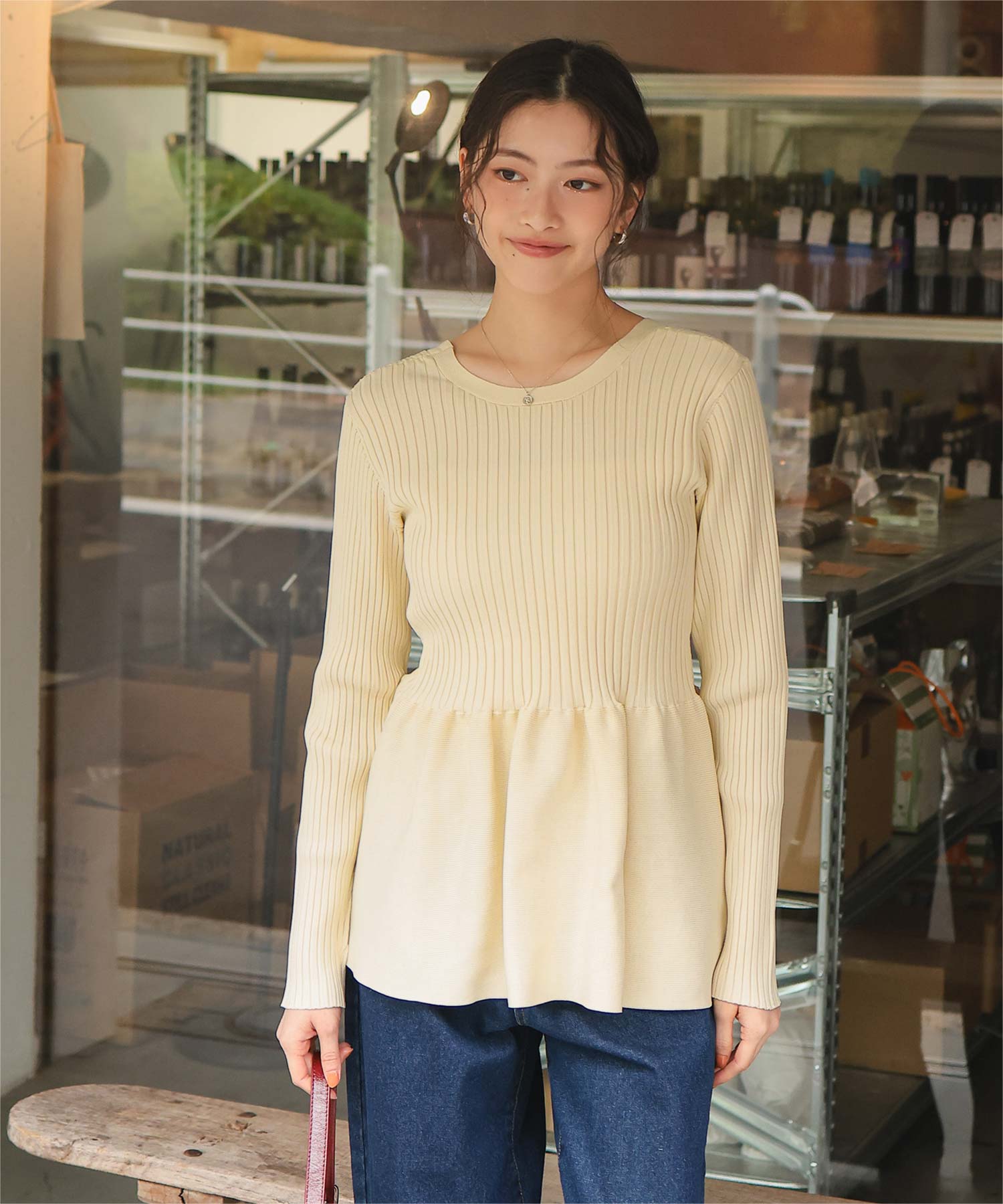前後2wayペプラムニットトップス