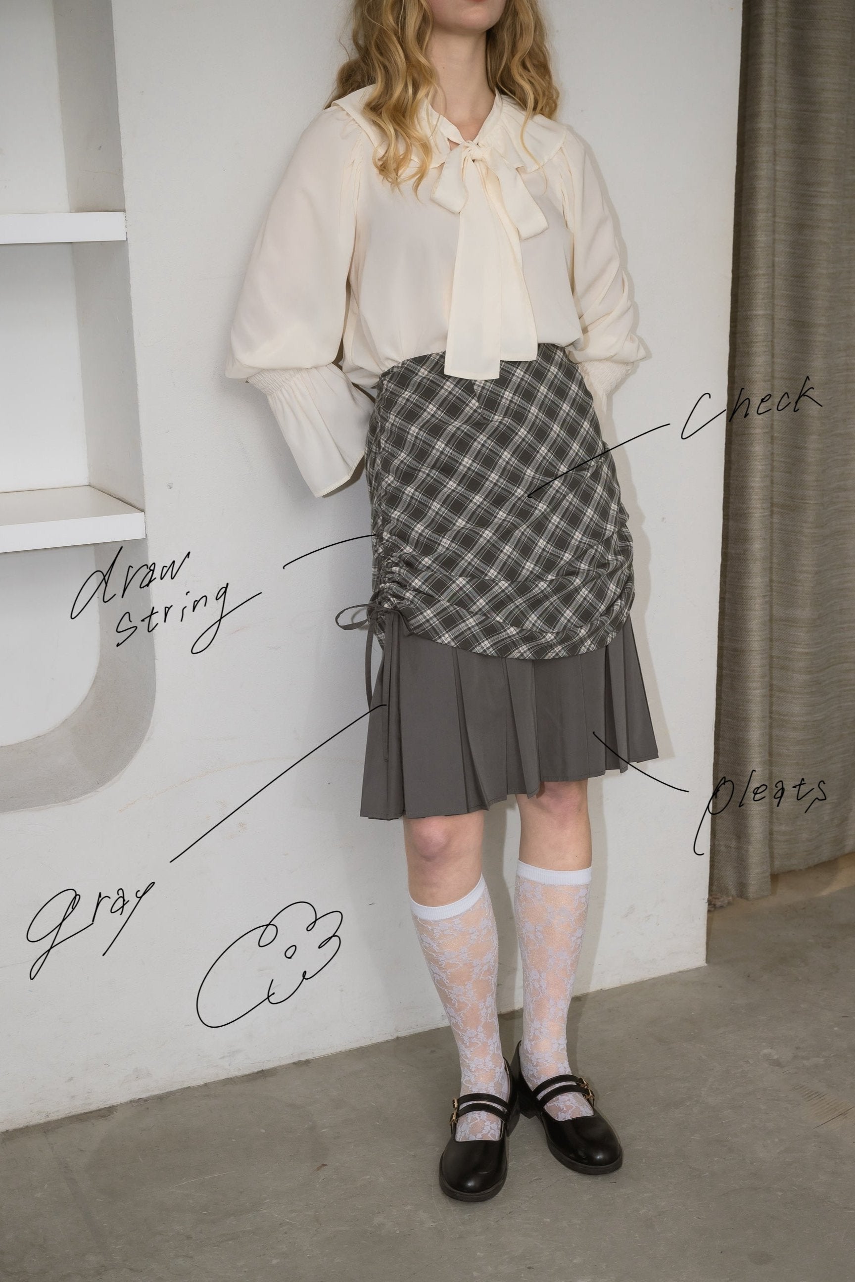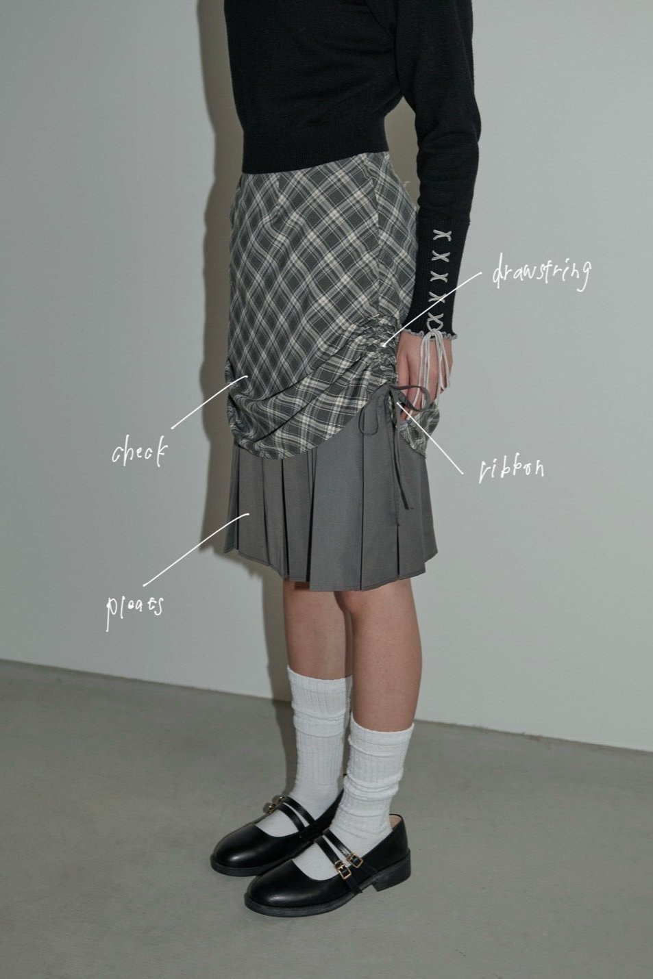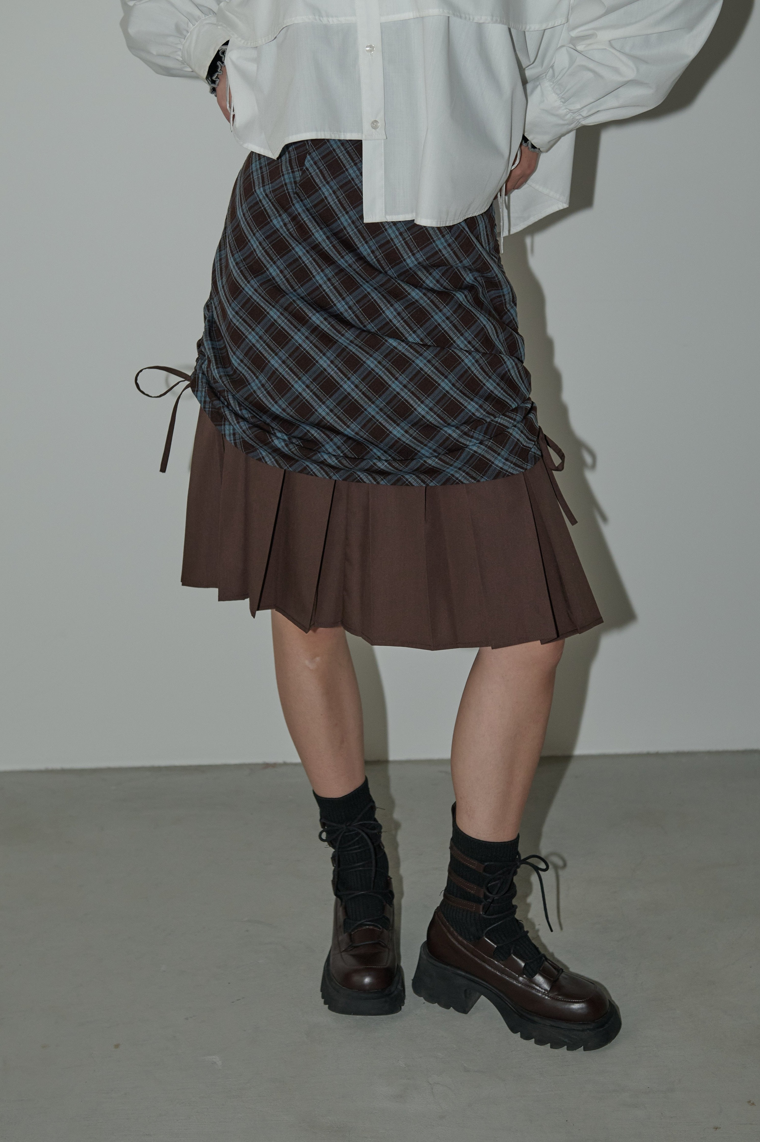 drawstring check pleats skirt