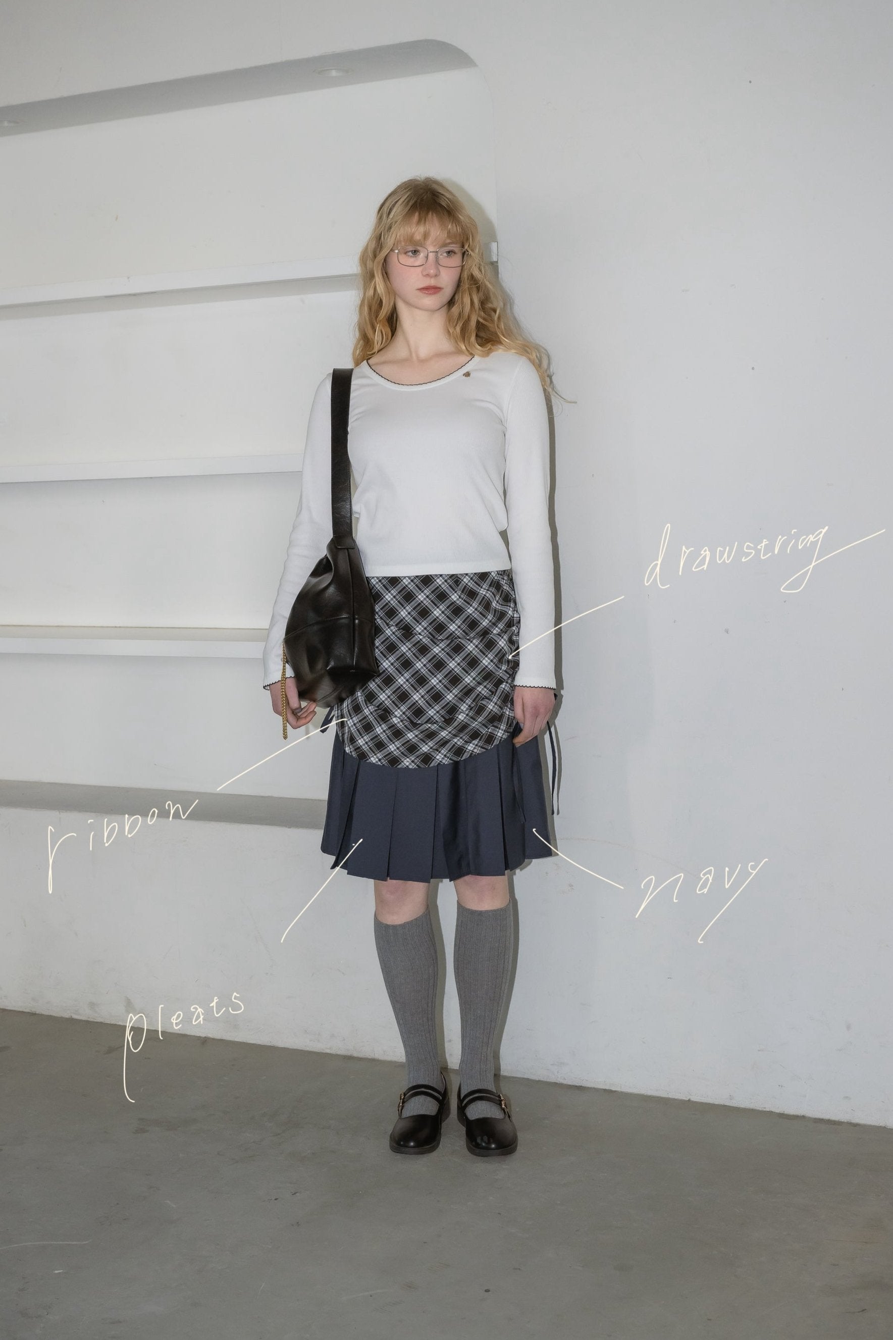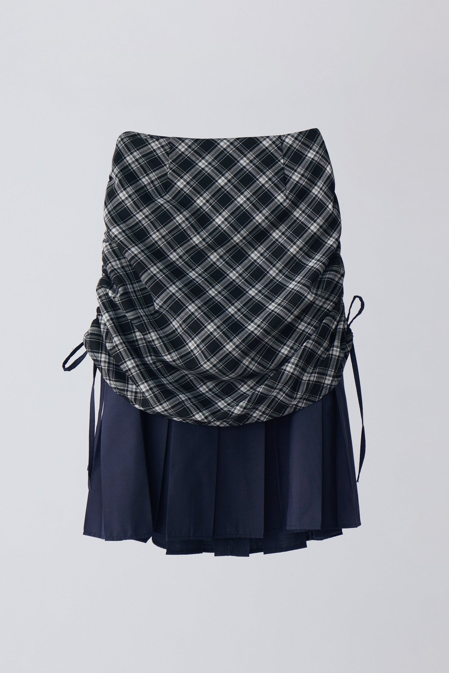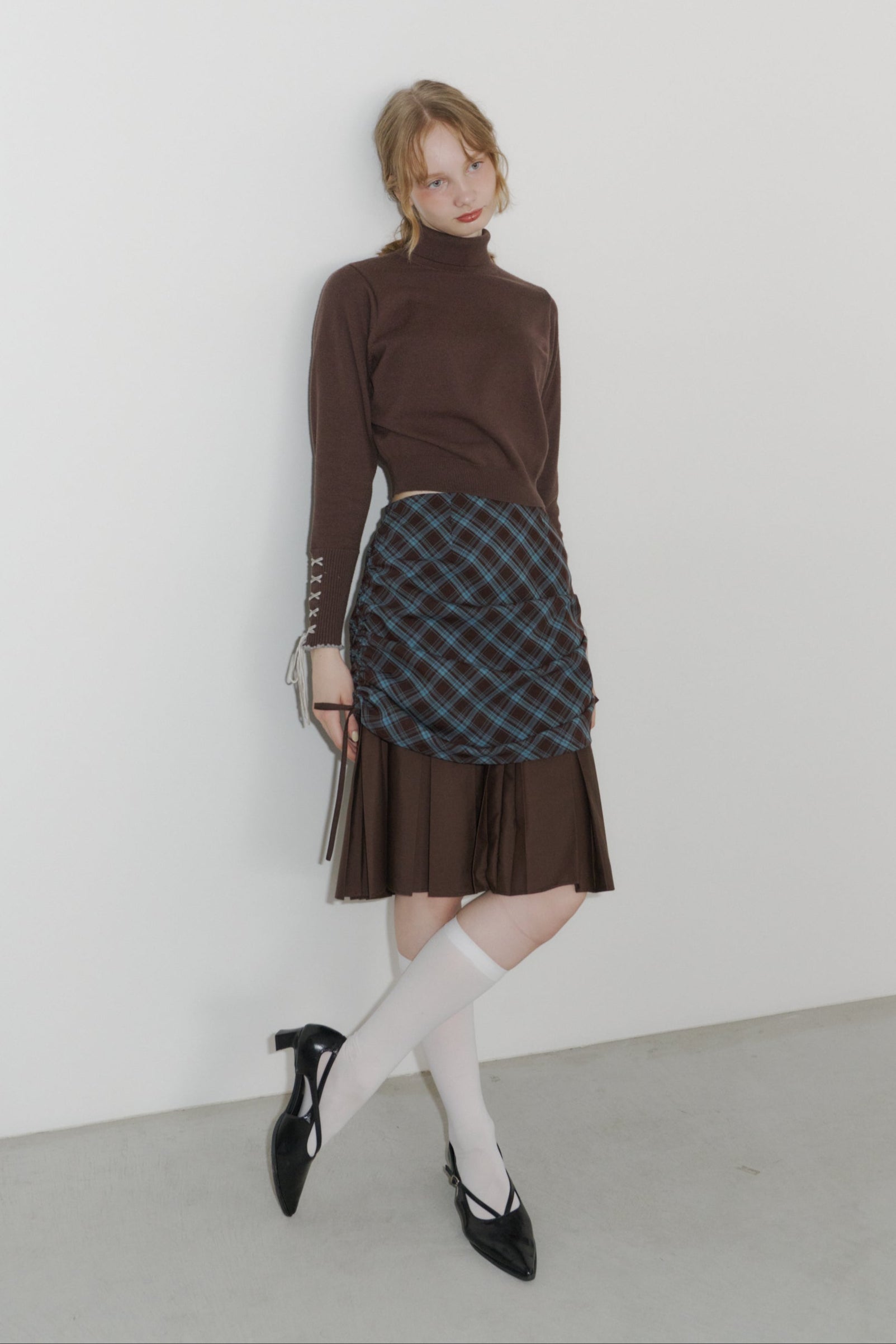 drawstring check pleats skirt
