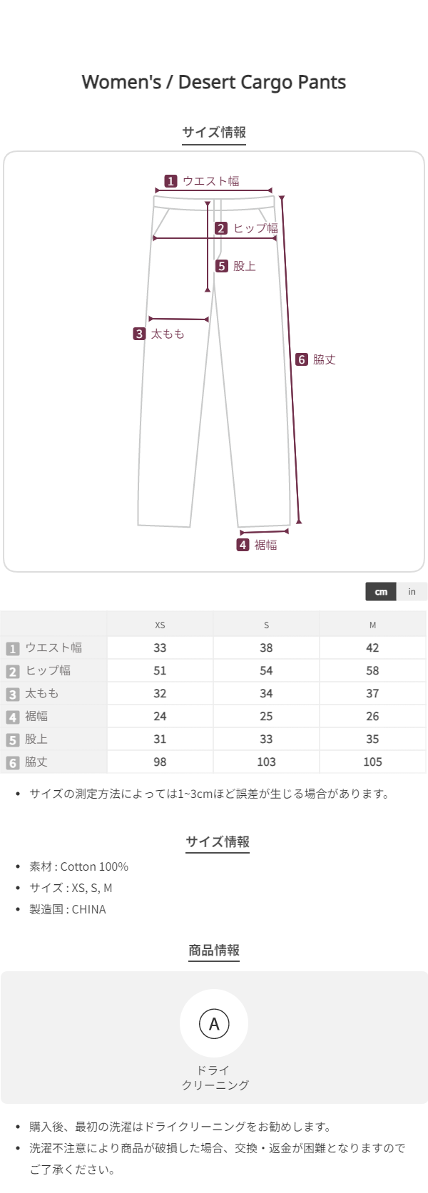 ※Sサイズは2026年再発売分より総丈を+3cm長く調整しました。